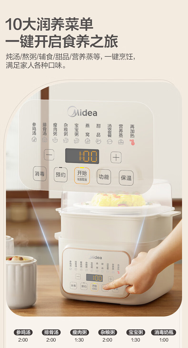 美的(Midea)电炖锅电蒸锅电炖盅炖汤盅煲汤锅母婴辅食燕窝煮粥炖盅 4.5L隔水炖 蒸炖煮一体多功能锅MD-DZE2552
