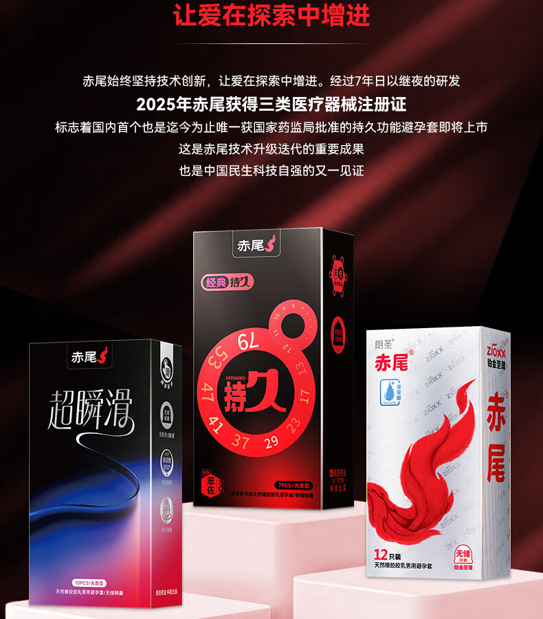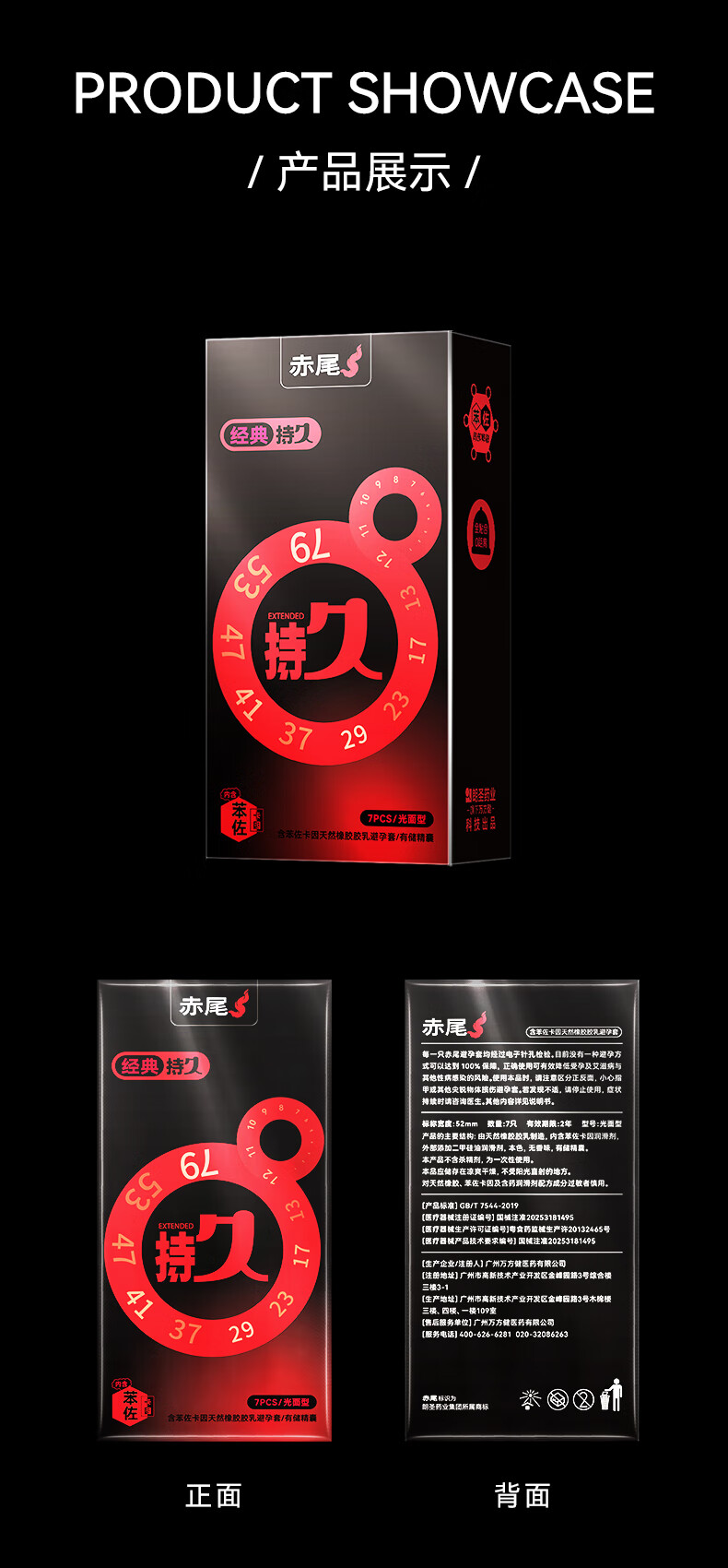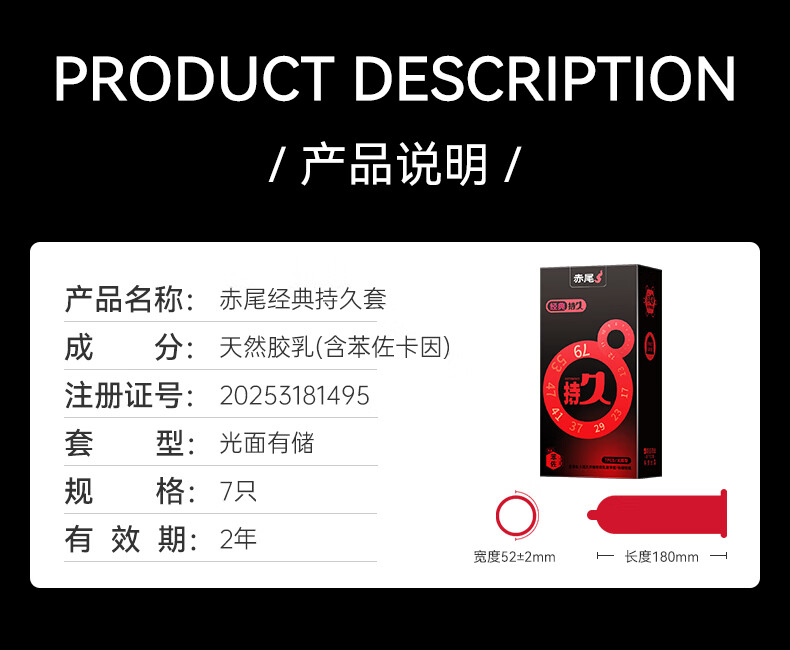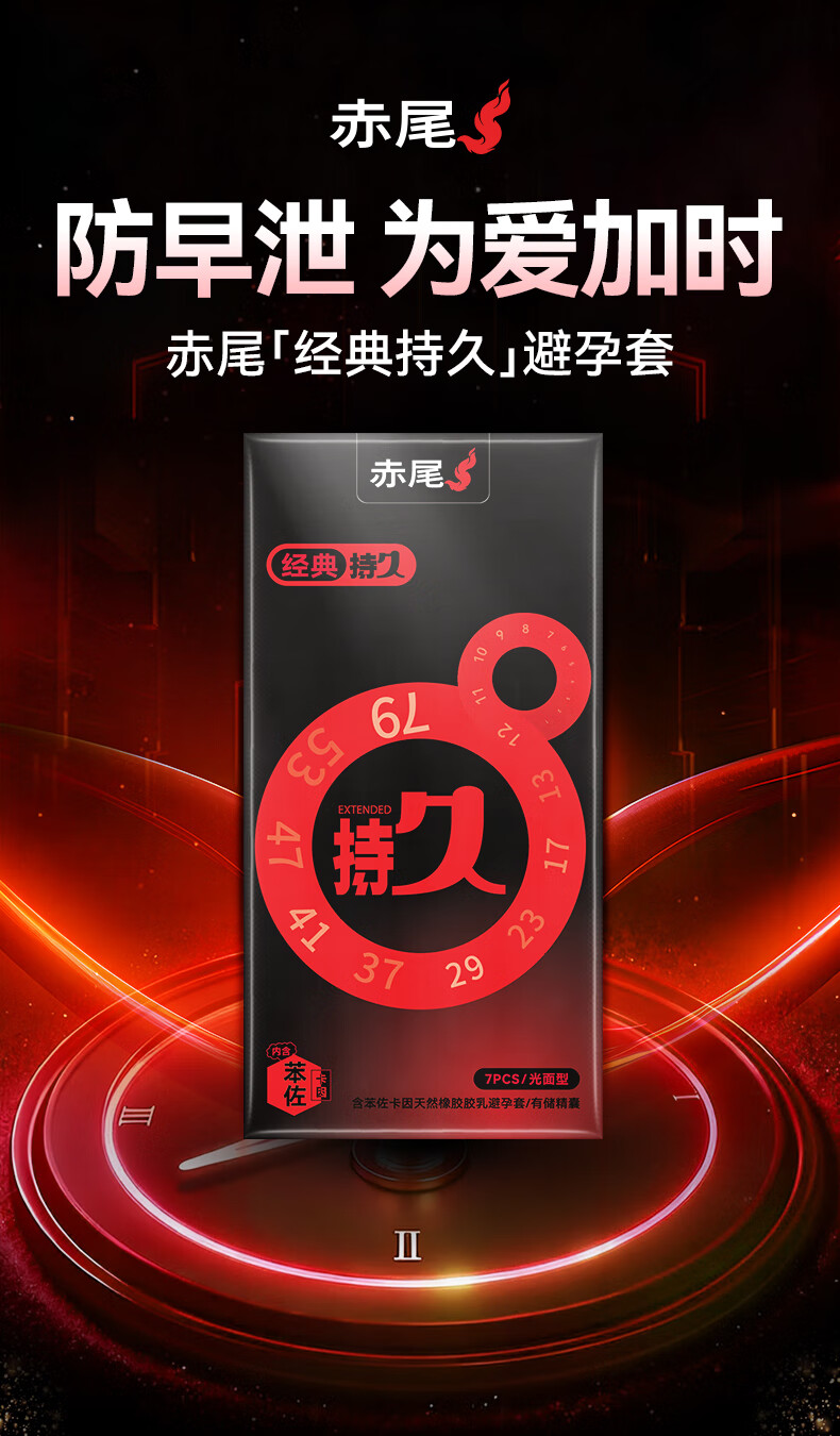 赤尾经典持久7只延时避孕套男专用持久防早泄敏感套安全套含苯佐卡因