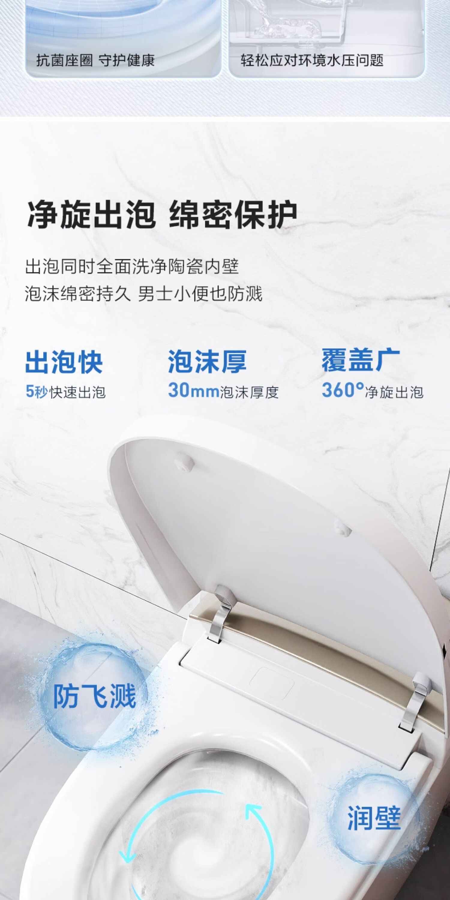 瑞尔特(R&T)无界系列壁挂智能马桶泡沫盾防溅家用一体入墙式悬浮式电动坐便器 WH2