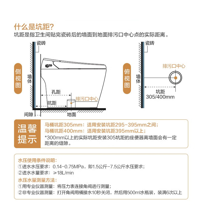瑞尔特(R&T)瑞尔特无界系列壁挂式轻智能马桶家用自动翻盖一体悬浮电动坐便器 WH0P 305/300mm