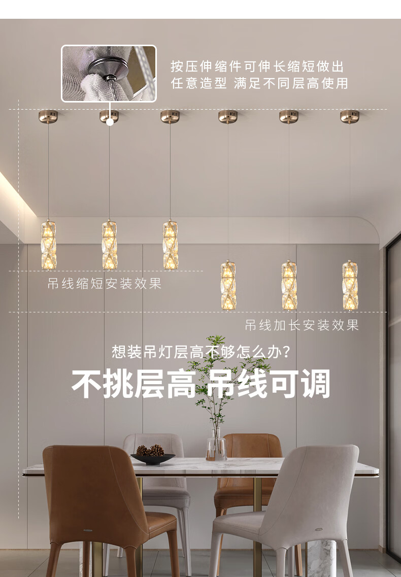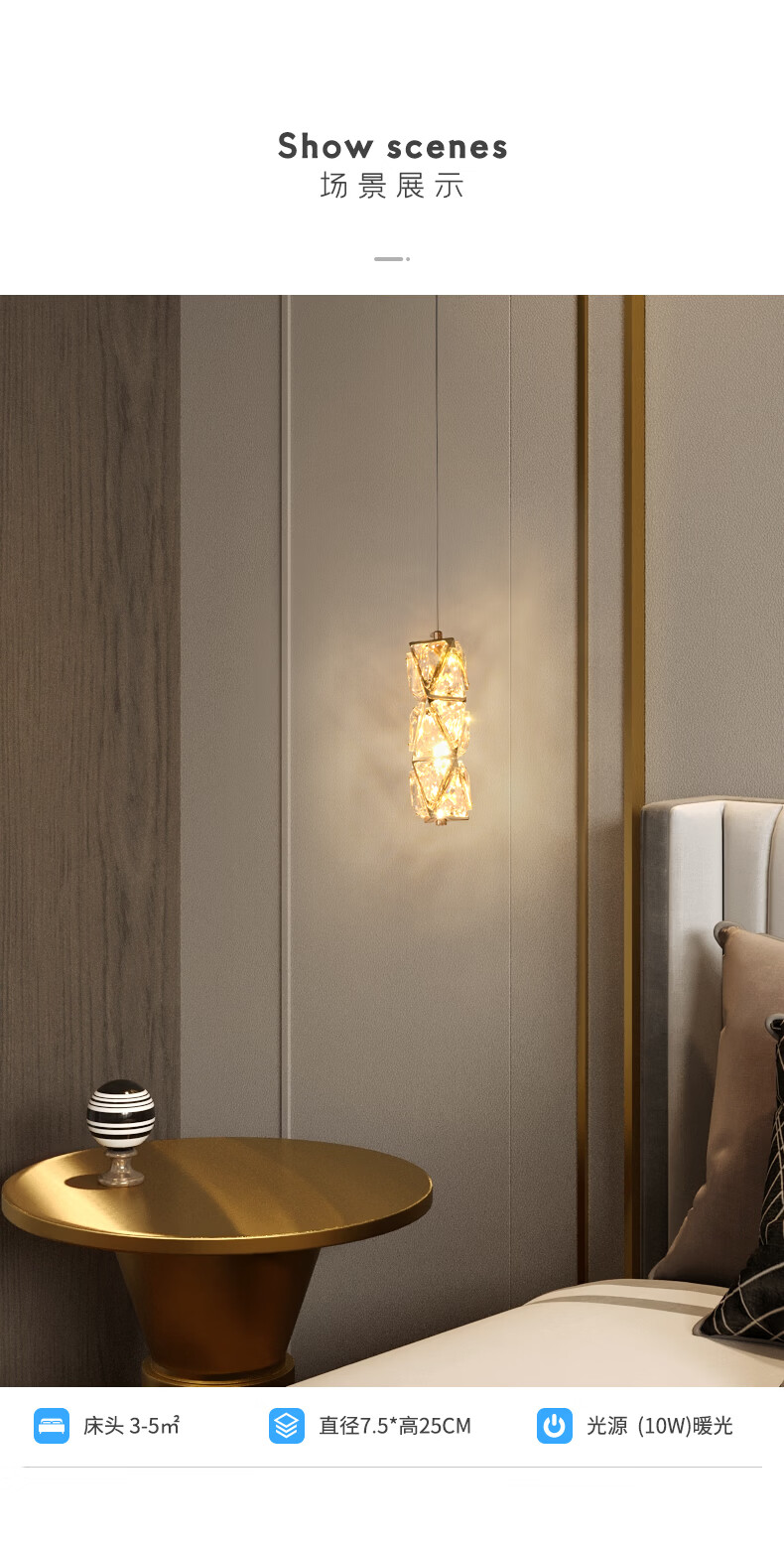 卡伯森设计师款卧室床头吊灯现代轻奢大气客厅背景墙沙发边长线小吊灯 直径7.5*高25CM【三色变光】【全光谱