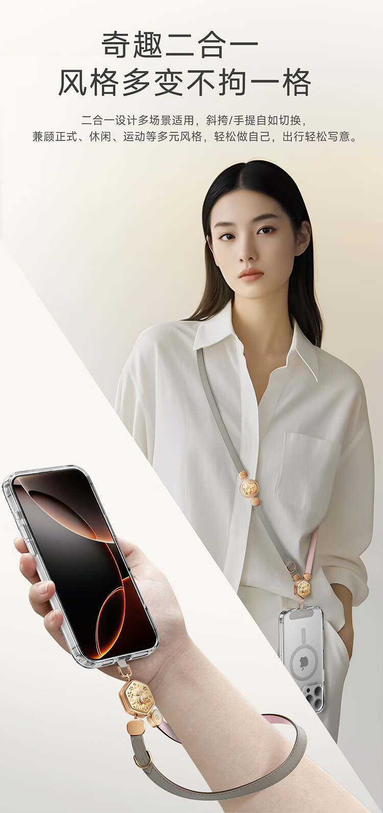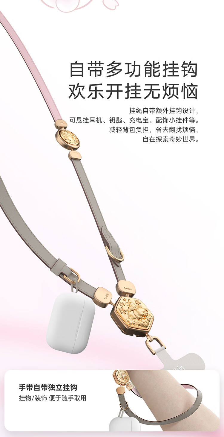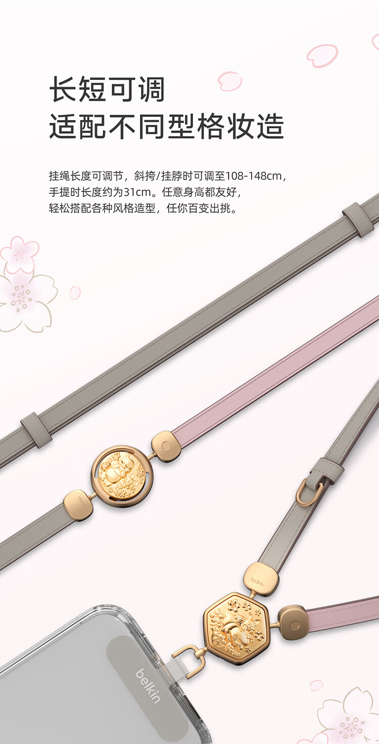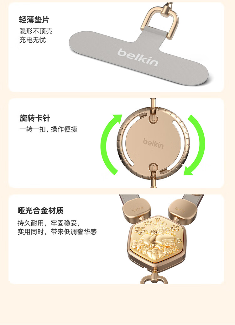 贝尔金(BELKIN)手机挂绳手腕 手机链手机绳高级感挂脖斜跨手机防丢绳带手机垫片 皮革二合一 小熊维尼