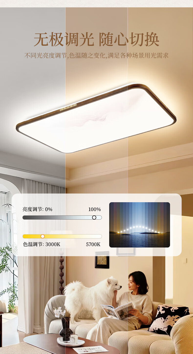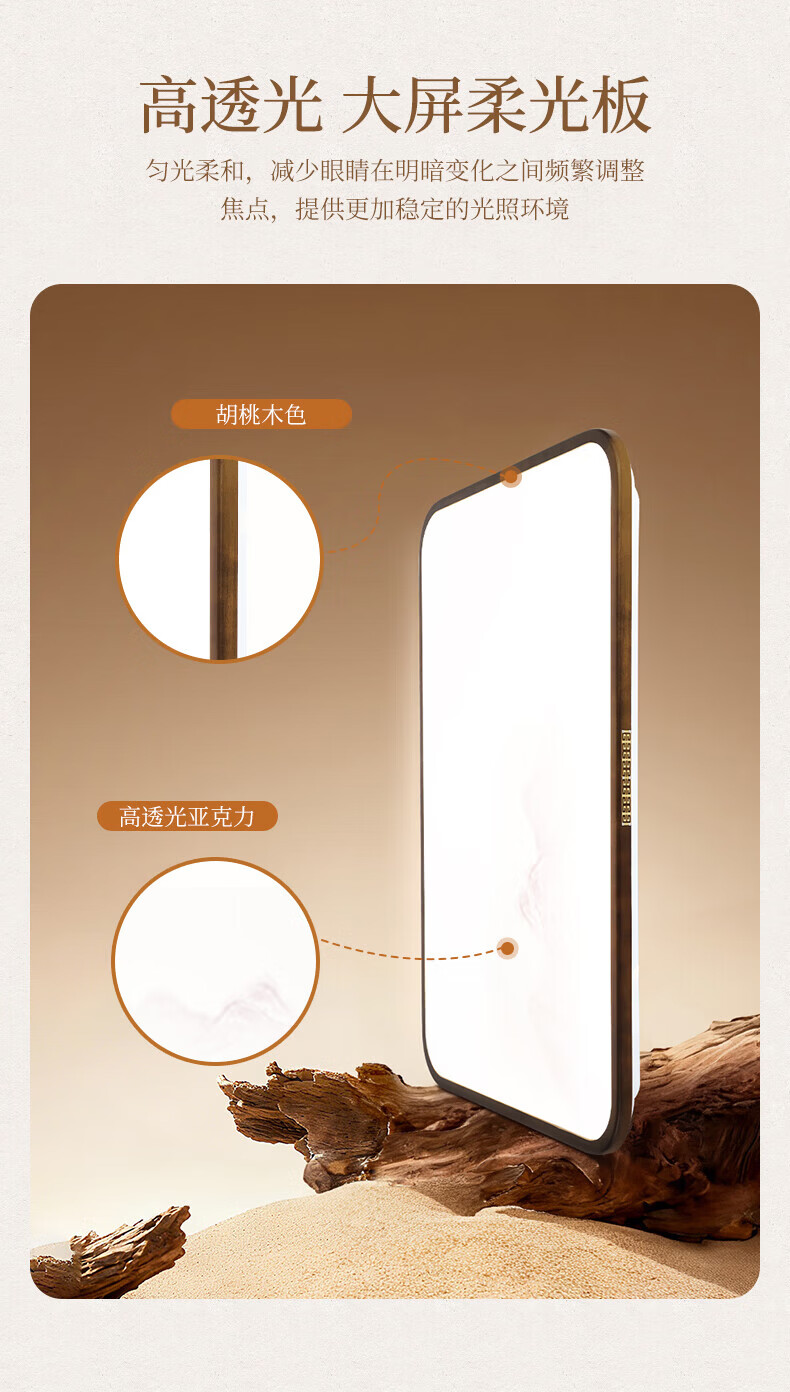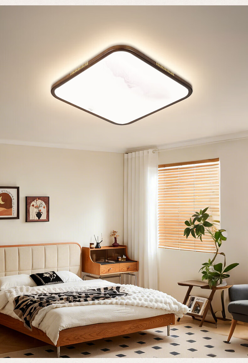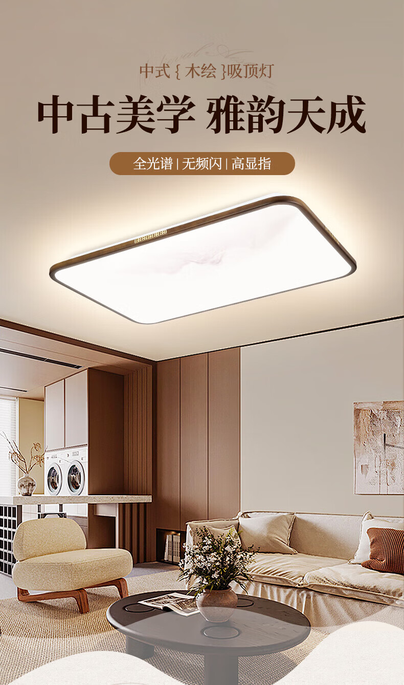 阳光(YANKON)LED全光谱新款中古风客厅大灯 护眼卧室吸顶灯 灯具 【智控】木绘丨138w客厅大灯丨已接入米家APP