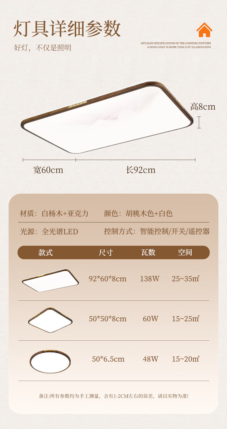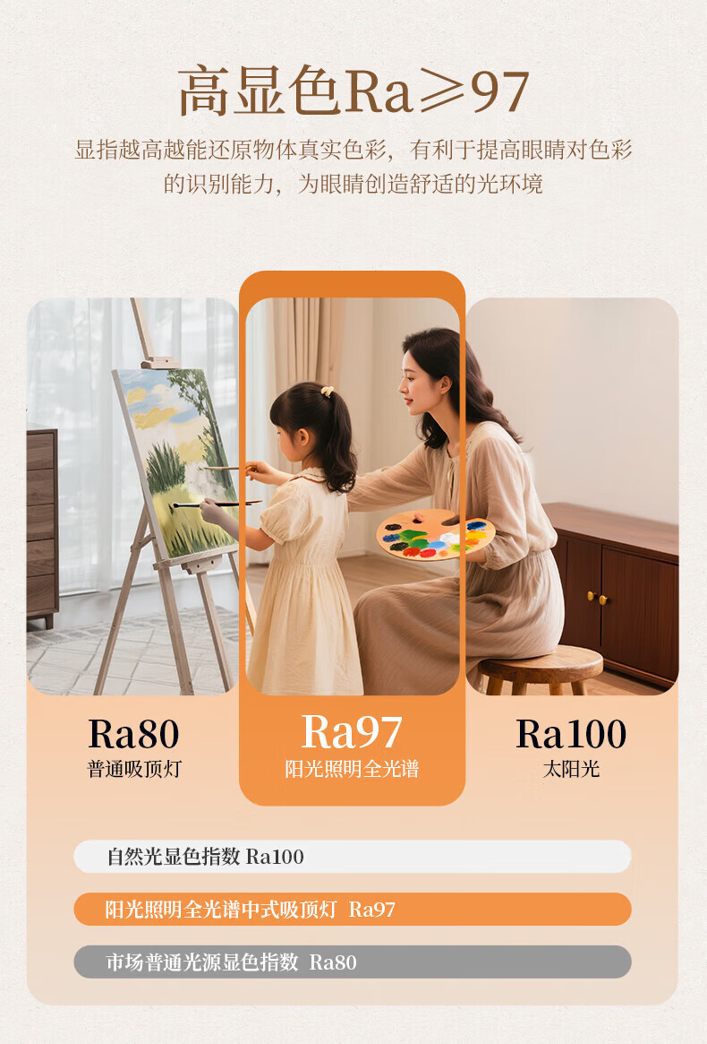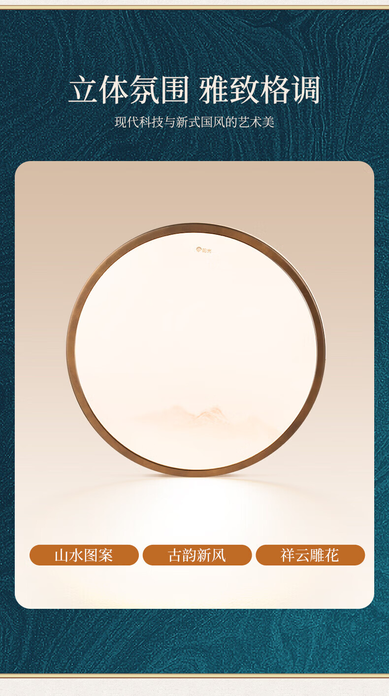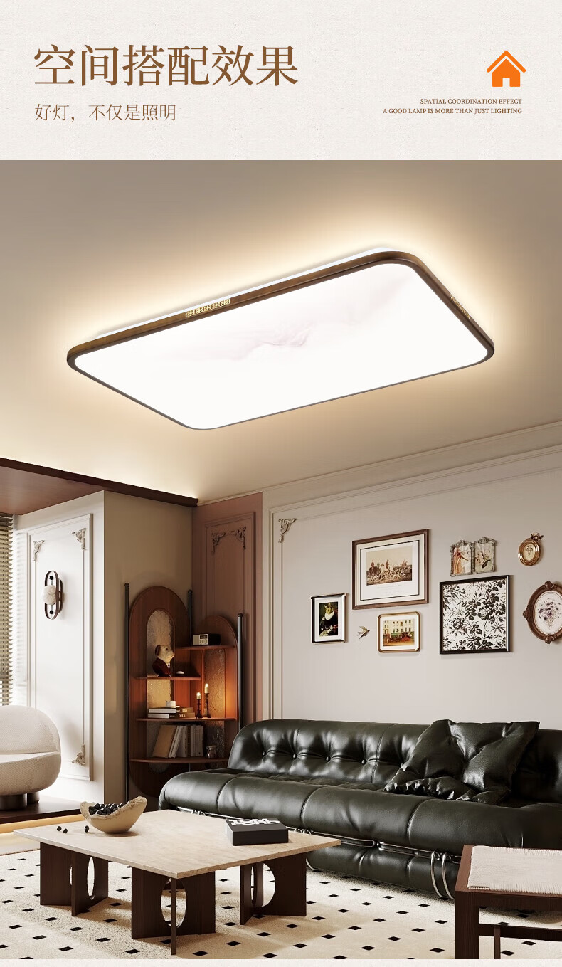 阳光(YANKON)LED全光谱新款中古风客厅大灯 护眼卧室吸顶灯 灯具 【智控】木绘丨138w客厅大灯丨已接入米家APP