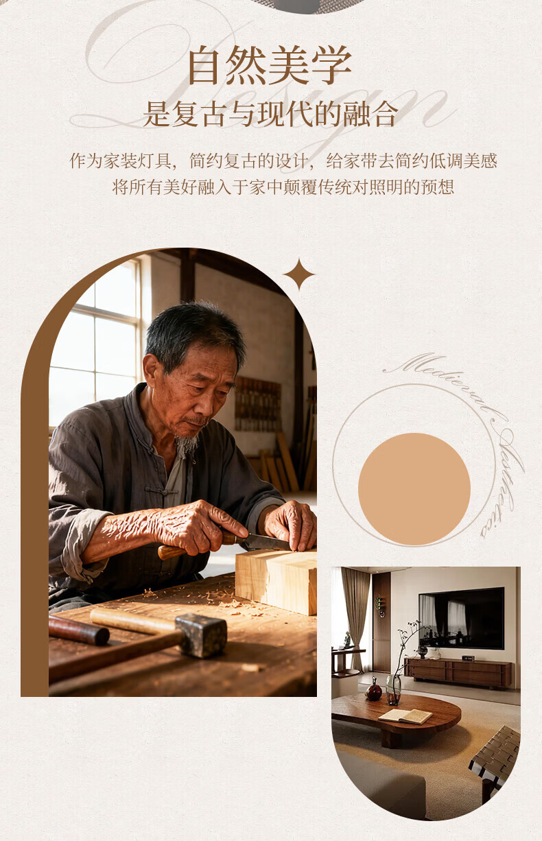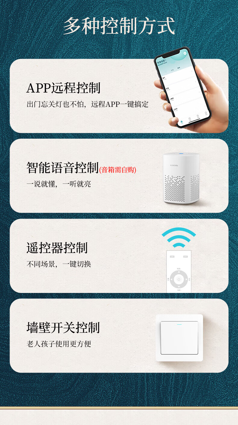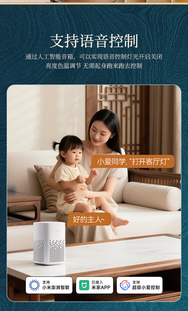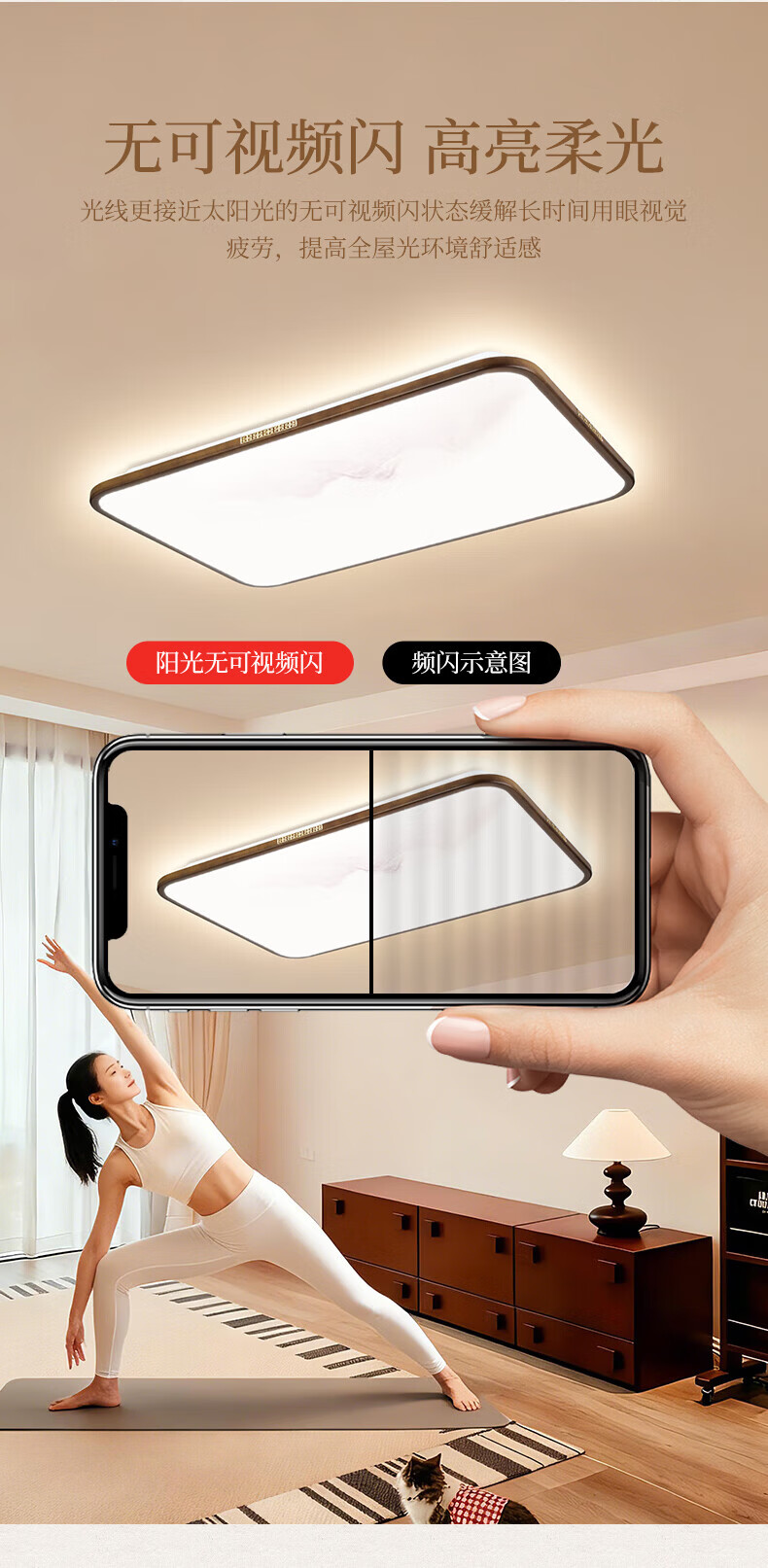 阳光(YANKON)LED全光谱新款中古风客厅大灯 护眼卧室吸顶灯 灯具 【智控】木绘丨138w客厅大灯丨已接入米家APP