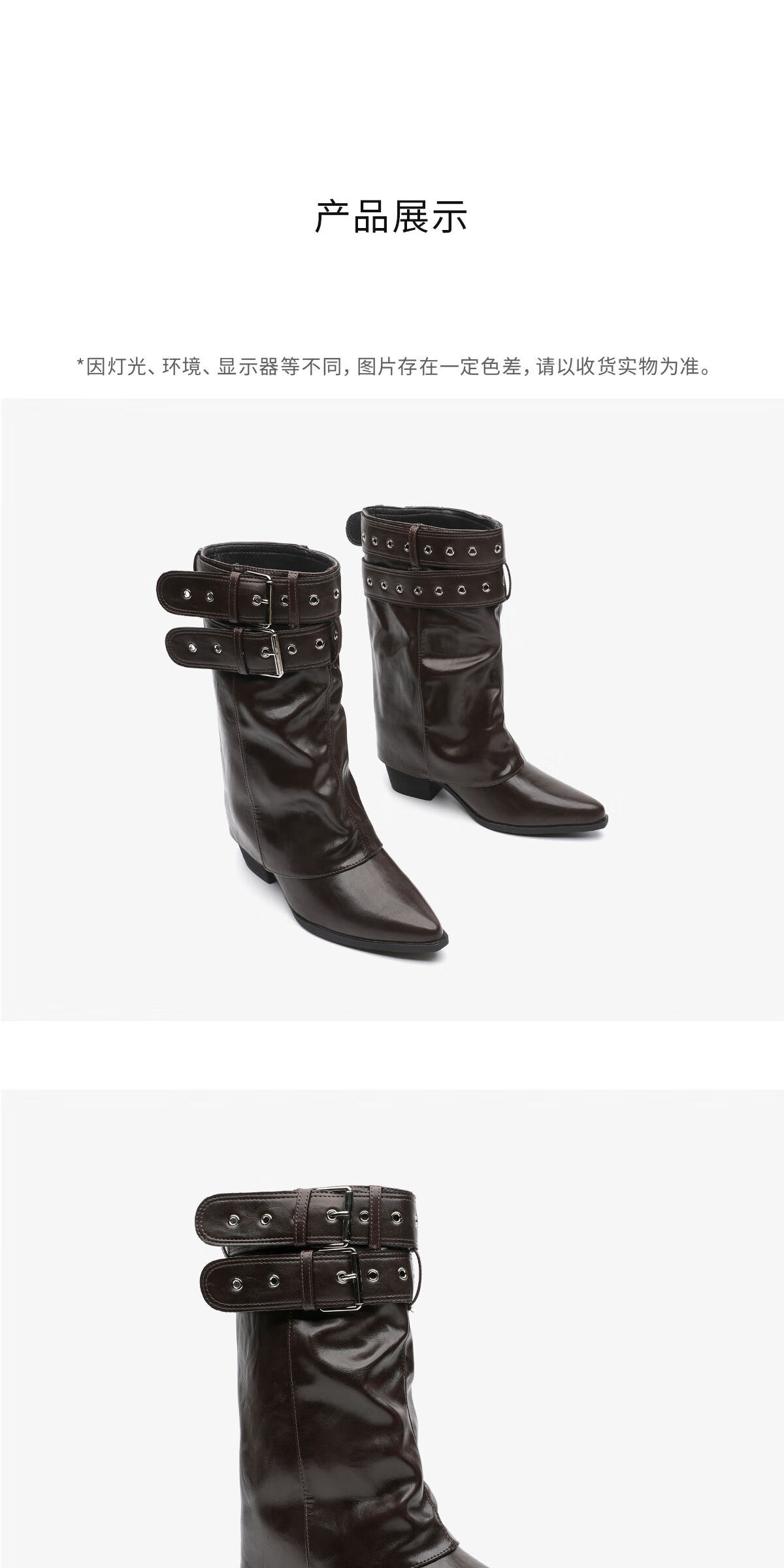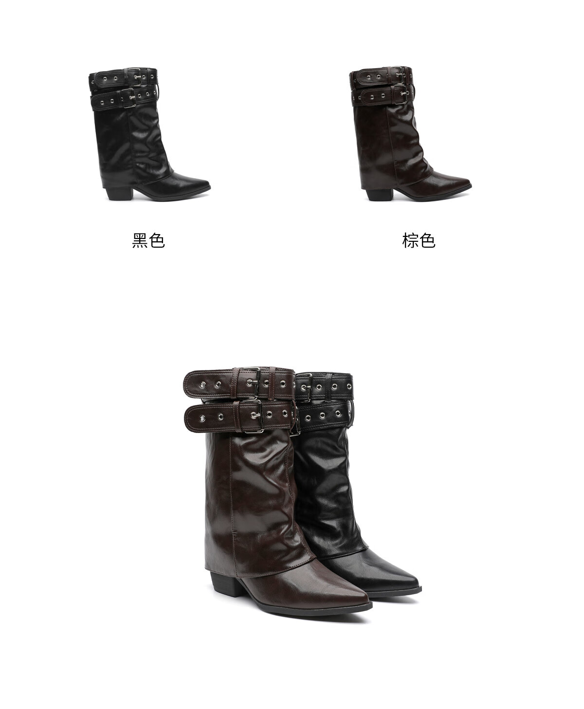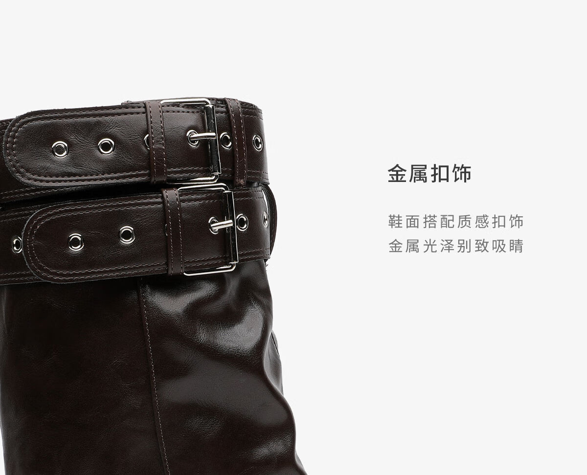月芽儿中筒靴女2025新款冬季巨好看复古骑士靴皮带扣裤管靴子 绒里黑色01T 34