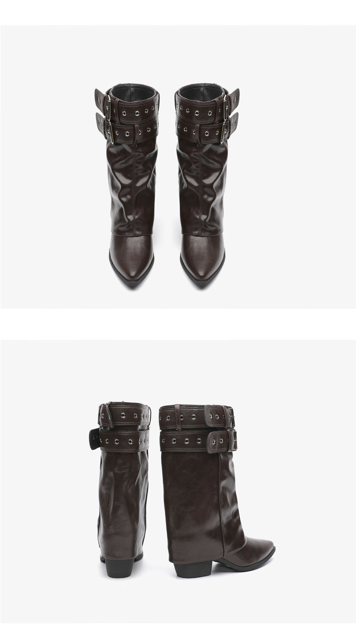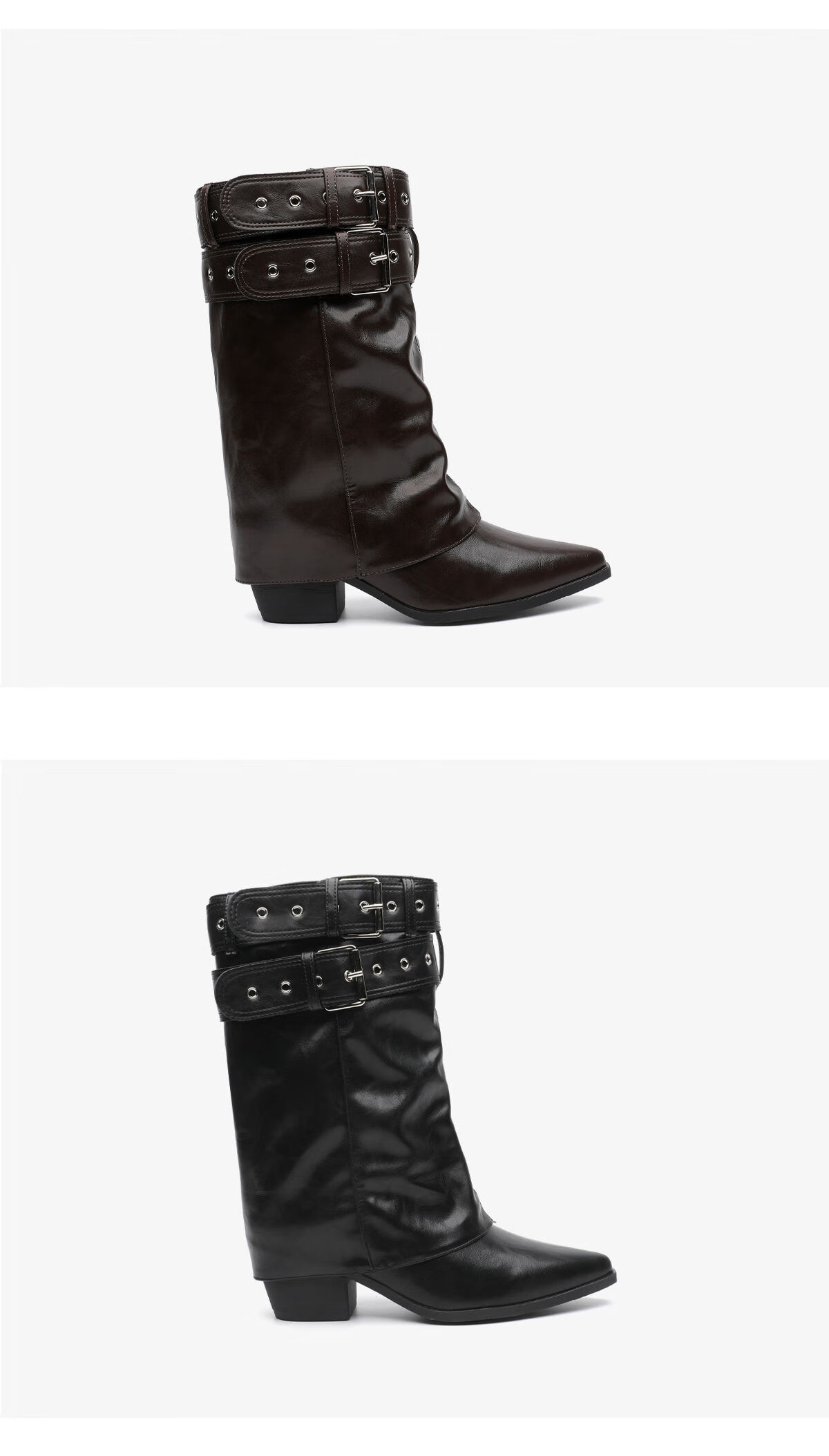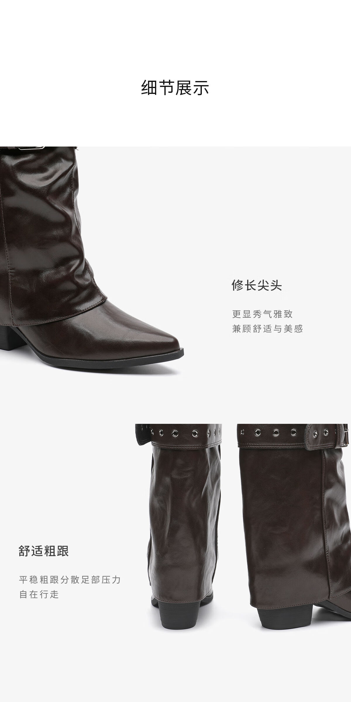月芽儿中筒靴女2025新款冬季巨好看复古骑士靴皮带扣裤管靴子 绒里黑色01T 34