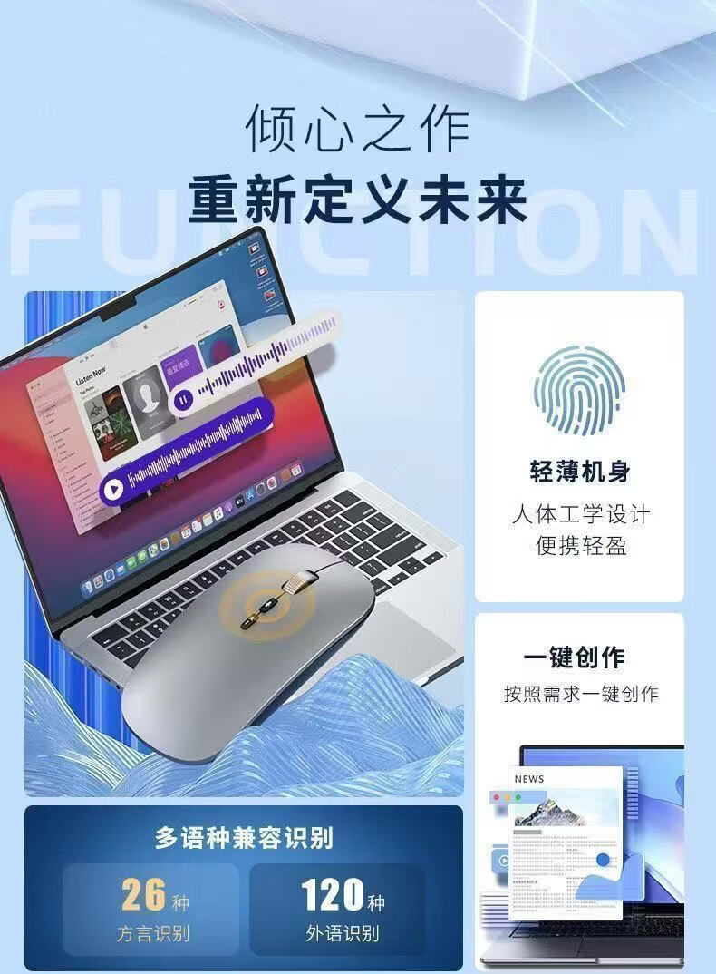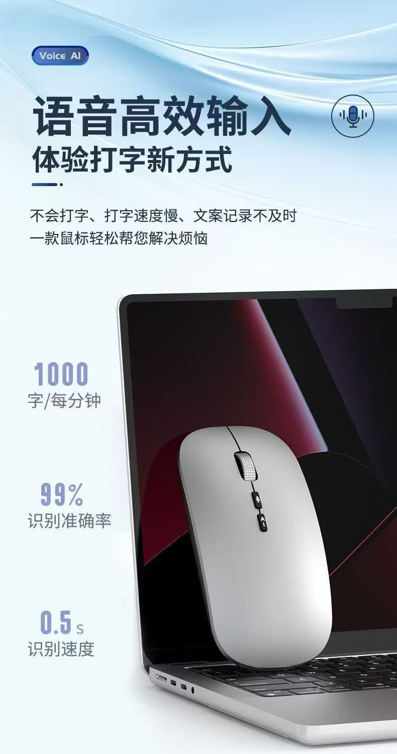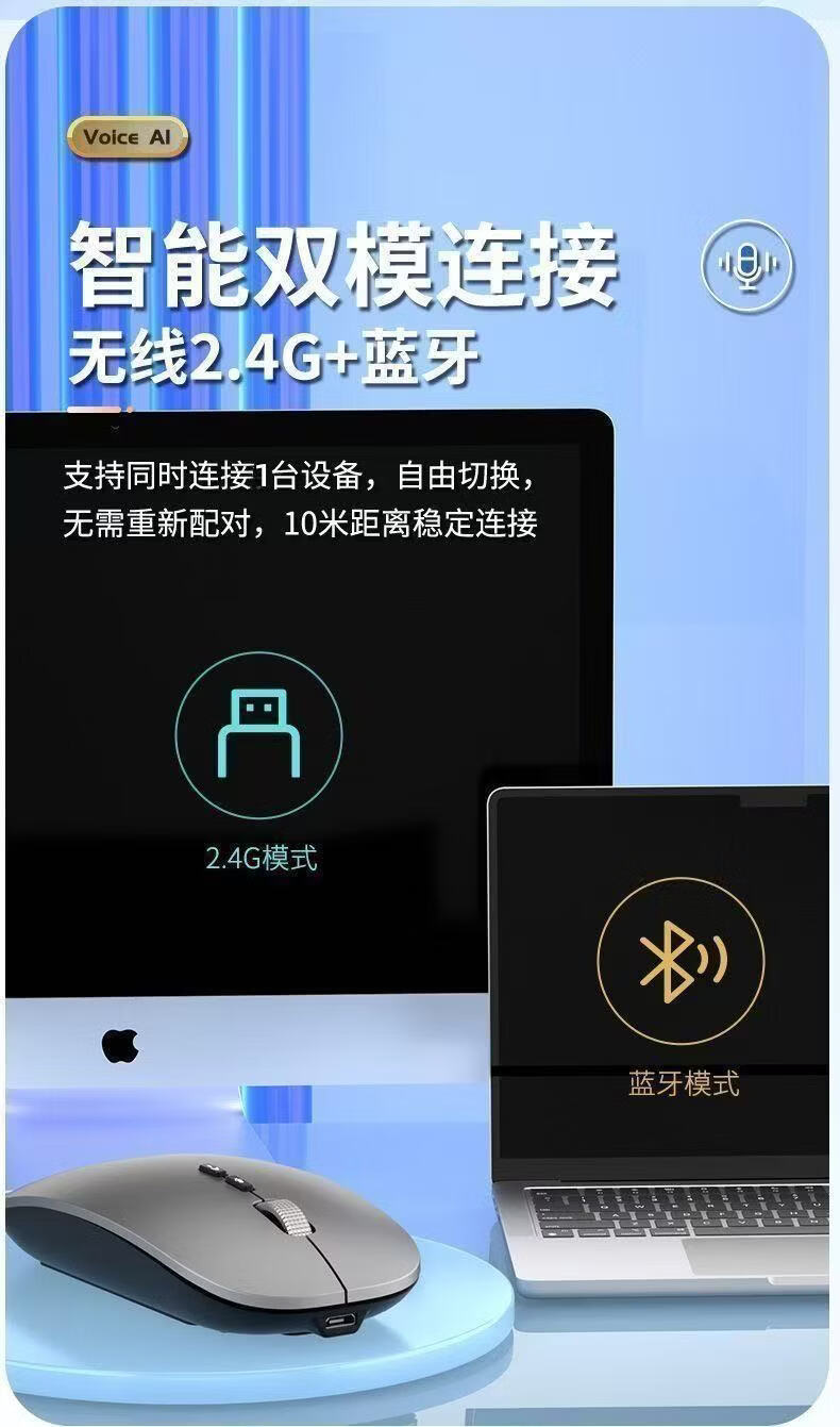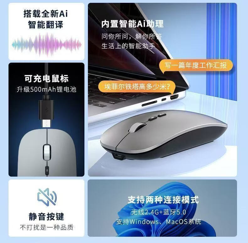 伈蓝Ai鼠标无线蓝牙双模智能静音办公鼠标轻音充电办公学习笔记本电脑无线鼠标 512-双模(2.4G+蓝牙)黑色