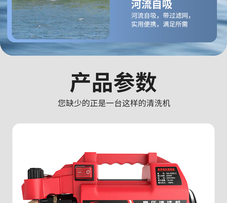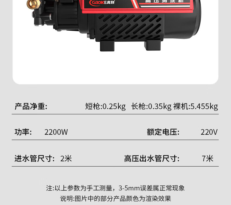 高刻洗车机高压水枪220V家庭用商用清洗机刷车泵神器超高水压强力洗地 2200W 基础款/纯铜电机/短水枪