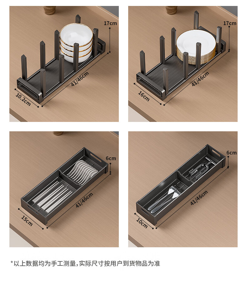 苏泊尔厨房碗碟置物架抽屉收纳盒分隔内置橱柜沥水碗架碗筷盘子拉篮配件 枪灰碟架46CM