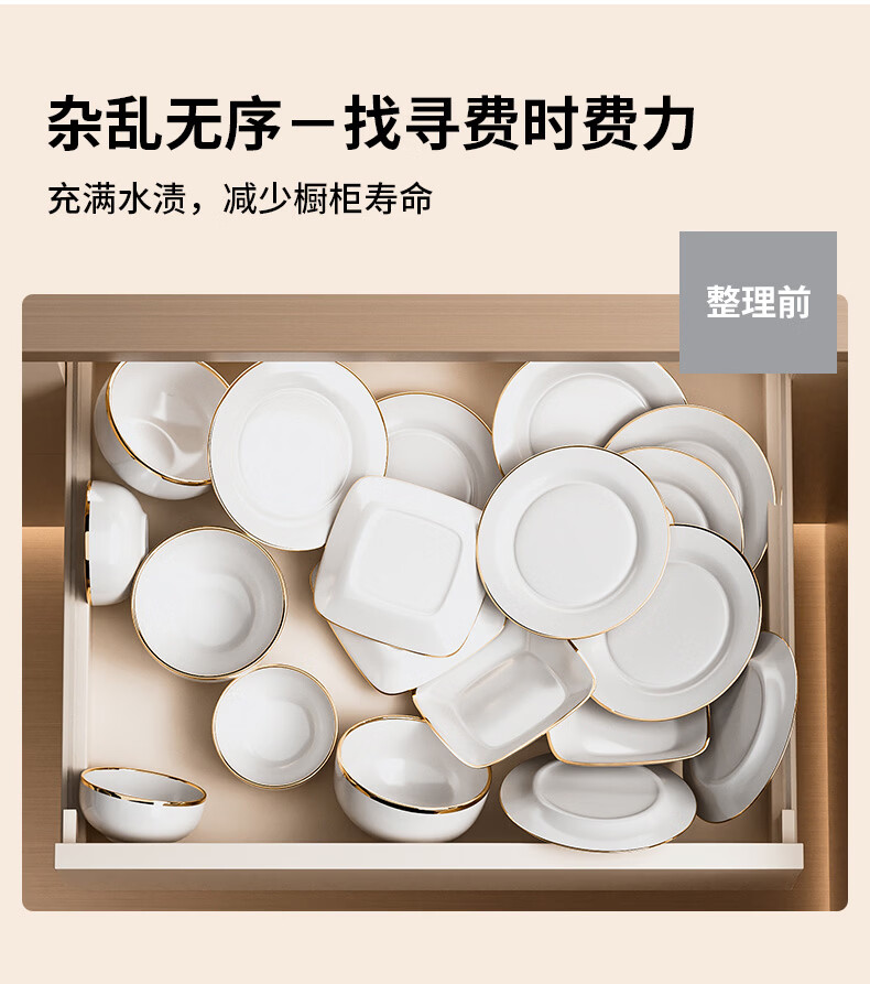 苏泊尔厨房碗碟置物架抽屉收纳盒分隔内置橱柜沥水碗架碗筷盘子拉篮配件 白色堆碟架46CM