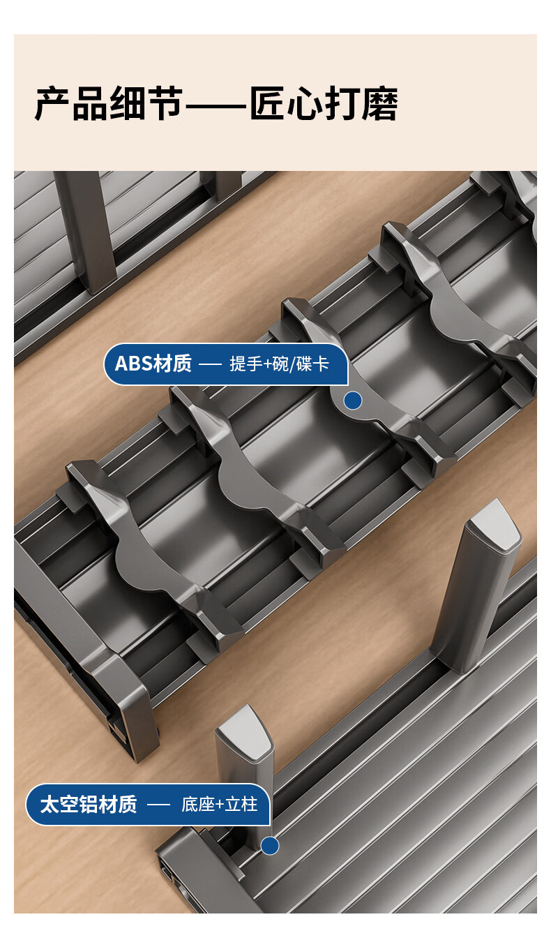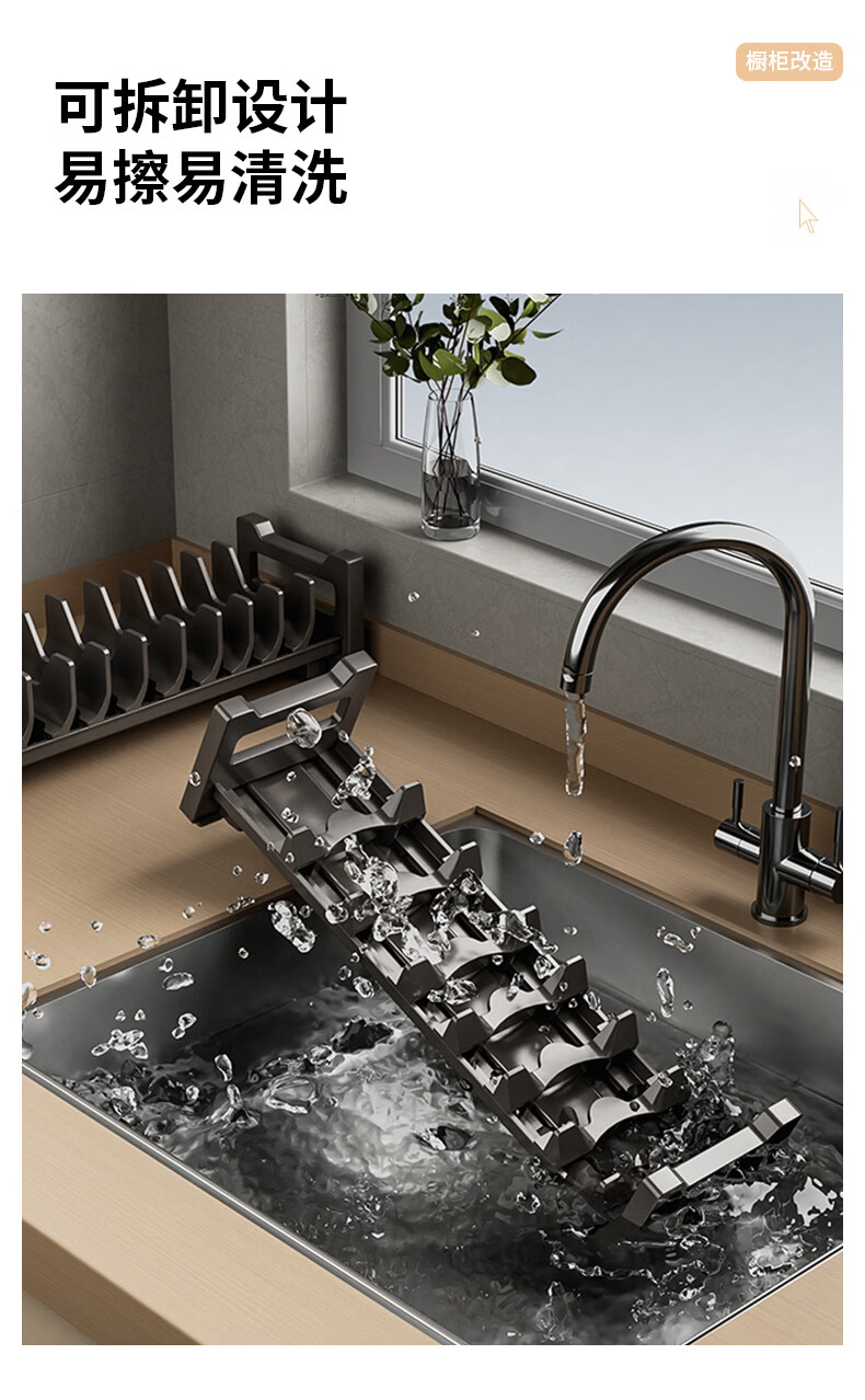 苏泊尔厨房碗碟置物架抽屉收纳盒分隔内置橱柜沥水碗架碗筷盘子拉篮配件 枪灰堆碗架41CM