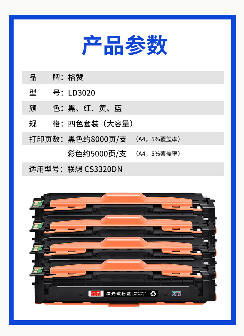 格赞LD3020硒鼓四色套装 适用联想Lenovo cs3320dn硒鼓 cs3320打印机墨盒 粉盒 墨粉盒 碳粉盒 大容量