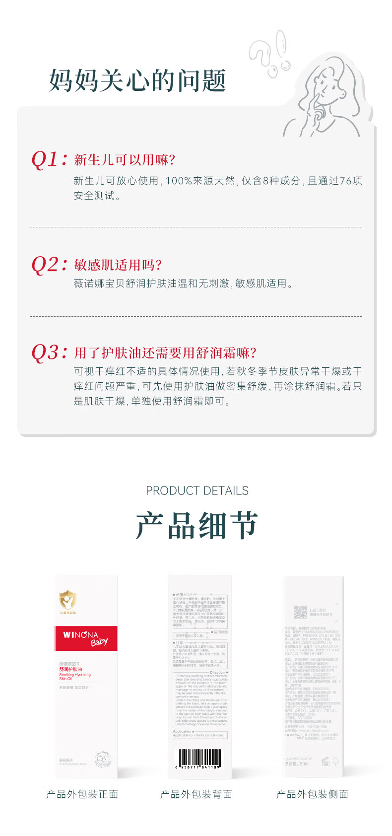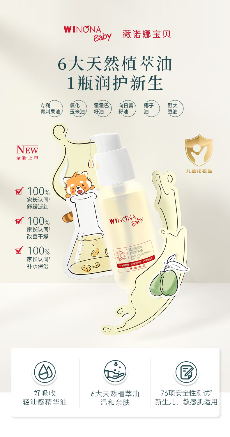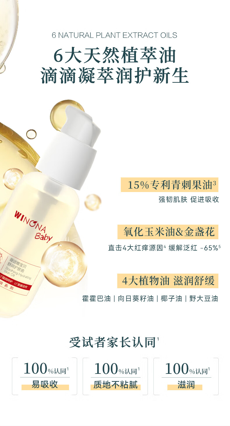 薇诺娜宝贝舒润护肤油50ml 婴幼儿宝宝抚触油青刺果保湿滋润儿童身体润肤油