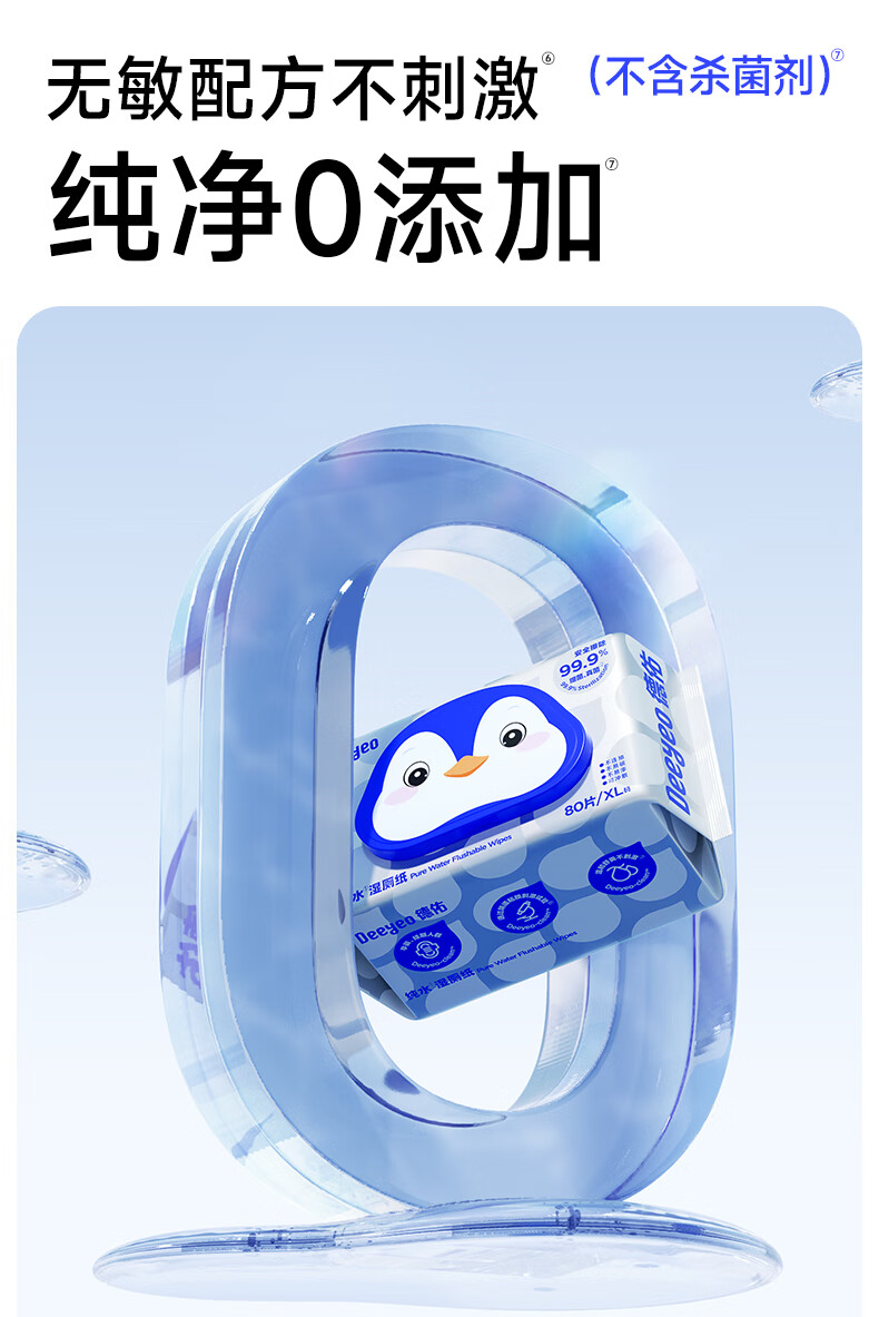德佑纯水湿厕纸80抽*4包擦屁屁清洁湿纸巾0敏婴童适用无刺激可冲马桶