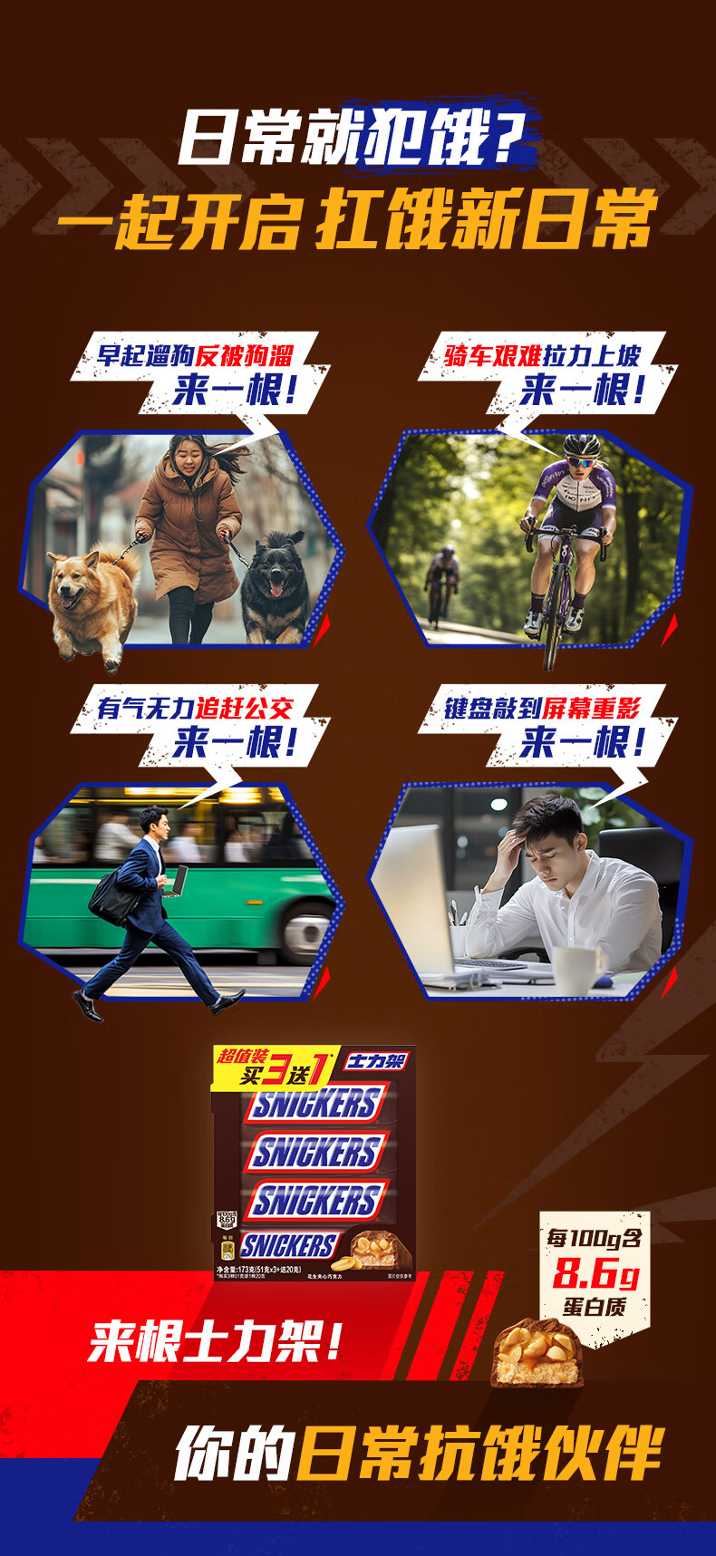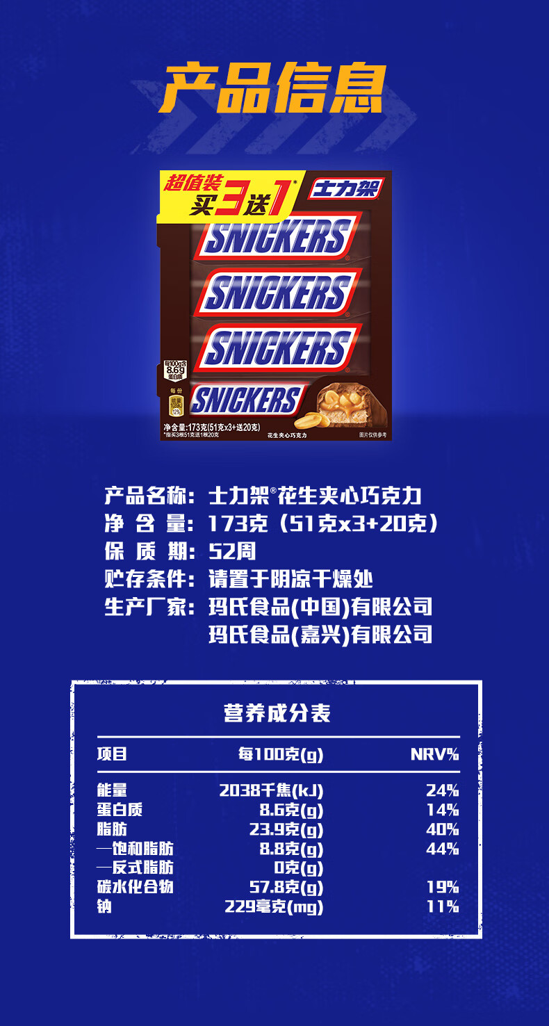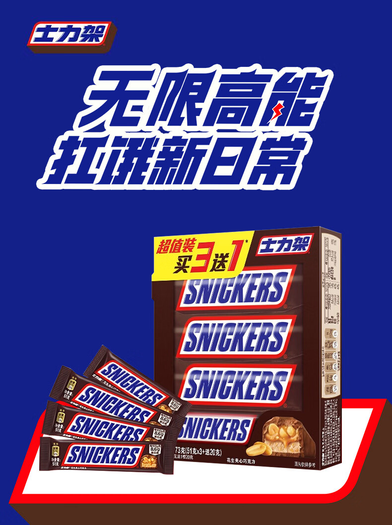 士力架 花生夹心巧克力 盒装51g*3+20g 休闲儿童零食 糖果 生日礼物