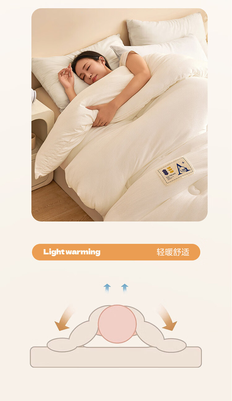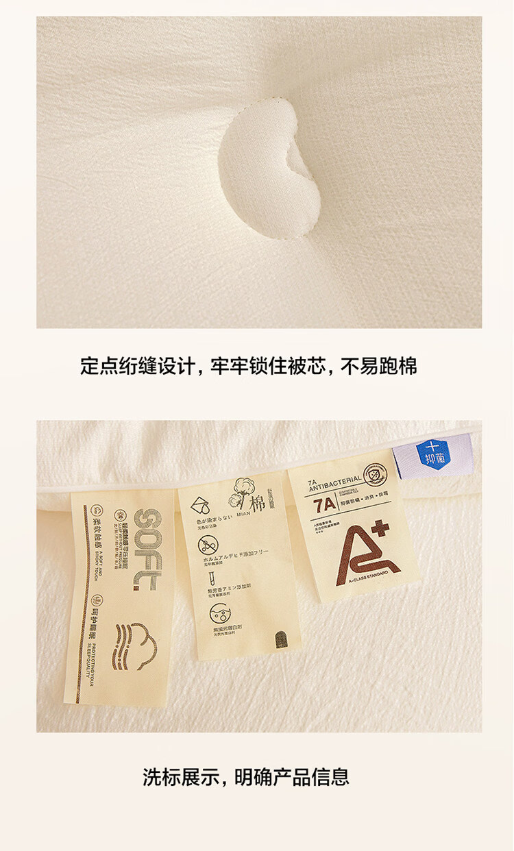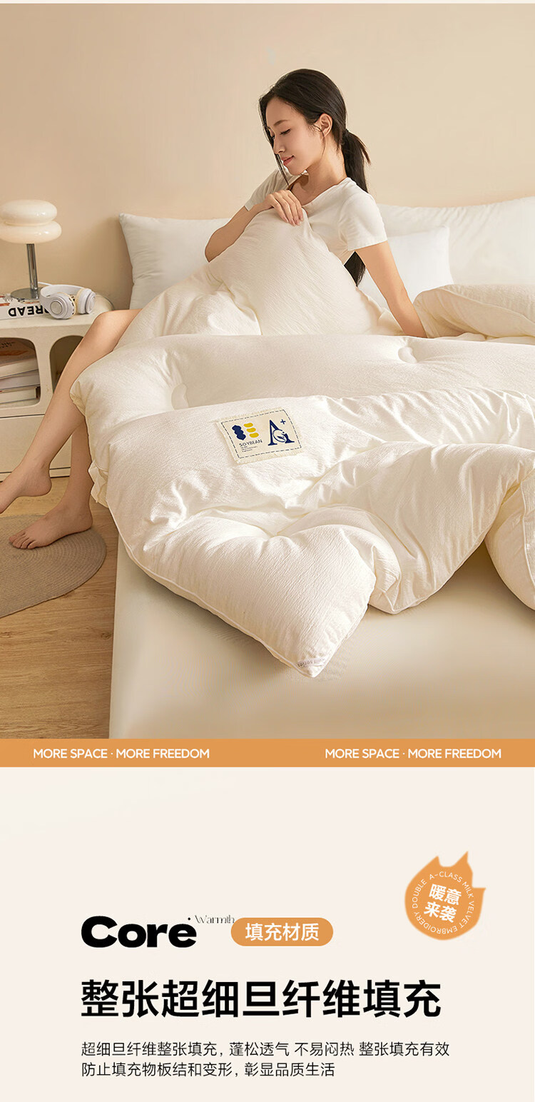 猫人(MiiOW)皱皱纱大豆被子冬被 加厚保暖棉被芯春秋被单双人被褥 雅白 150*200cm-4斤