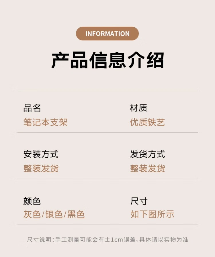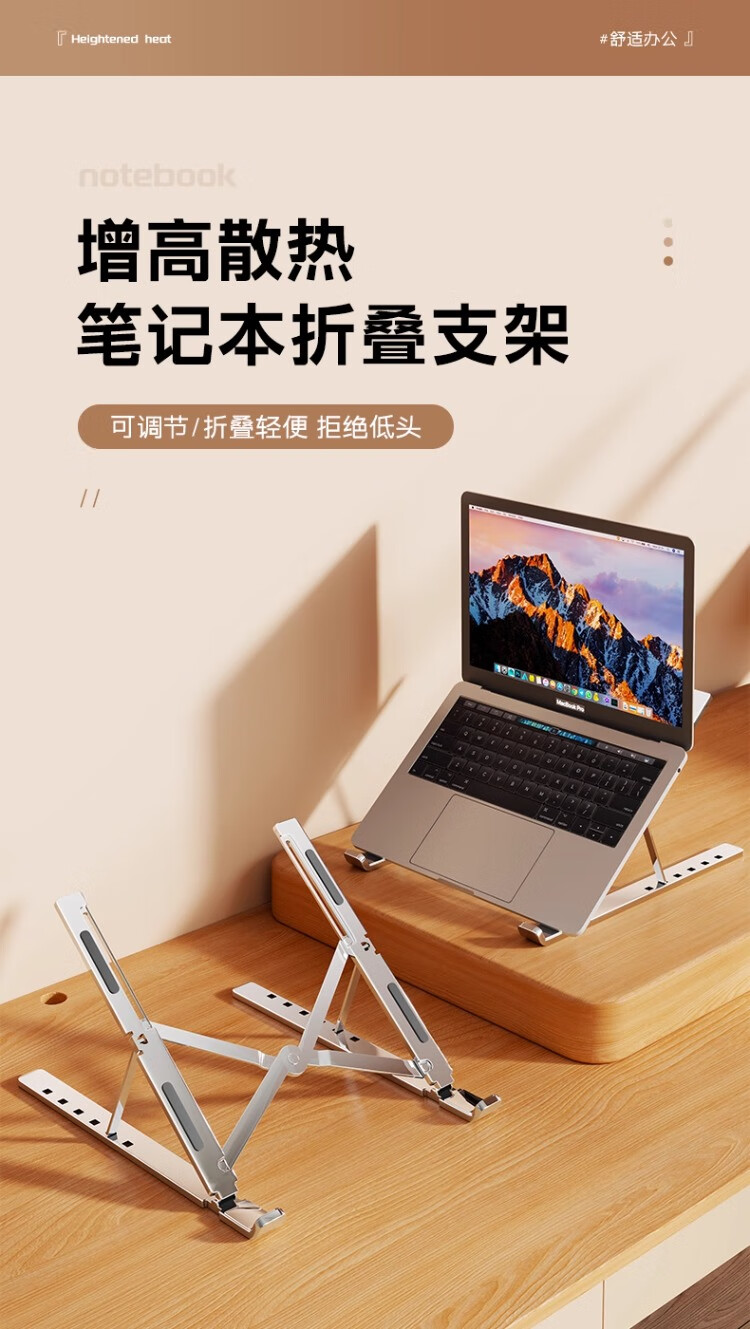 尔思家笔记本电脑支架台面置物架散热架通用折叠便携式显示器通用增高架 银色
