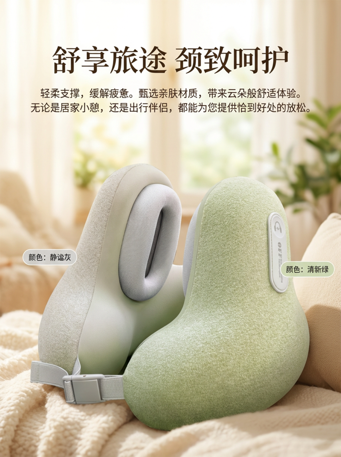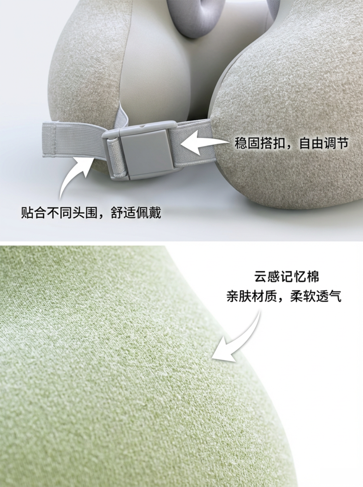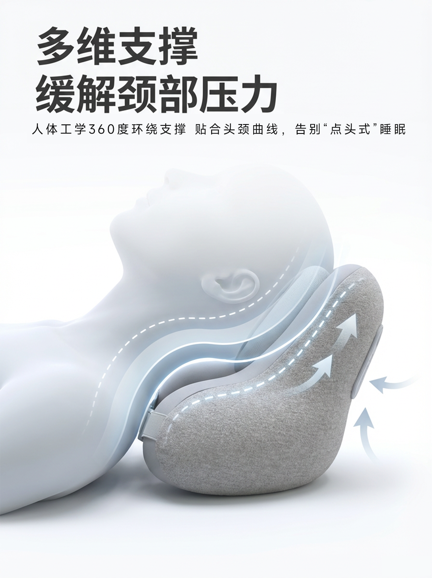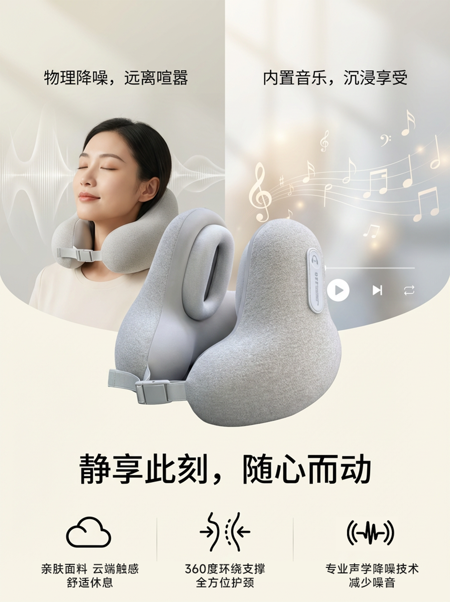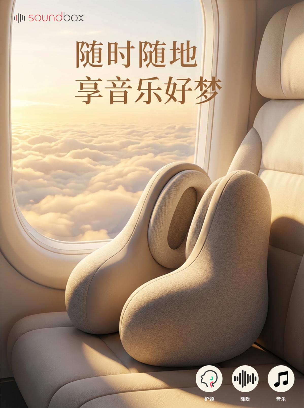 soundbox降噪音乐U型枕旅行开车便携枕头飞机护颈枕办公午睡降噪助眠神器 浅灰色