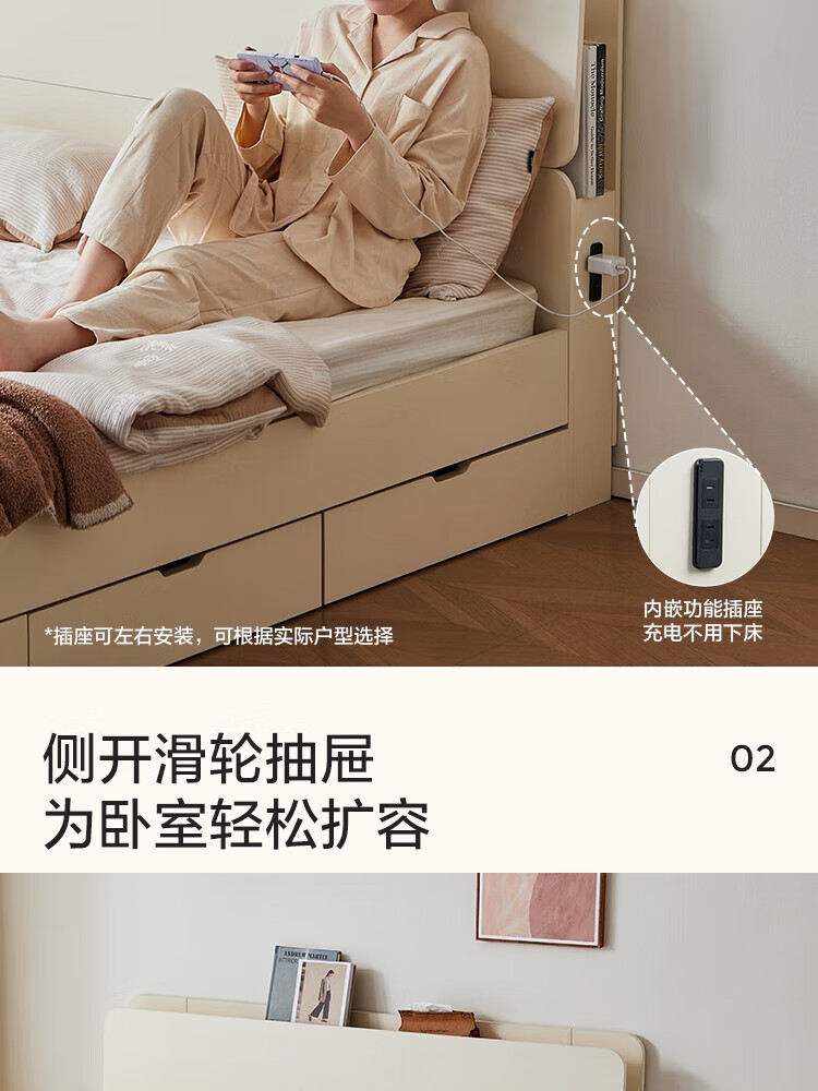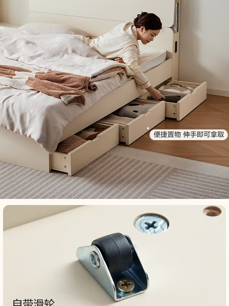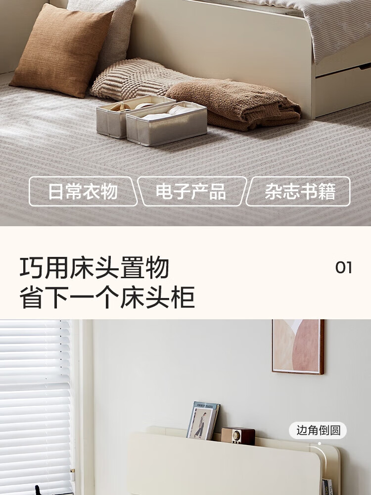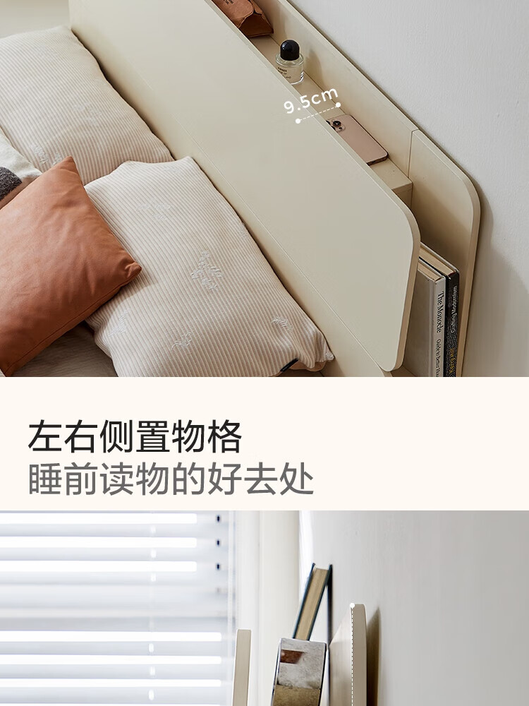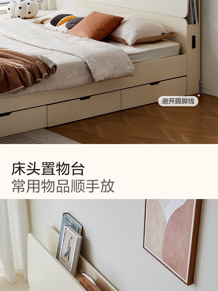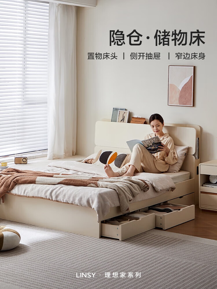 LINSY KIDS奶油风床1.8米x2米高箱储物床1.5米榻榻米无床头卧室地台单人UD9A 【置物床头|无抽屉】常规床 1200mm*2000mm 单床