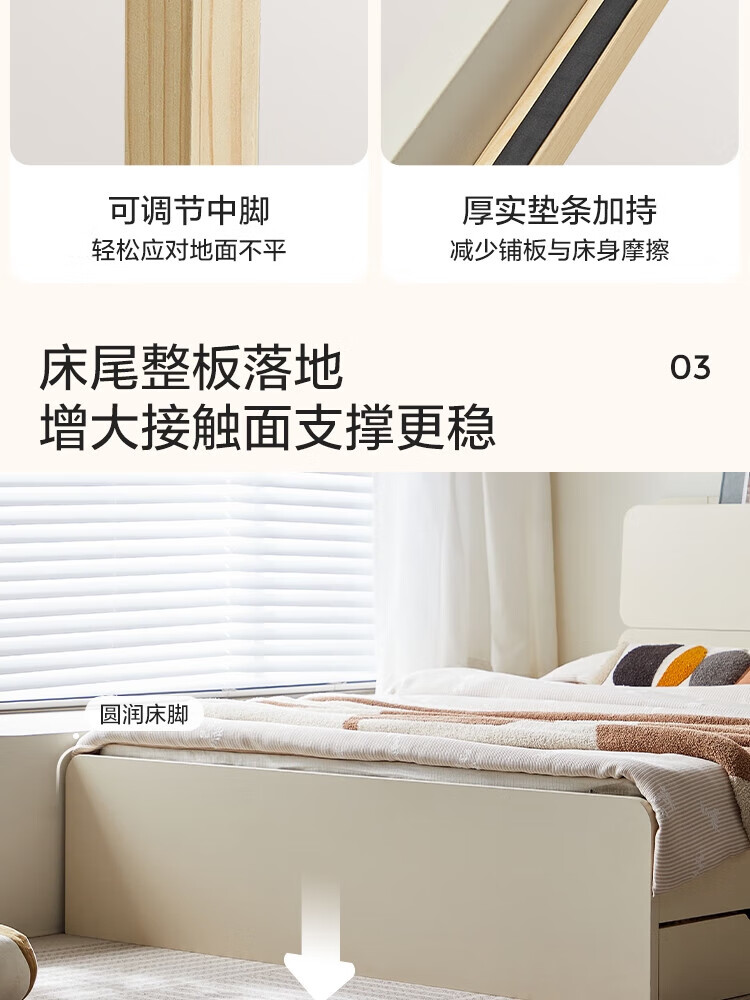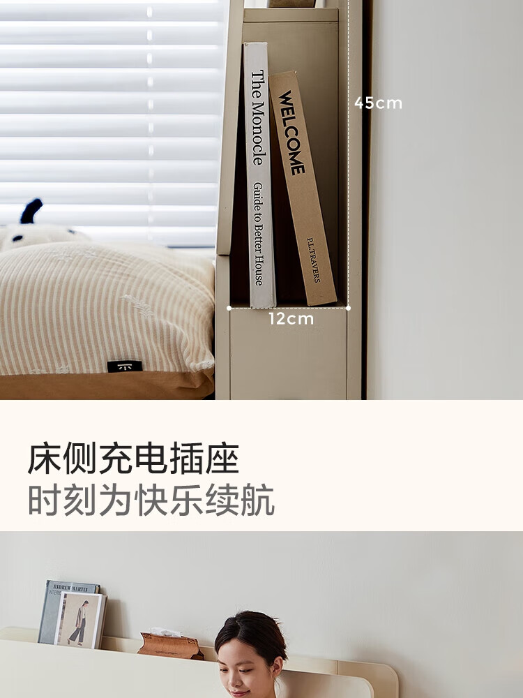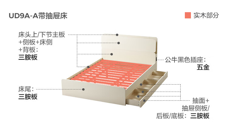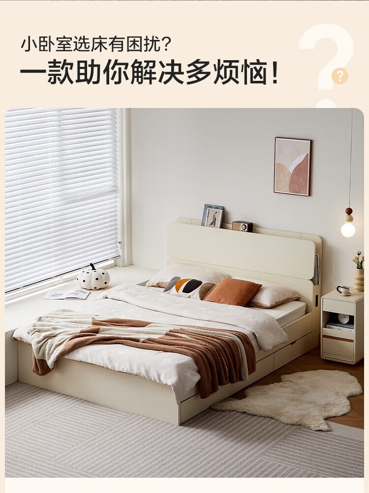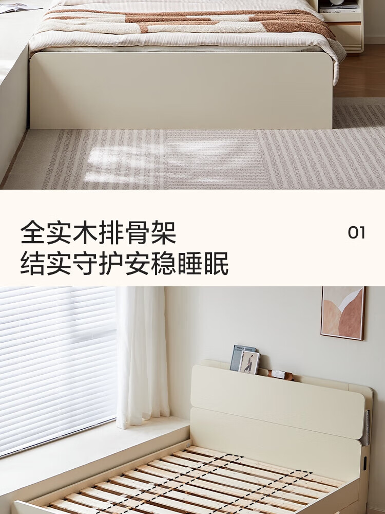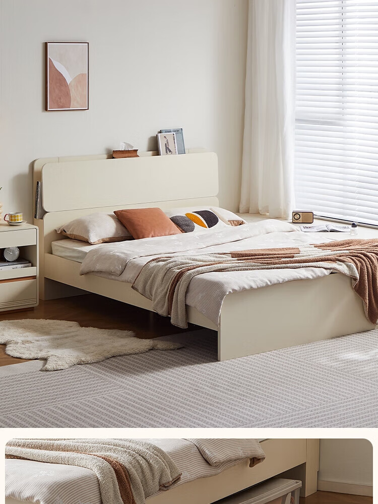 LINSY KIDS奶油风床1.8米x2米高箱储物床1.5米榻榻米无床头卧室地台单人UD9A 【置物床头|无抽屉】常规床 1200mm*2000mm 单床