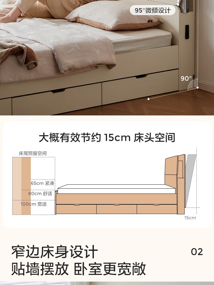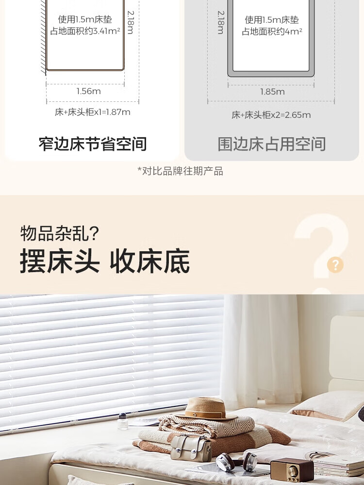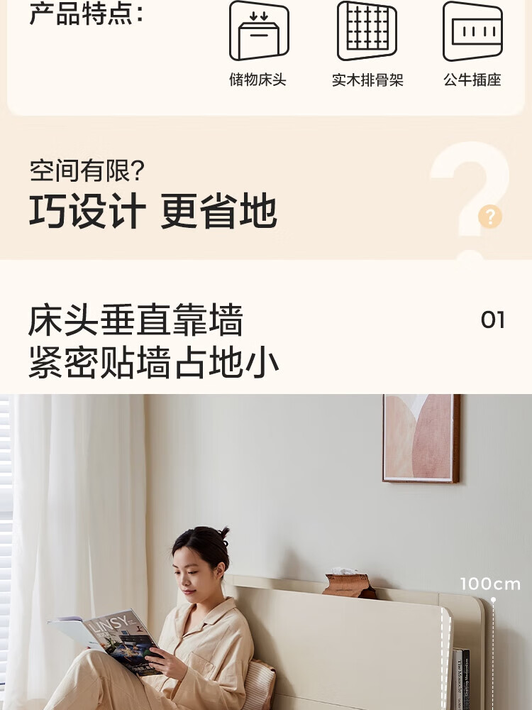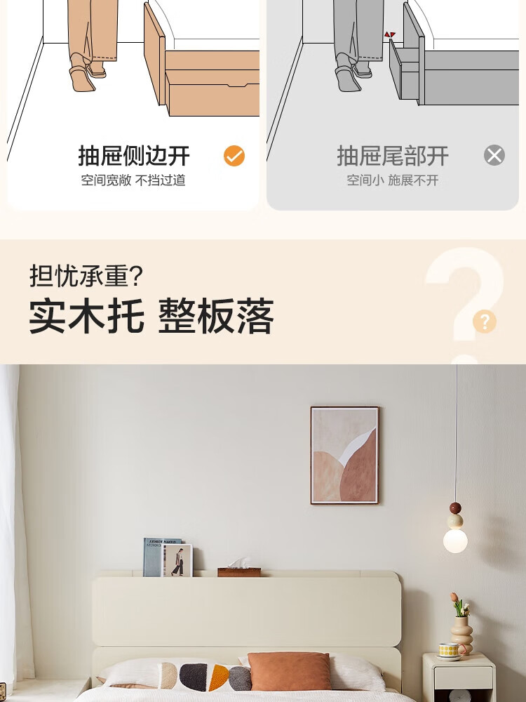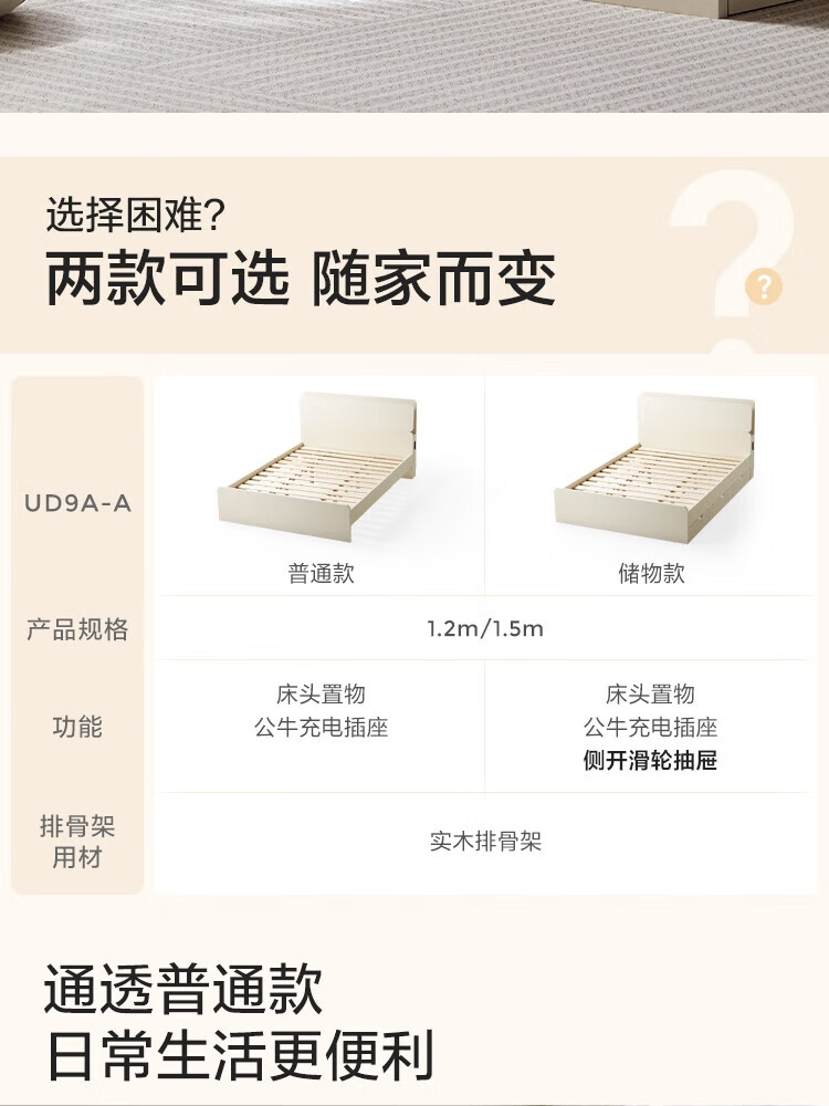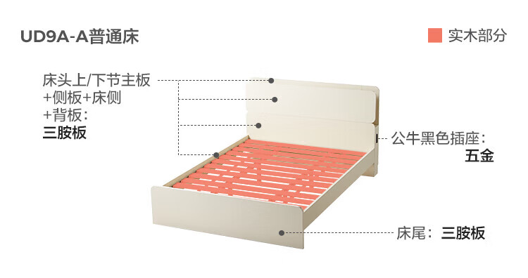 LINSY KIDS奶油风床1.8米x2米高箱储物床1.5米榻榻米无床头卧室地台单人UD9A 【置物床头|无抽屉】常规床 1200mm*2000mm 单床