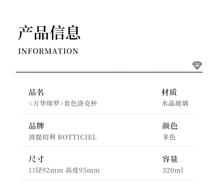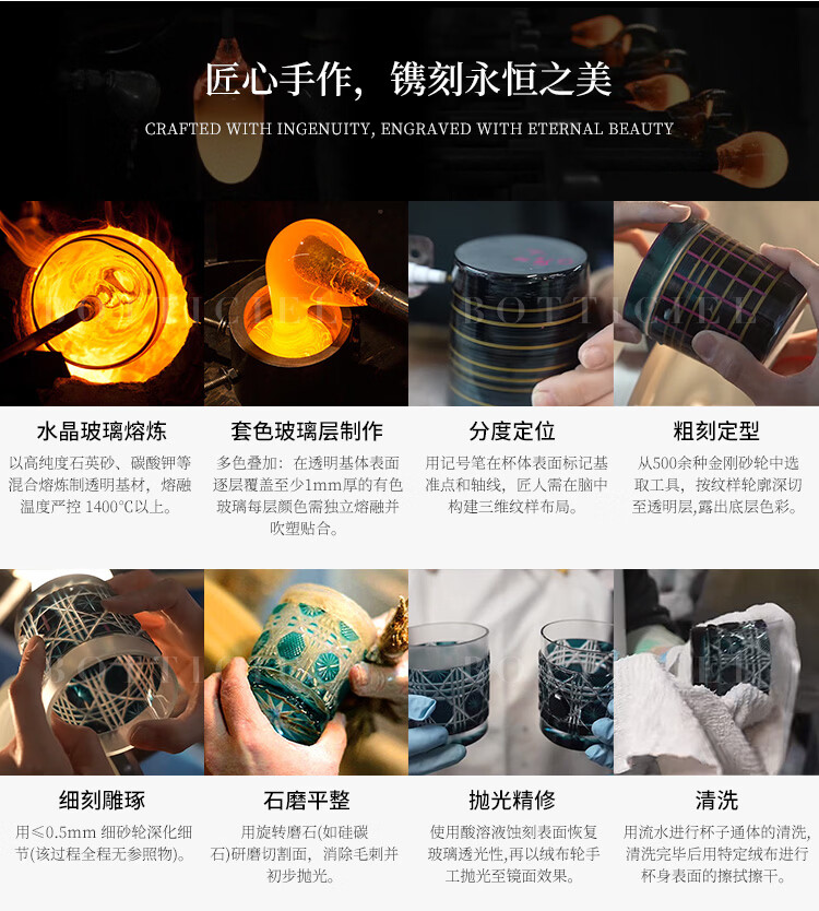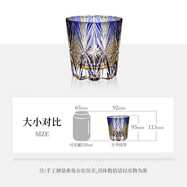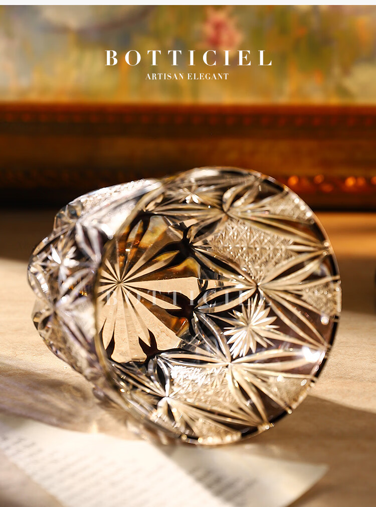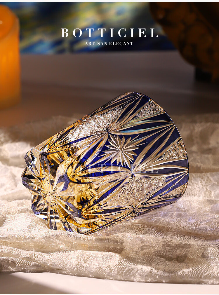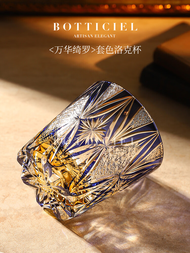 BOTTICIEL万华绮罗江户切子手工雕刻威士忌杯水晶玻璃洋酒杯生日婚礼礼物 万华绮罗-琥珀黑【双只礼盒装】 320ml 2只