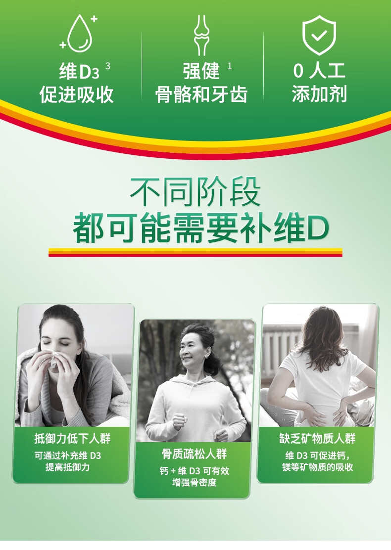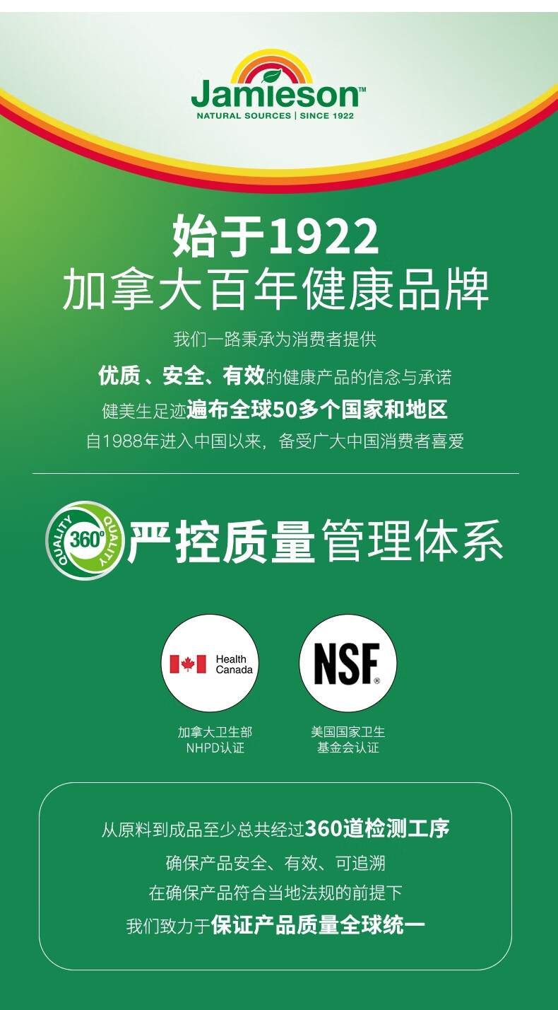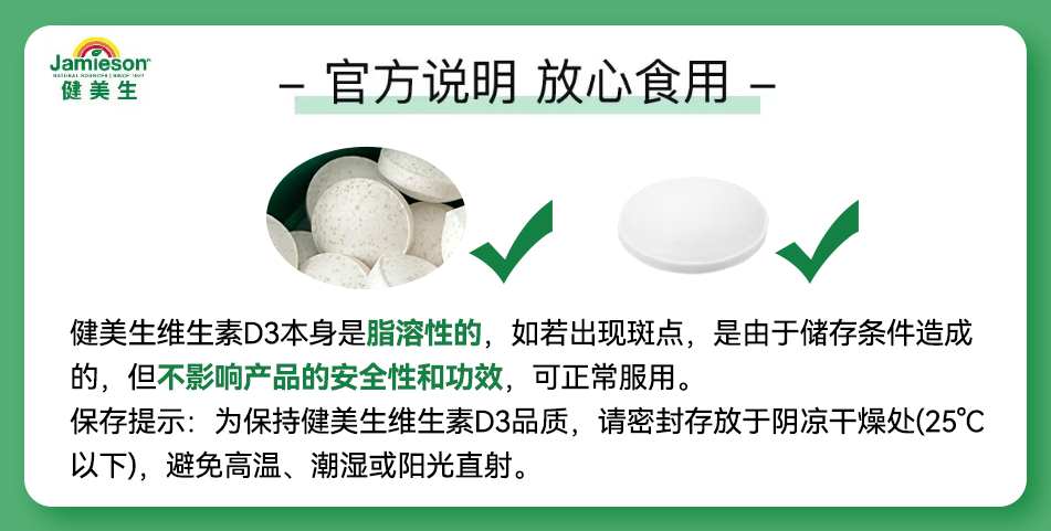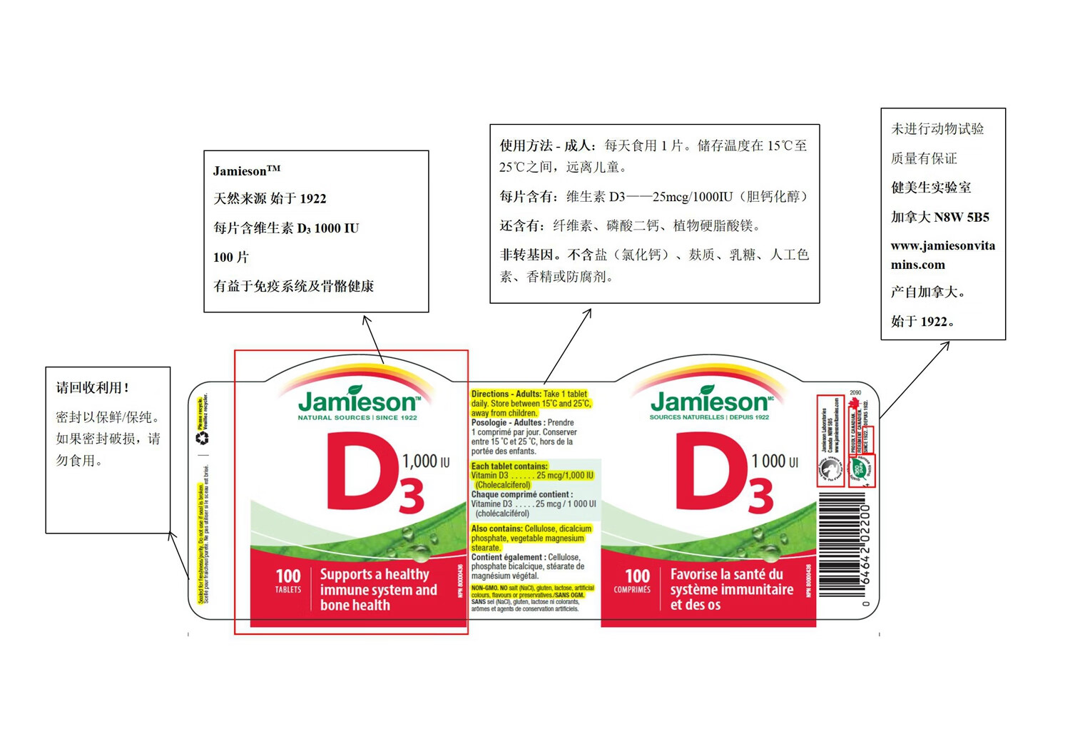 健美生(Jamieson)维生素D3 1000IU*100片/瓶 促进钙吸收阳光瓶d3成年上班日常补充