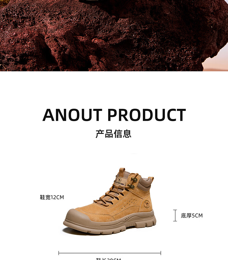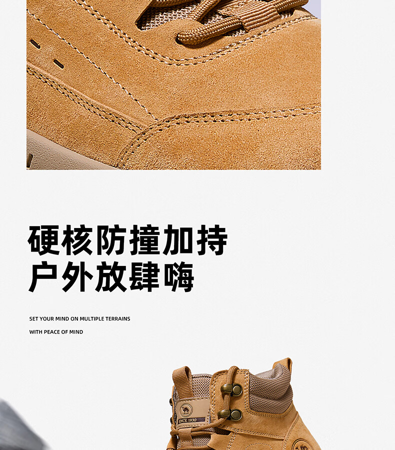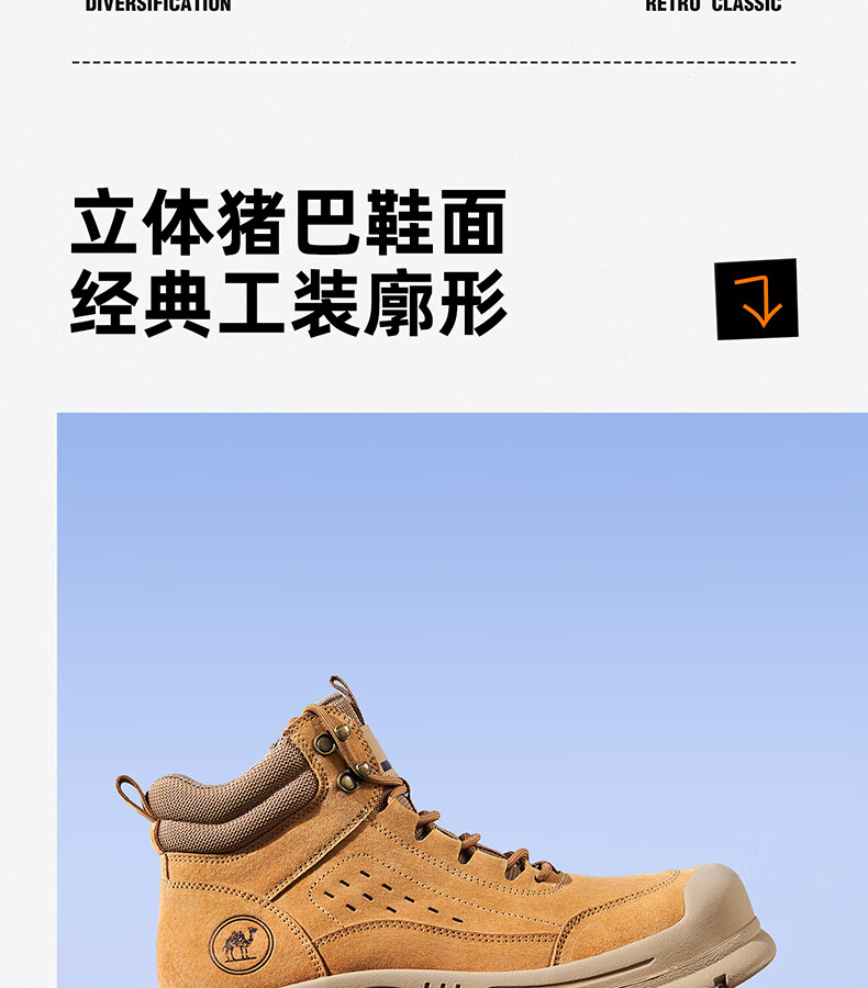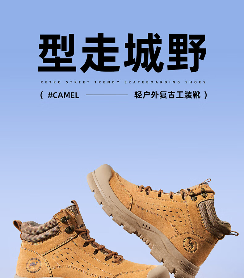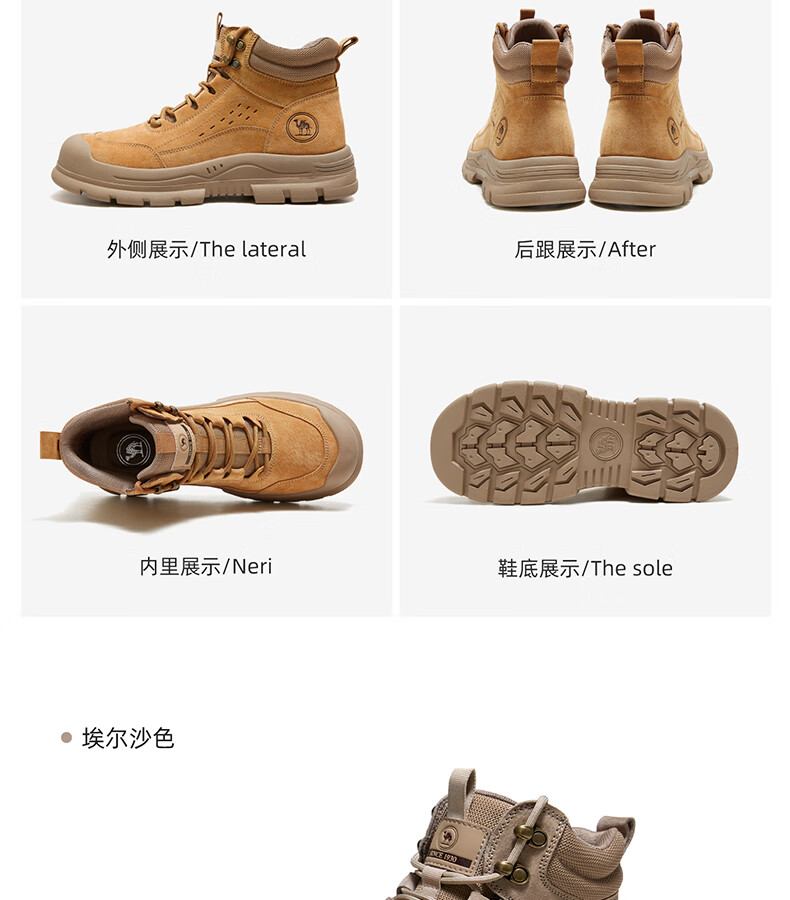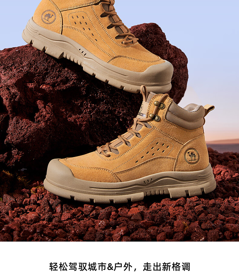 骆驼牌 休闲马丁靴户外大黄靴登山工装靴男鞋 P14W307611 沙漠黄 41