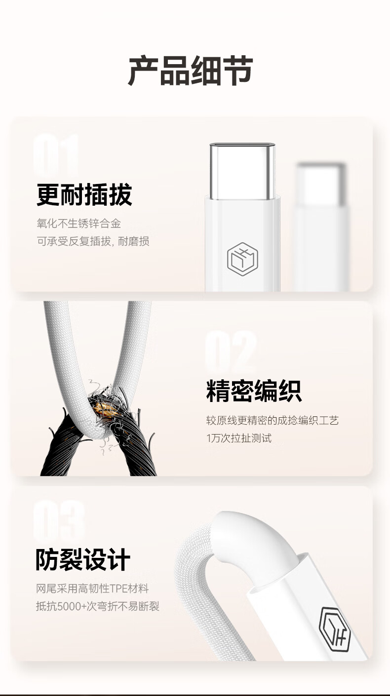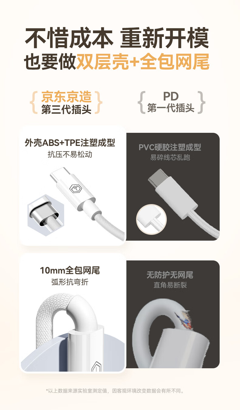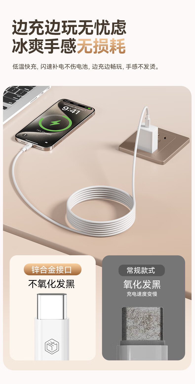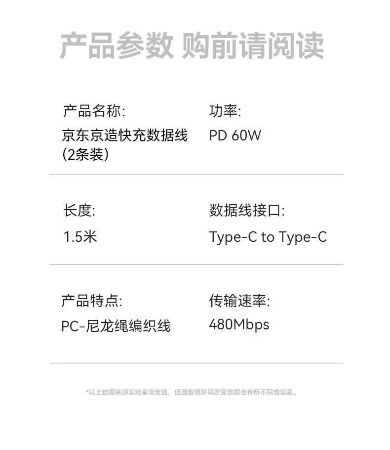 京东京造【两条装】PD60W快充线苹果17/16充电线Type-C数据线双头车载适用iPhone安卓手机平板笔记本 1.5米