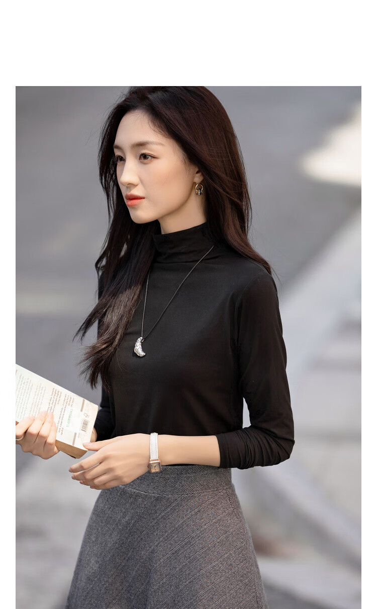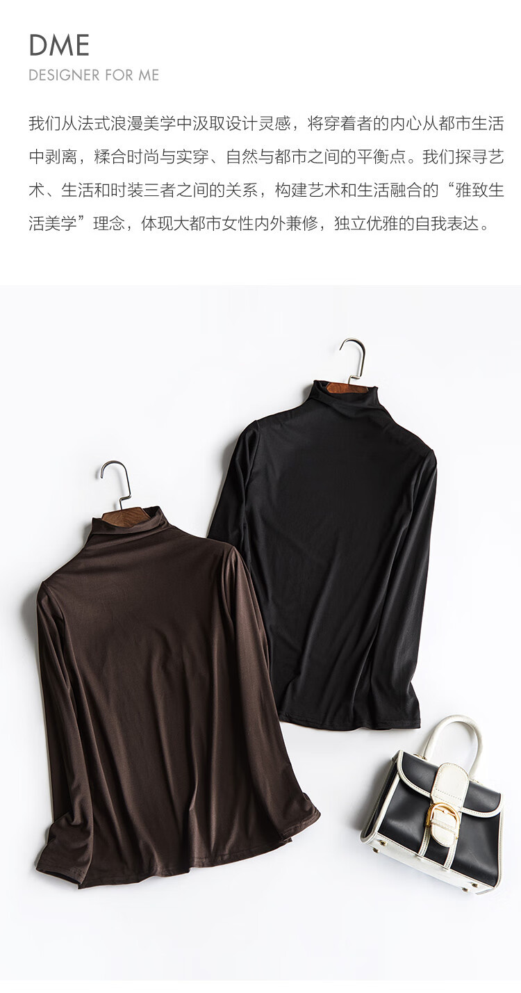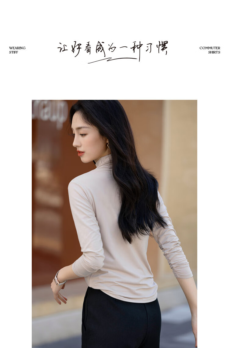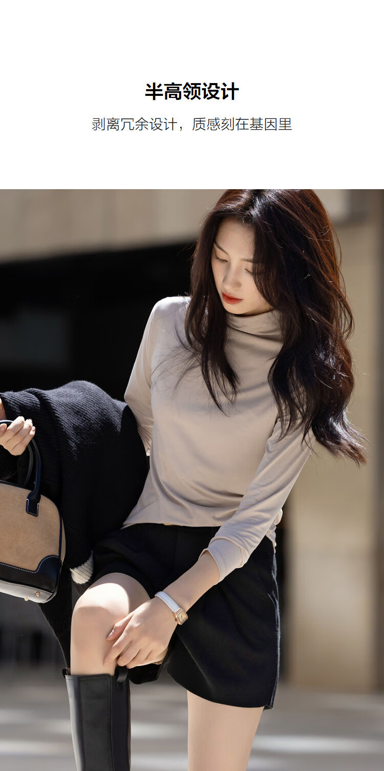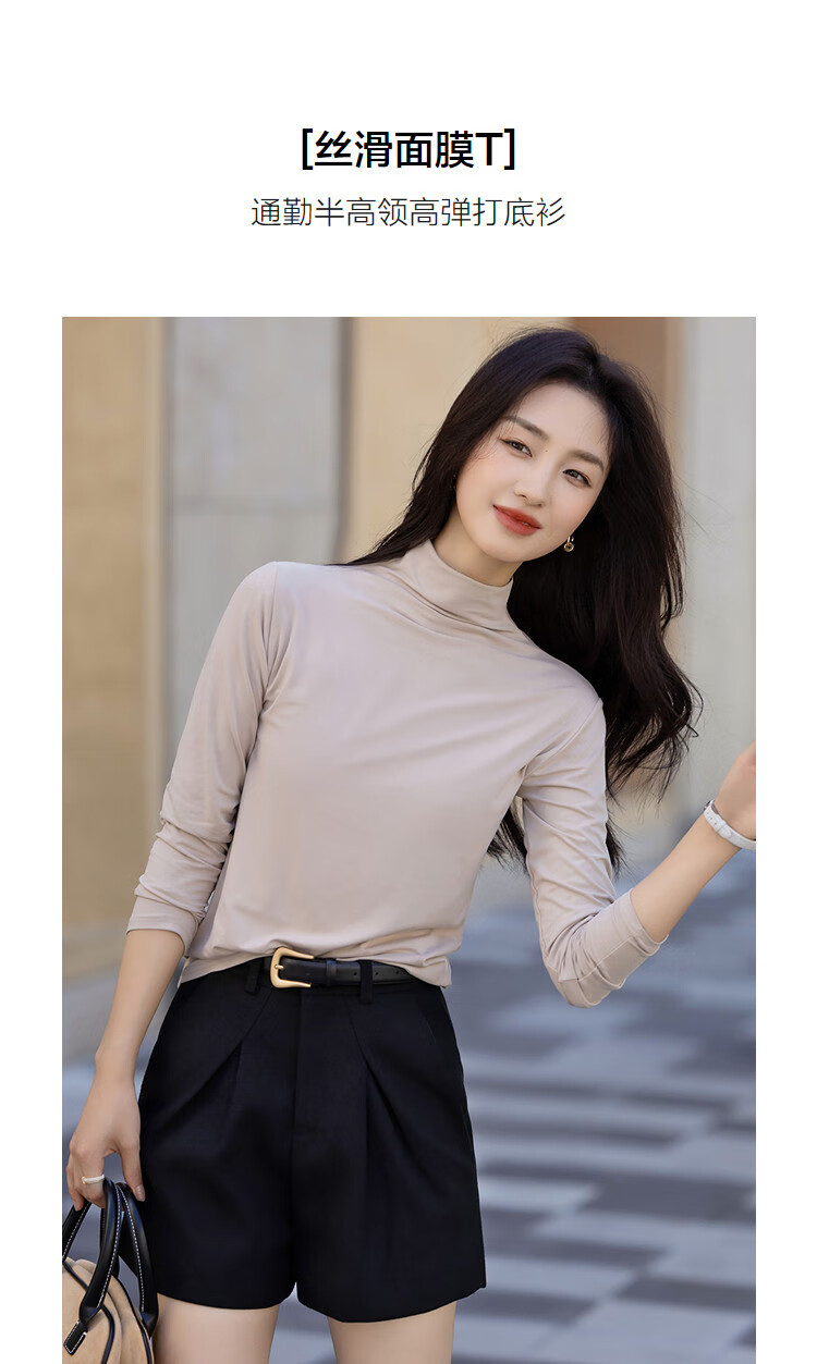 德玛纳【温柔面膜T】冬季通勤半高领正肩打底衫高弹包容赘肉女式t恤