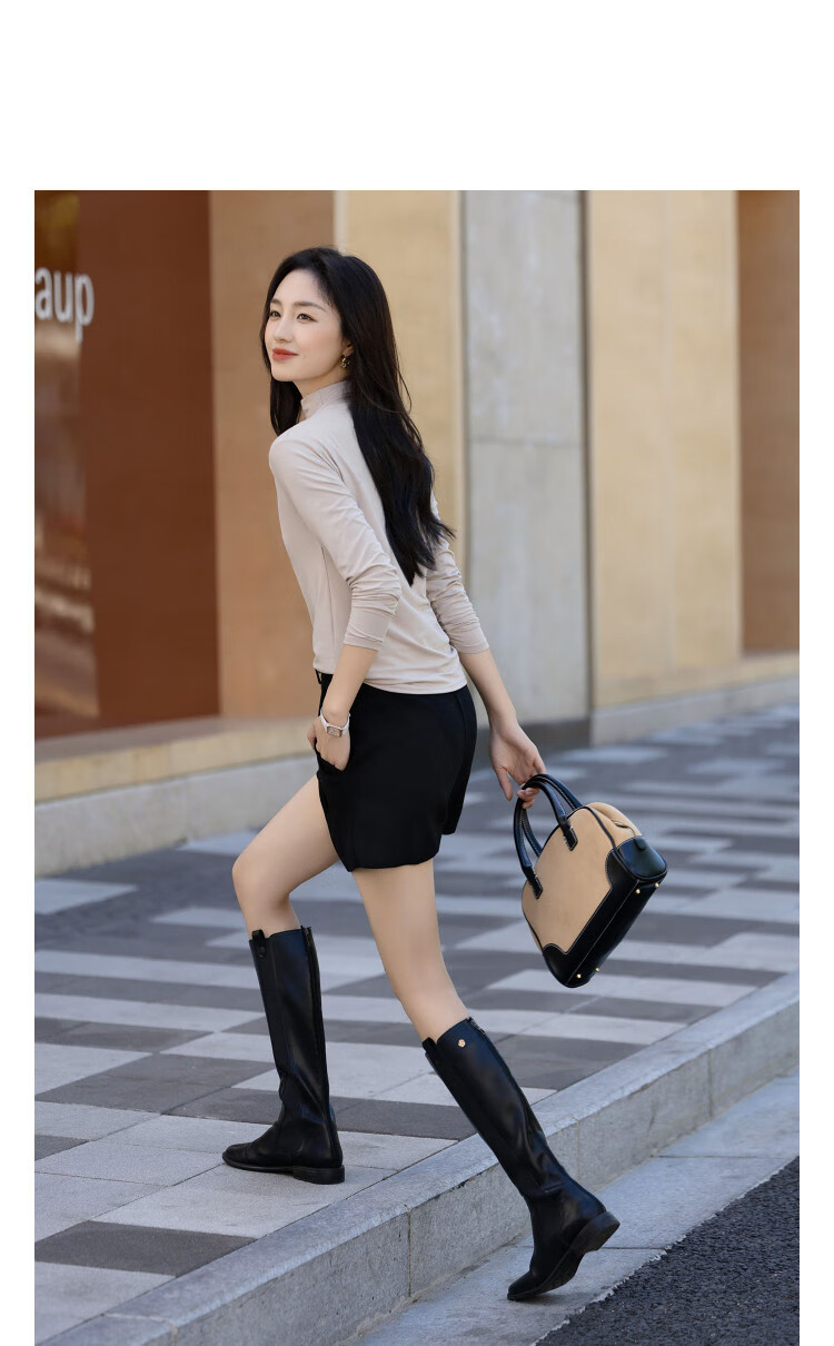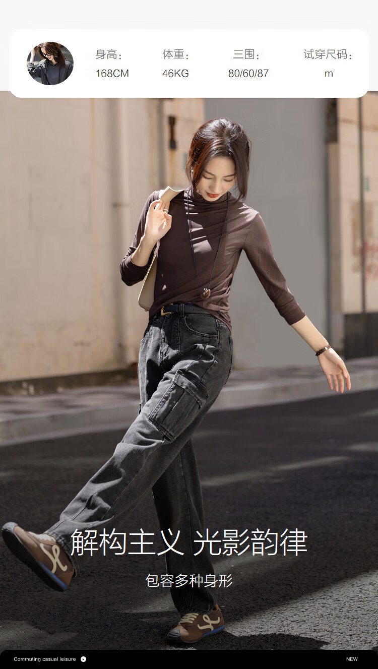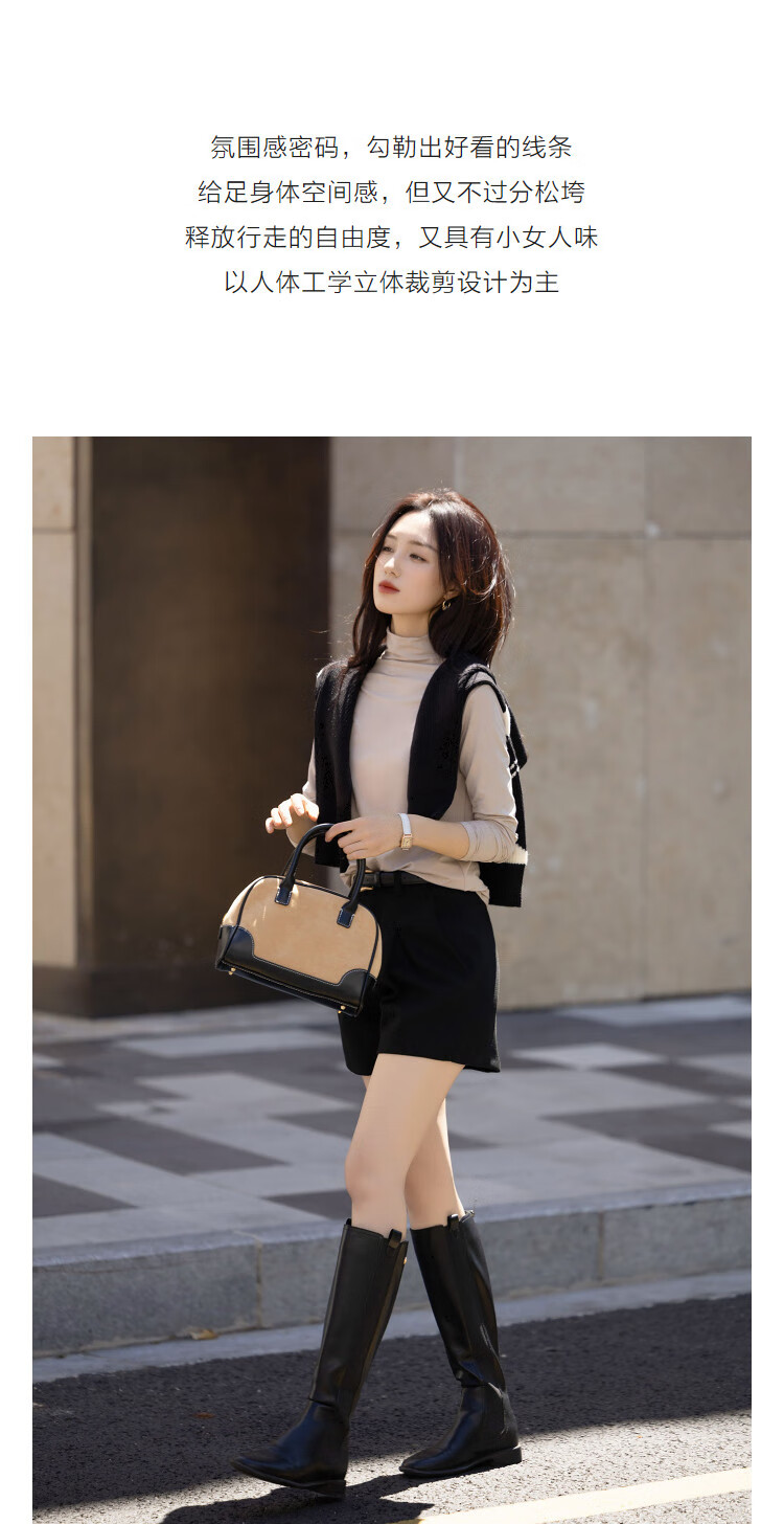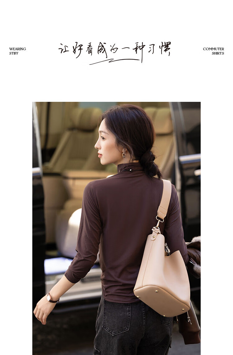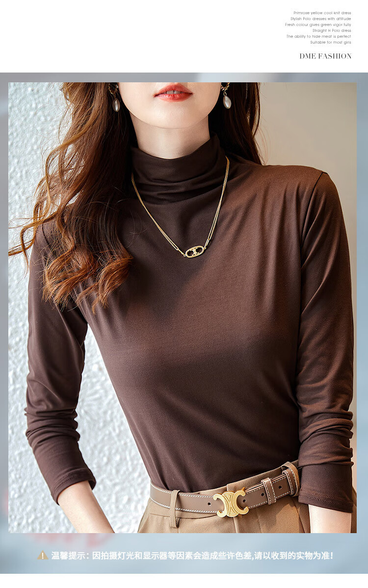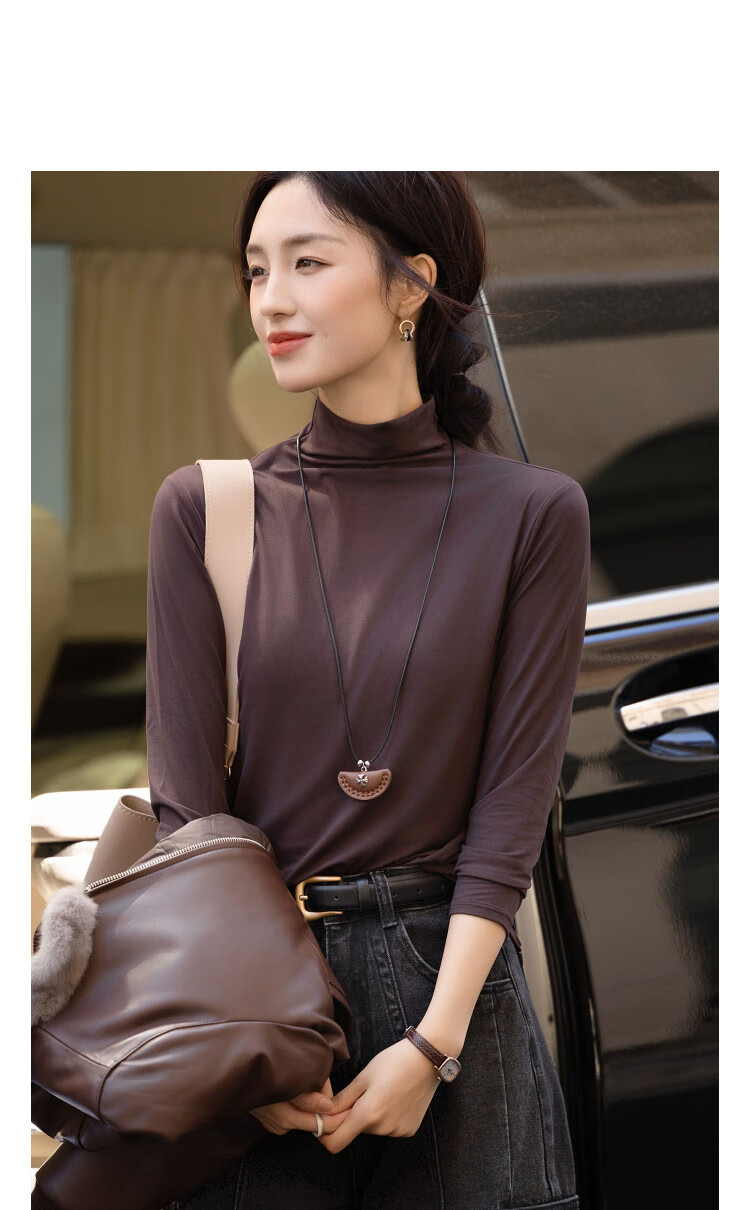 德玛纳【温柔面膜T】冬季通勤半高领正肩打底衫高弹包容赘肉女式t恤