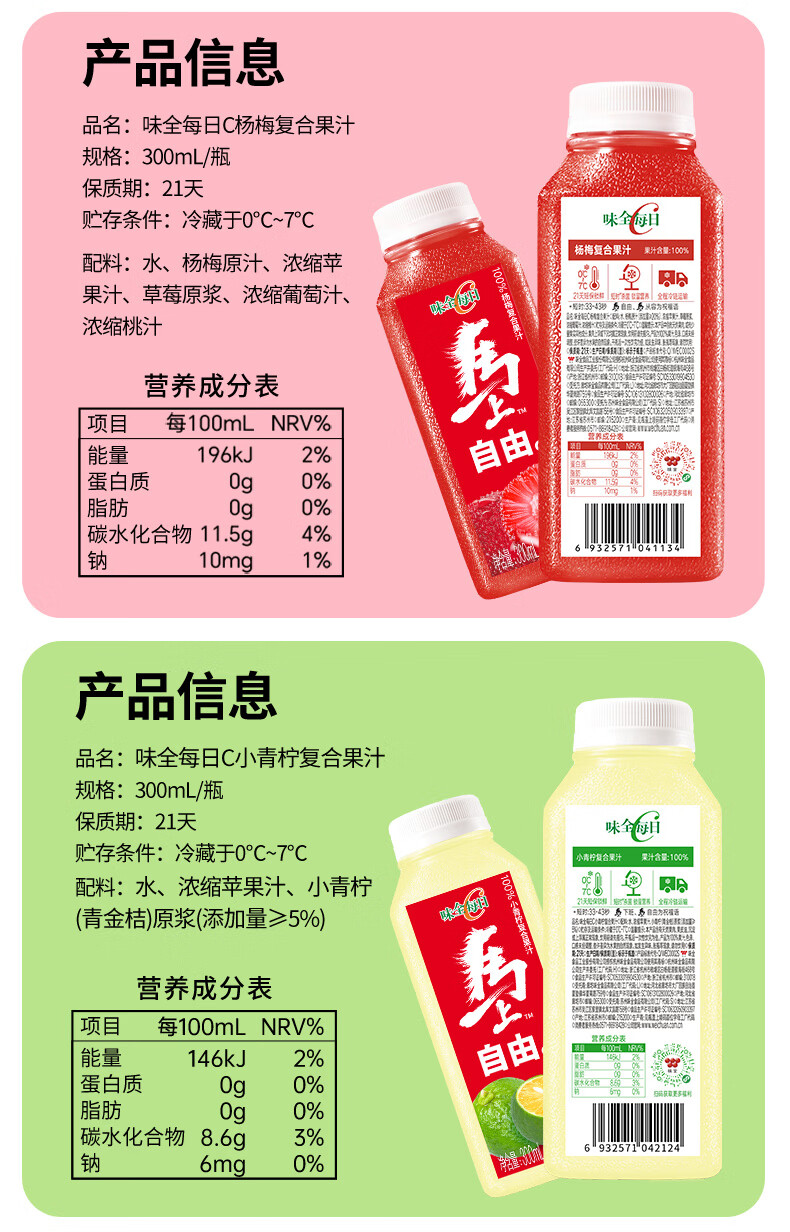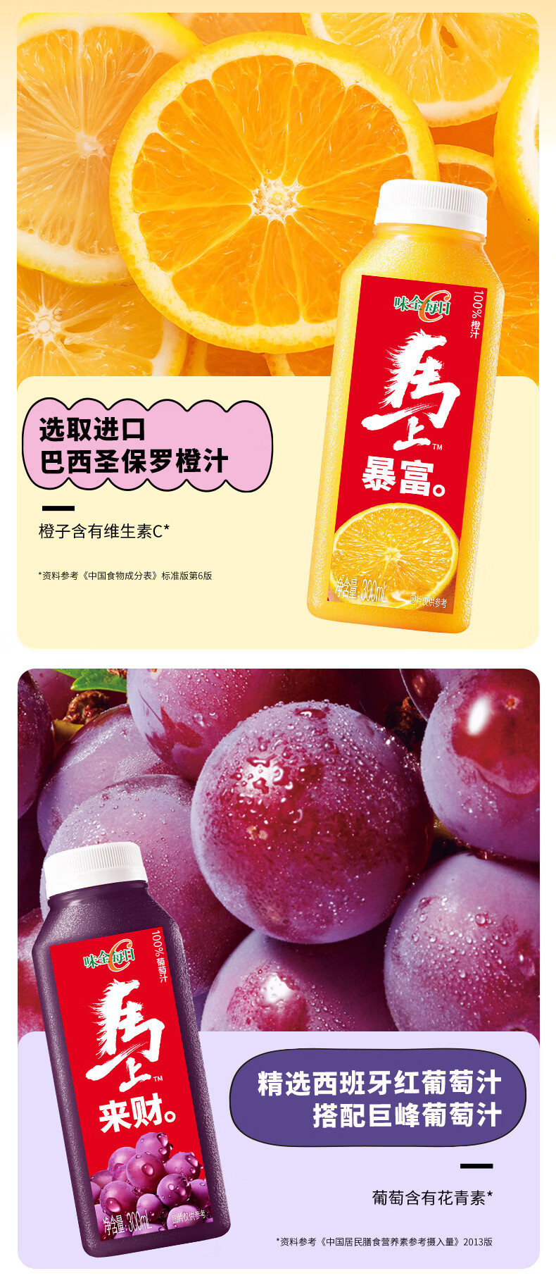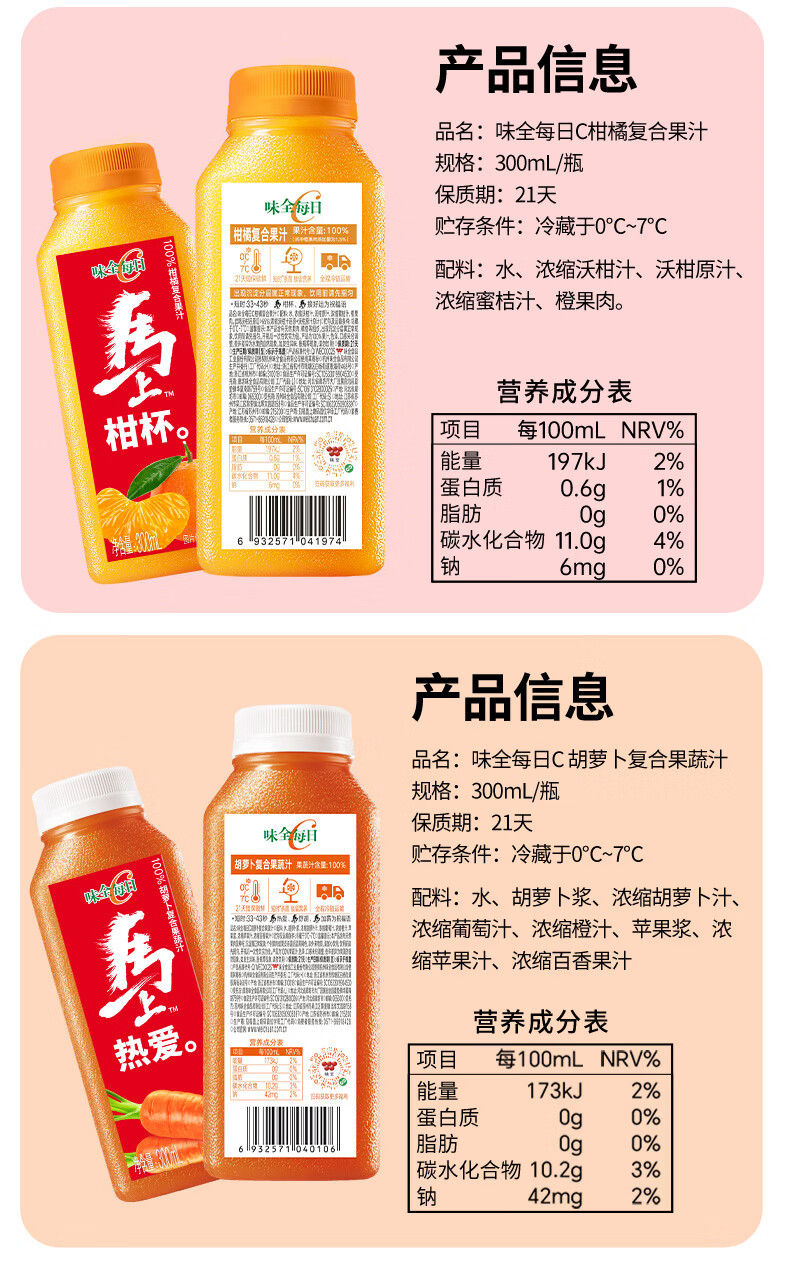 味全每日C果汁 300ml 冷藏饮料混合果蔬汁低温果汁 混合口味10瓶(随机组合)
