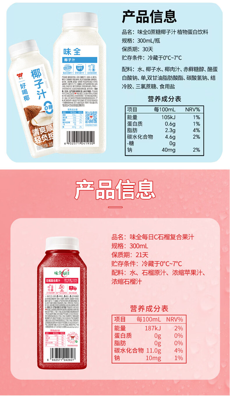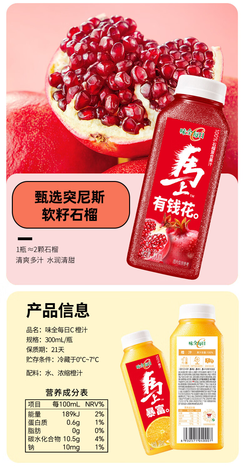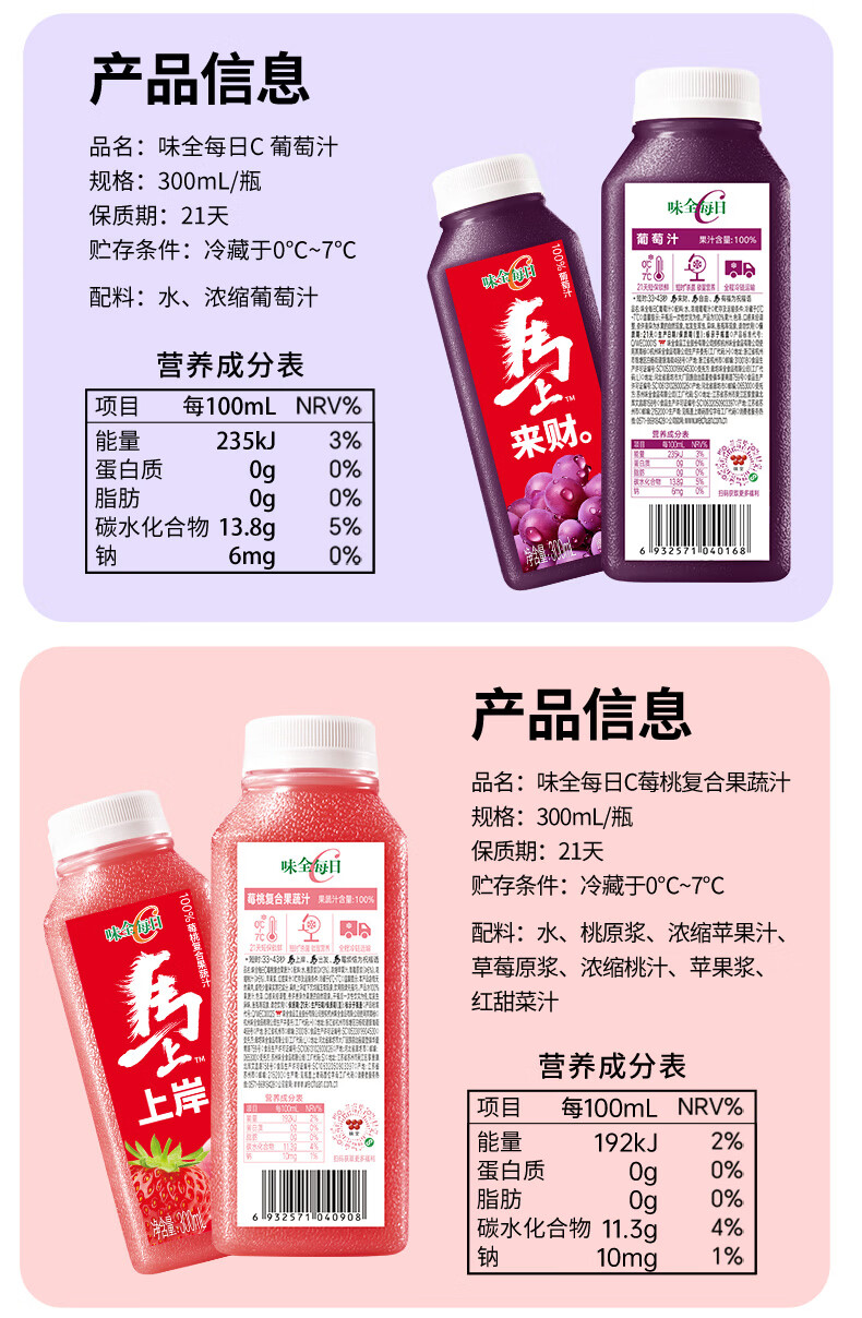 味全每日C果汁 300ml 冷藏饮料混合果蔬汁低温果汁 混合口味10瓶(随机组合)