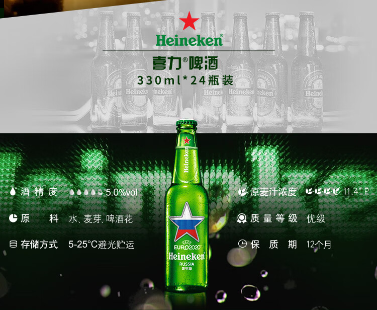 喜力(Heineken)啤酒330ml*24瓶 荷兰原装进口整箱装 年货新年送礼