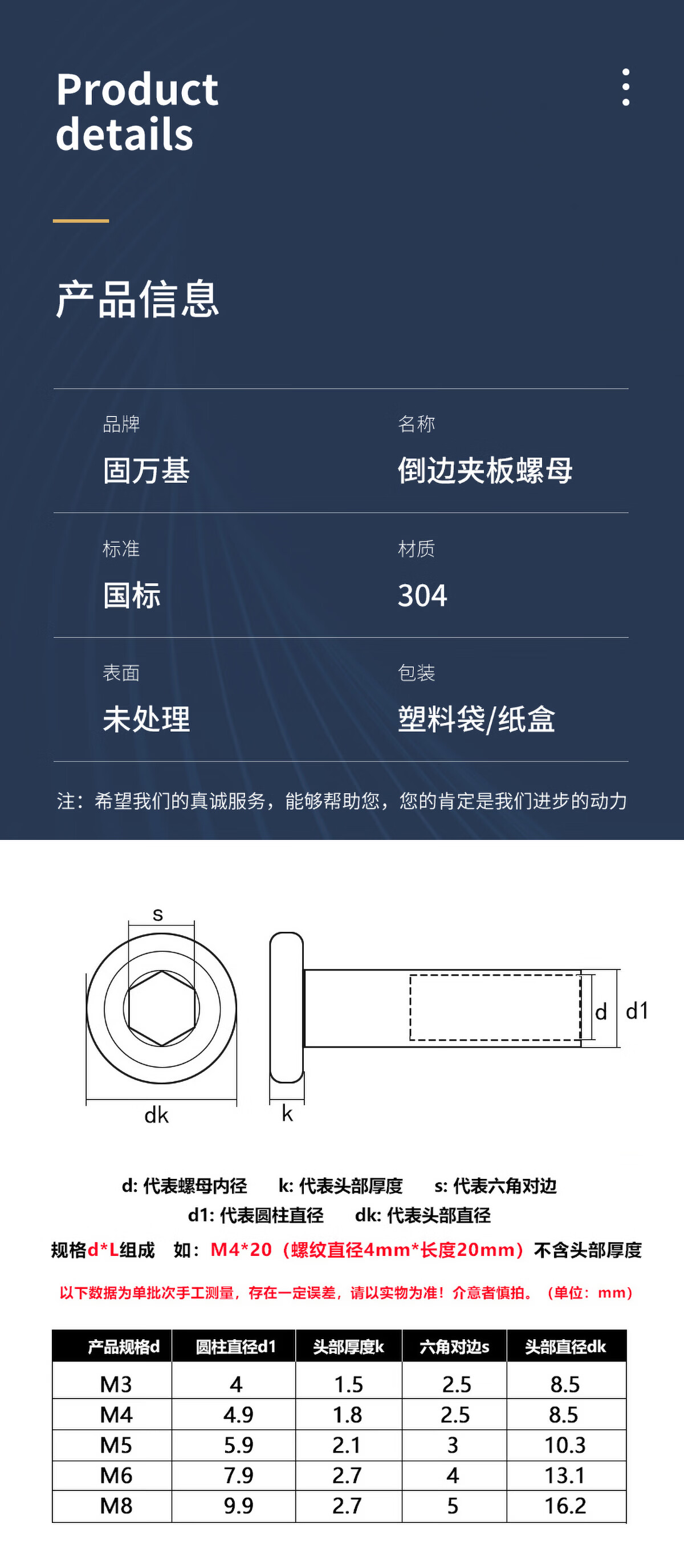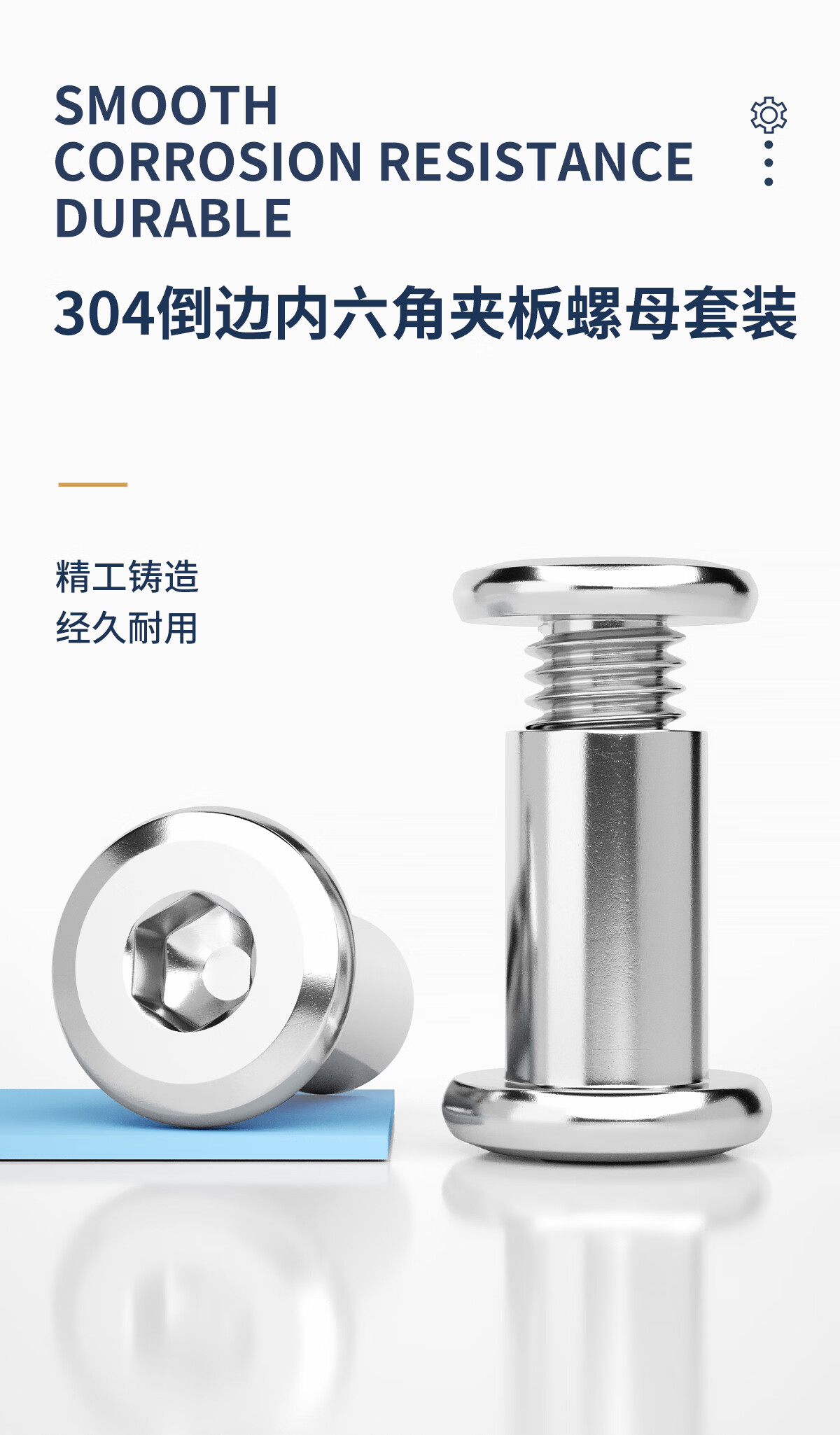固万基(GUWANJI)304不锈钢倒边内六角对锁螺栓螺母家具连接夹板螺丝M2-M10 M2x4杆径3[40套]