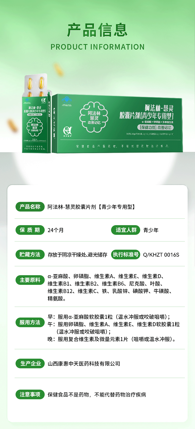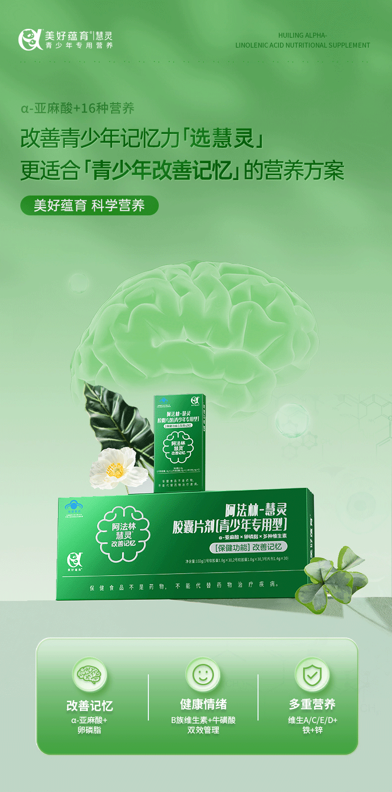 美好蕴育慧灵胶囊dha学生补脑青少年6-18岁增强记忆力学习备考营养补充品 1盒