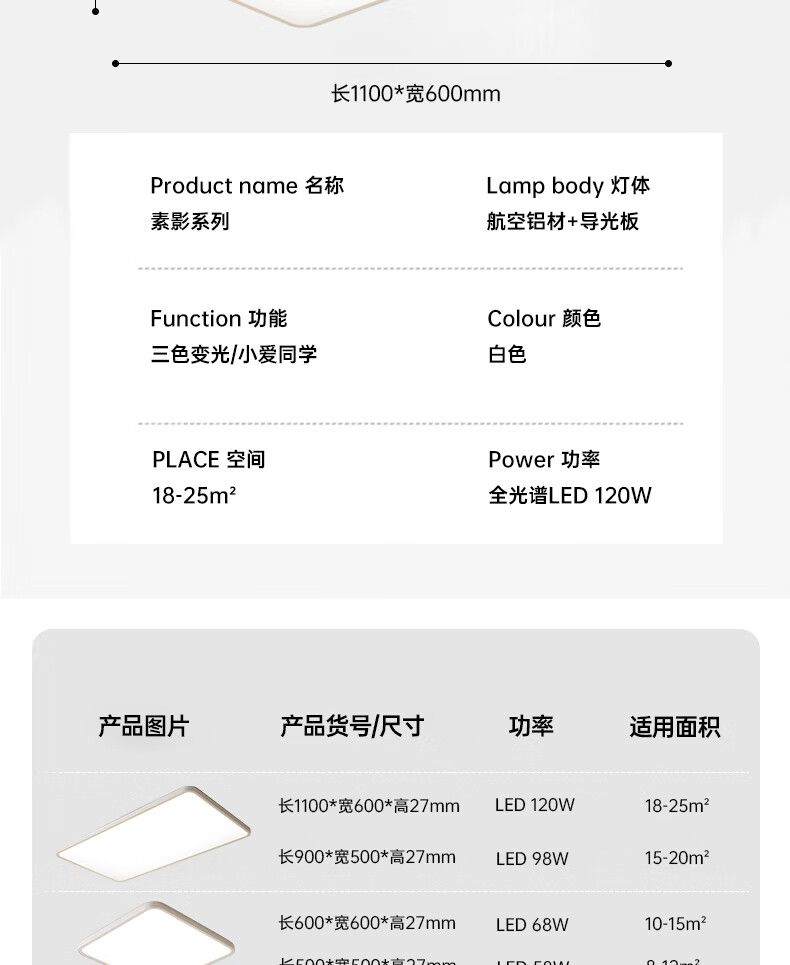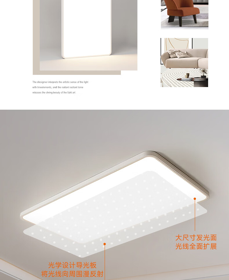 宏光照明2025年新款灯具超薄极简吸顶灯客厅LED全光谱护眼卧室房间灯 支持小爱同学款 110长方 RA97 120W 18-25㎡