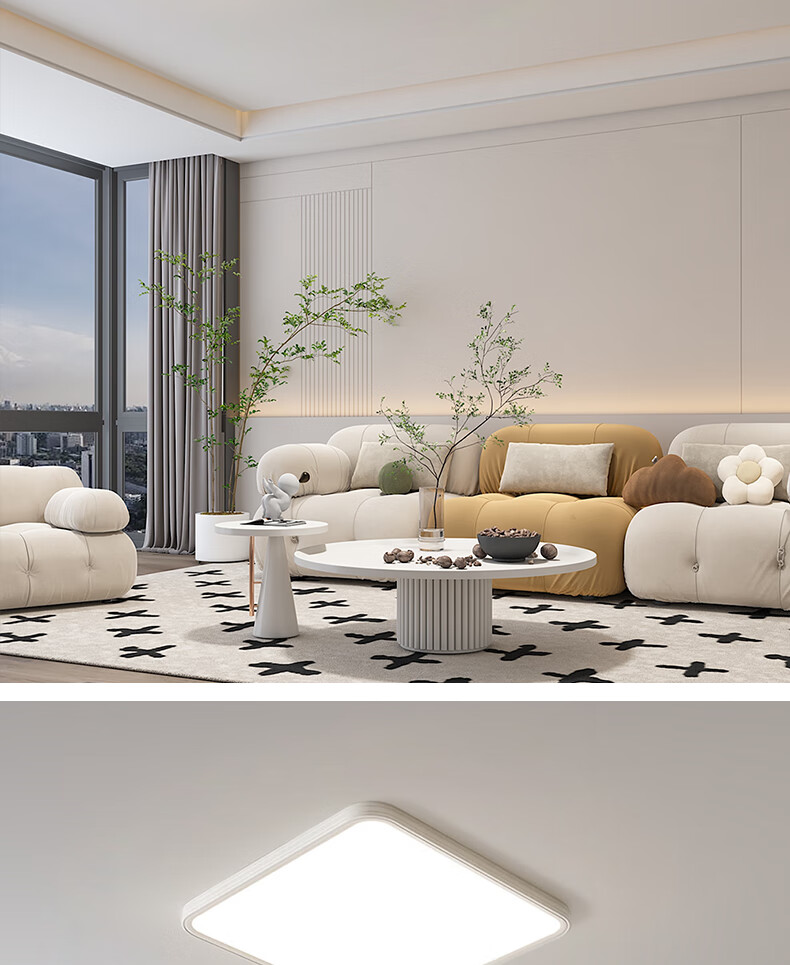 昆迪卡新款led吸顶灯简约现代大气高亮长方形客厅灯餐厅卧室书房节能灯 白圆40cm三色变光2*36w