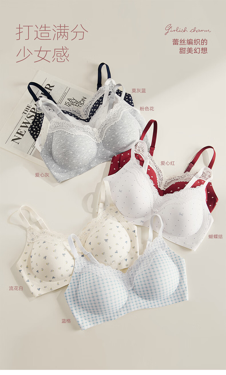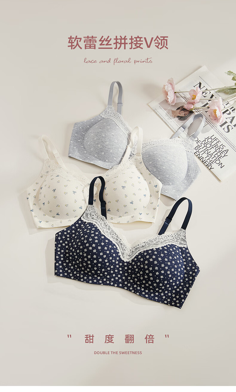 猫人(MiiOW)内衣女士舒适透气无钢圈文胸轻薄聚拢女士胸罩 随机款式 XL