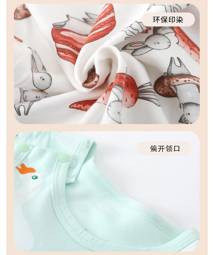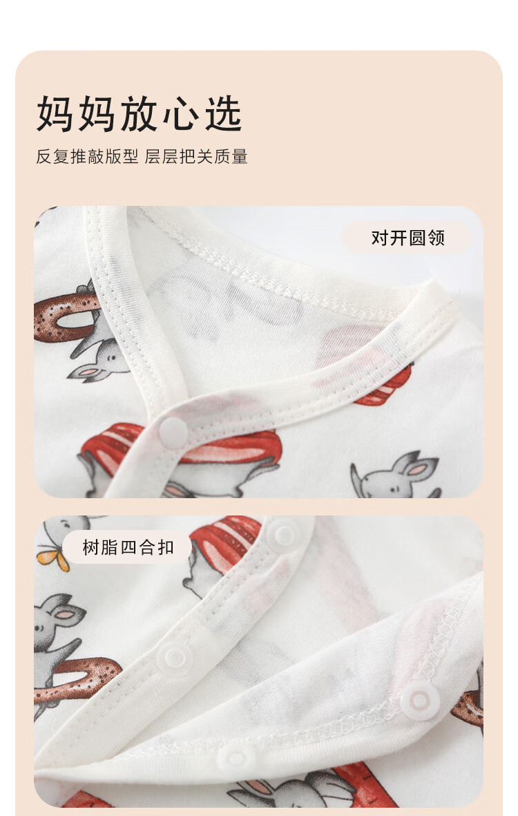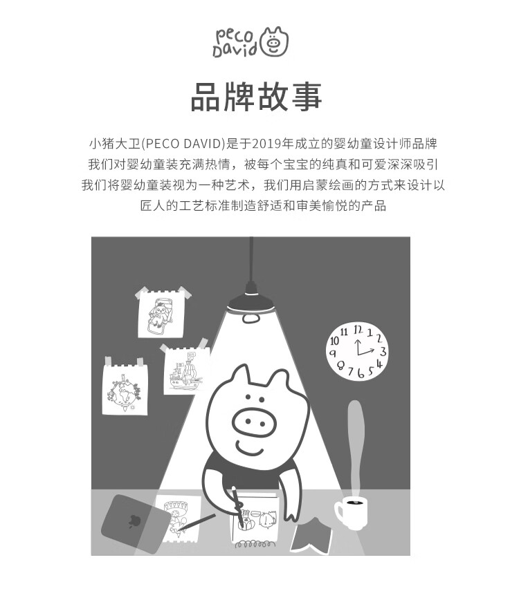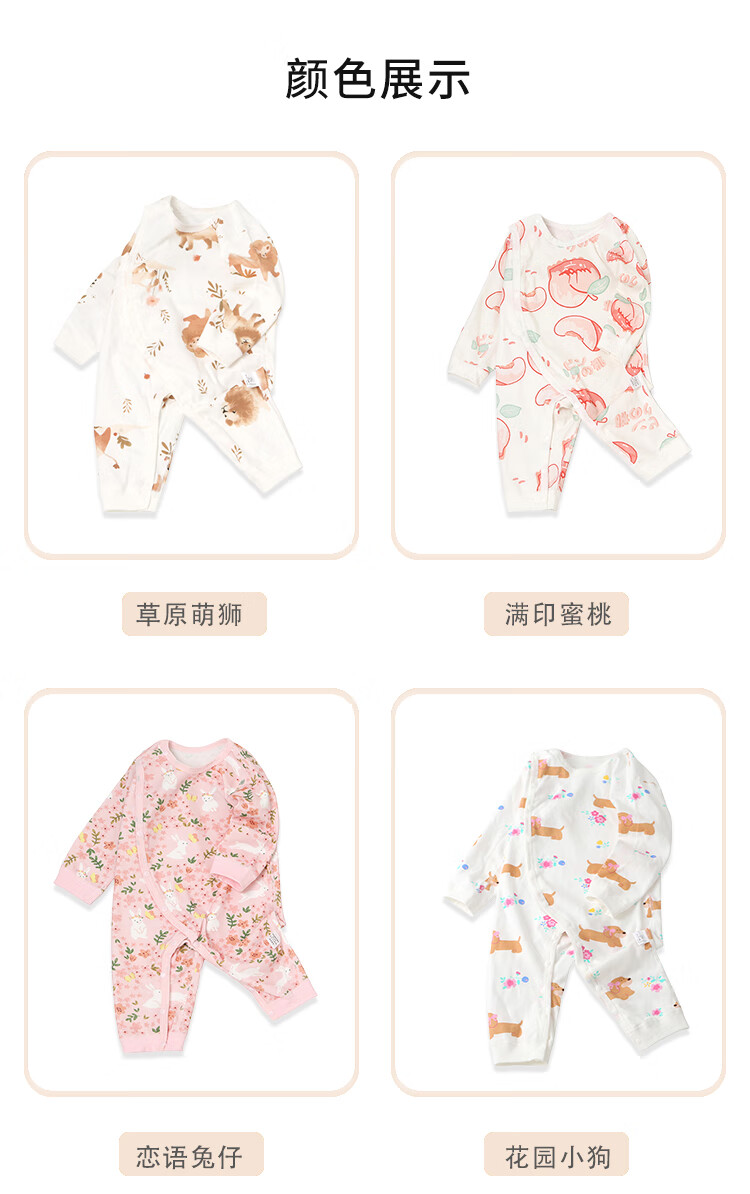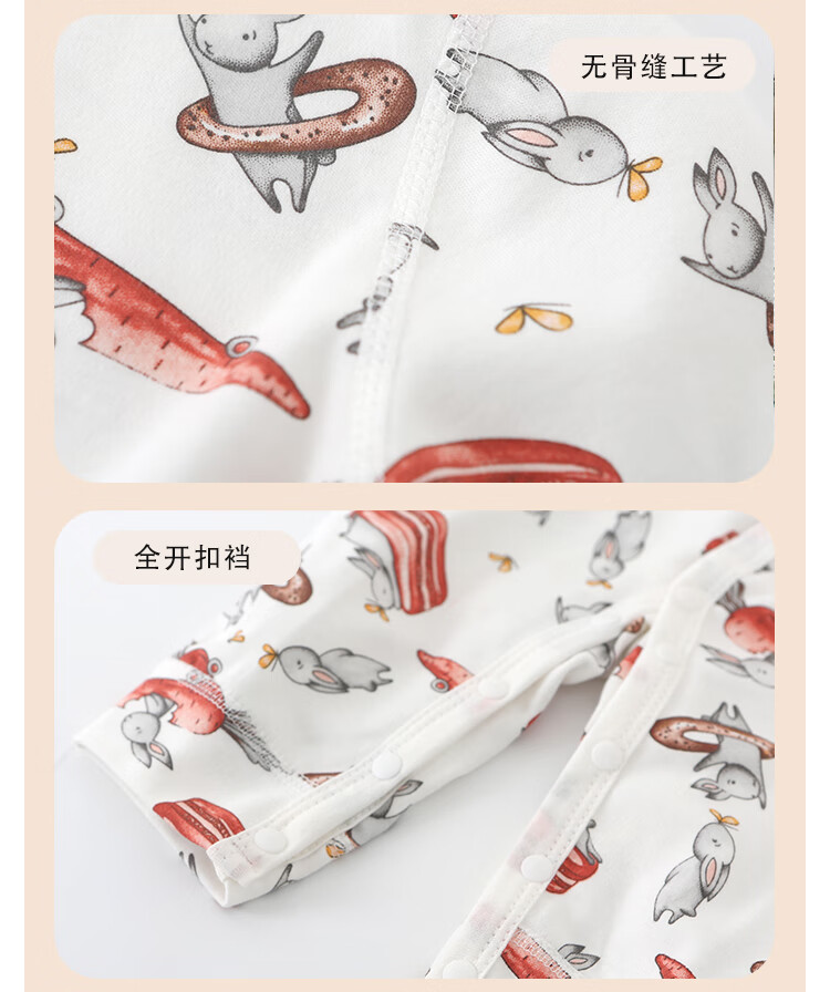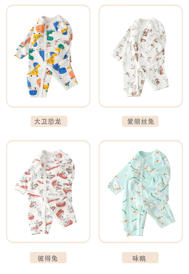 小猪大卫 PECODAVID新生婴儿纯棉连体衣男女宝可爱哈衣长袖春秋印花爬服 浅粉小猪标【对开】 90cm