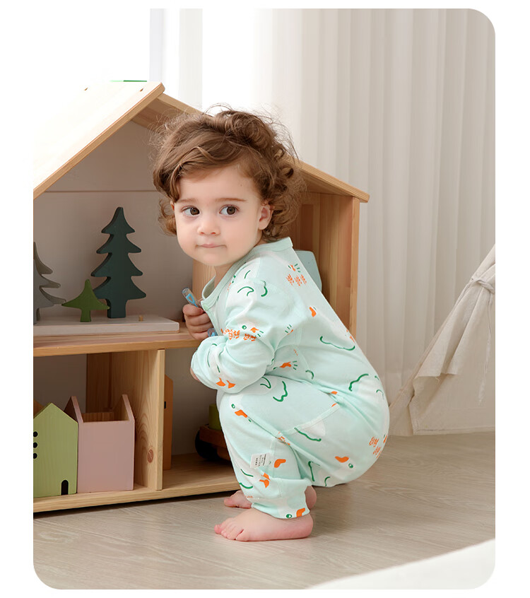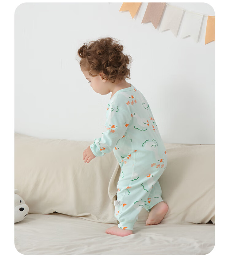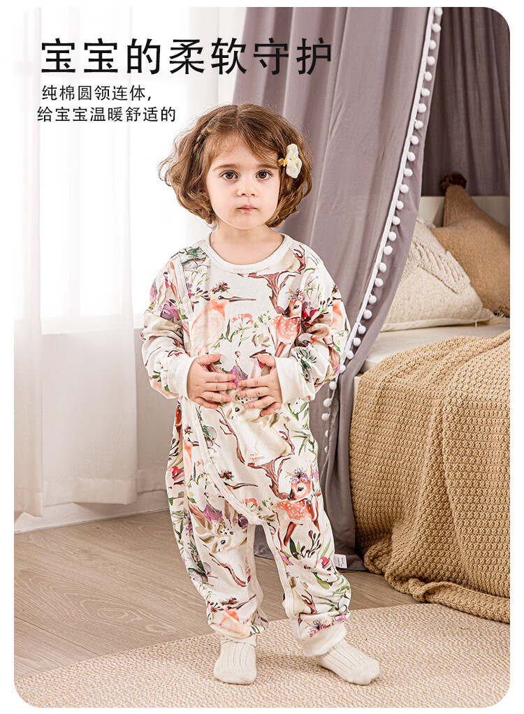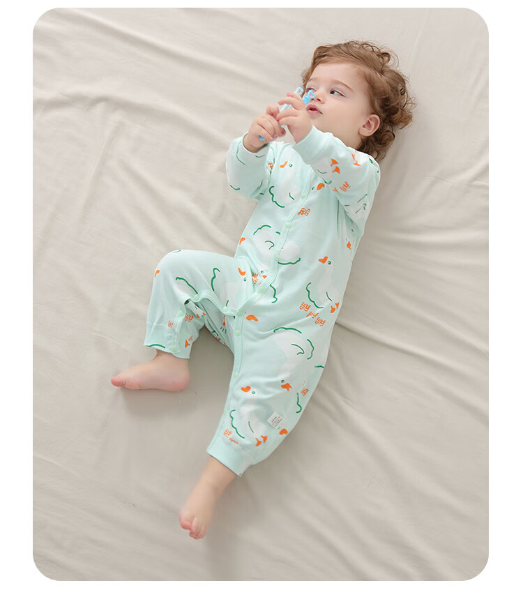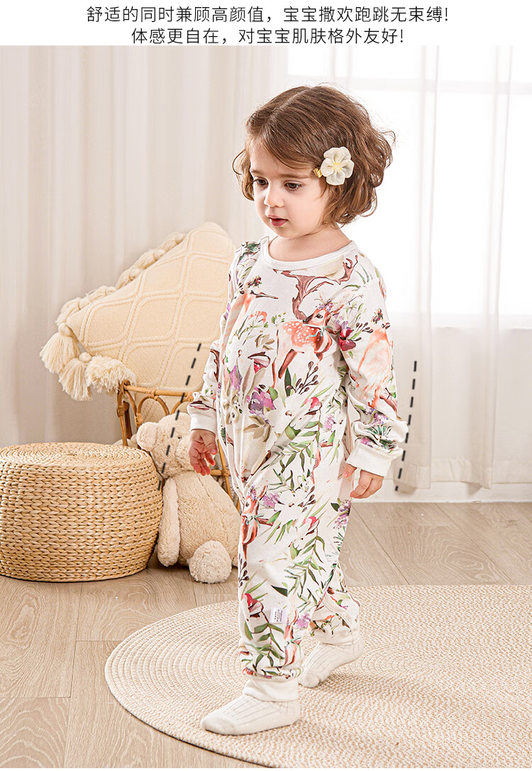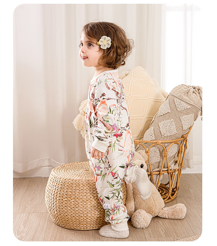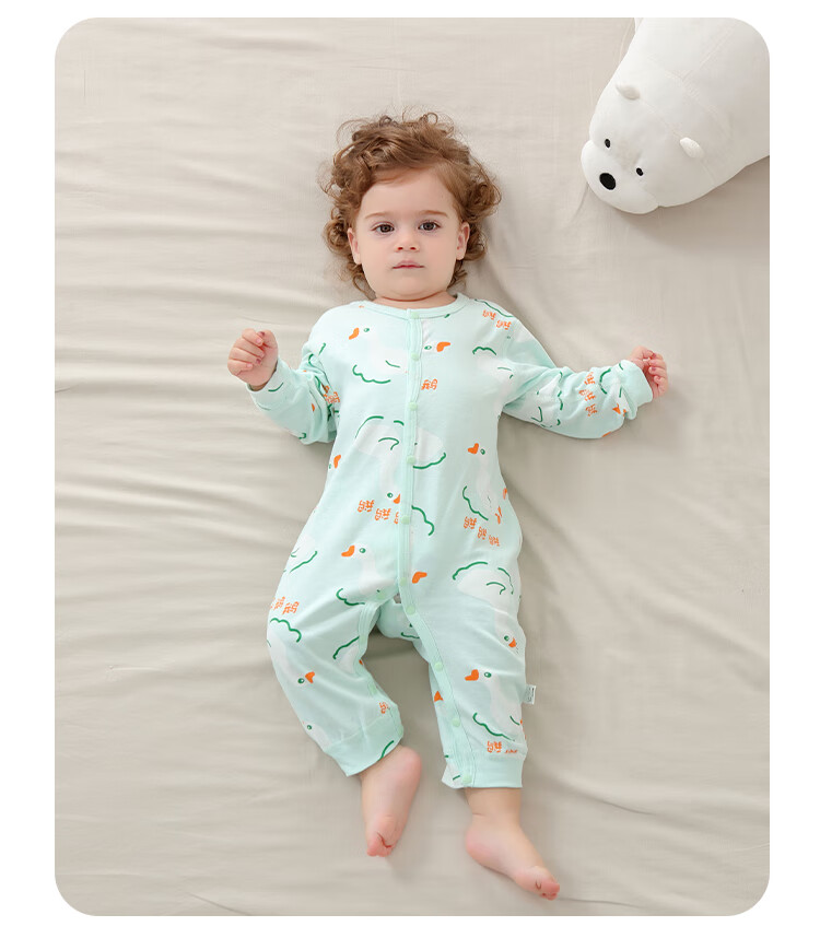 小猪大卫 PECODAVID新生婴儿纯棉连体衣男女宝可爱哈衣长袖春秋印花爬服 浅粉小猪标【对开】 90cm