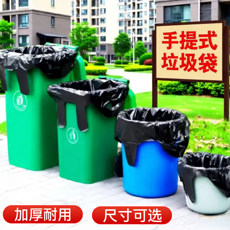 鹰大背心式垃圾袋加大加厚黑色商用物业厨房环卫家用手提式保洁塑料袋 100只 手提式(32*52cm)加厚型