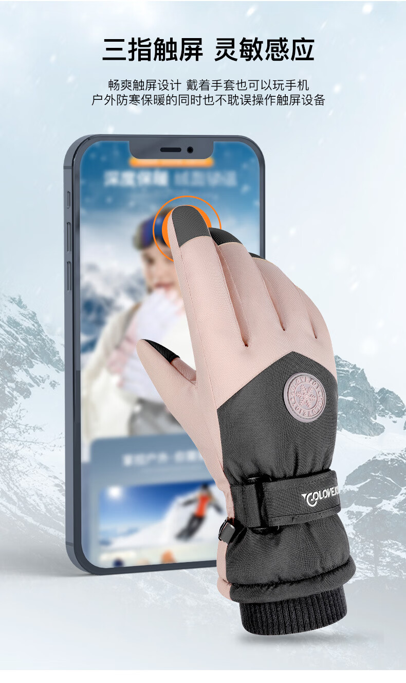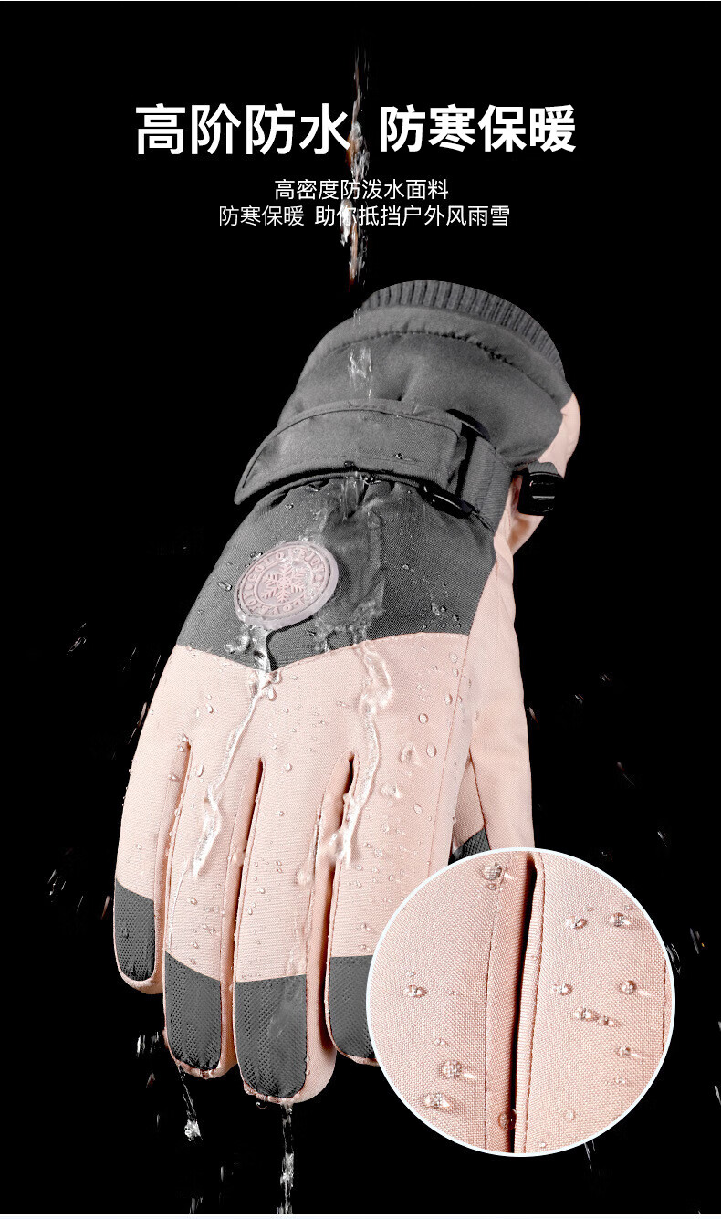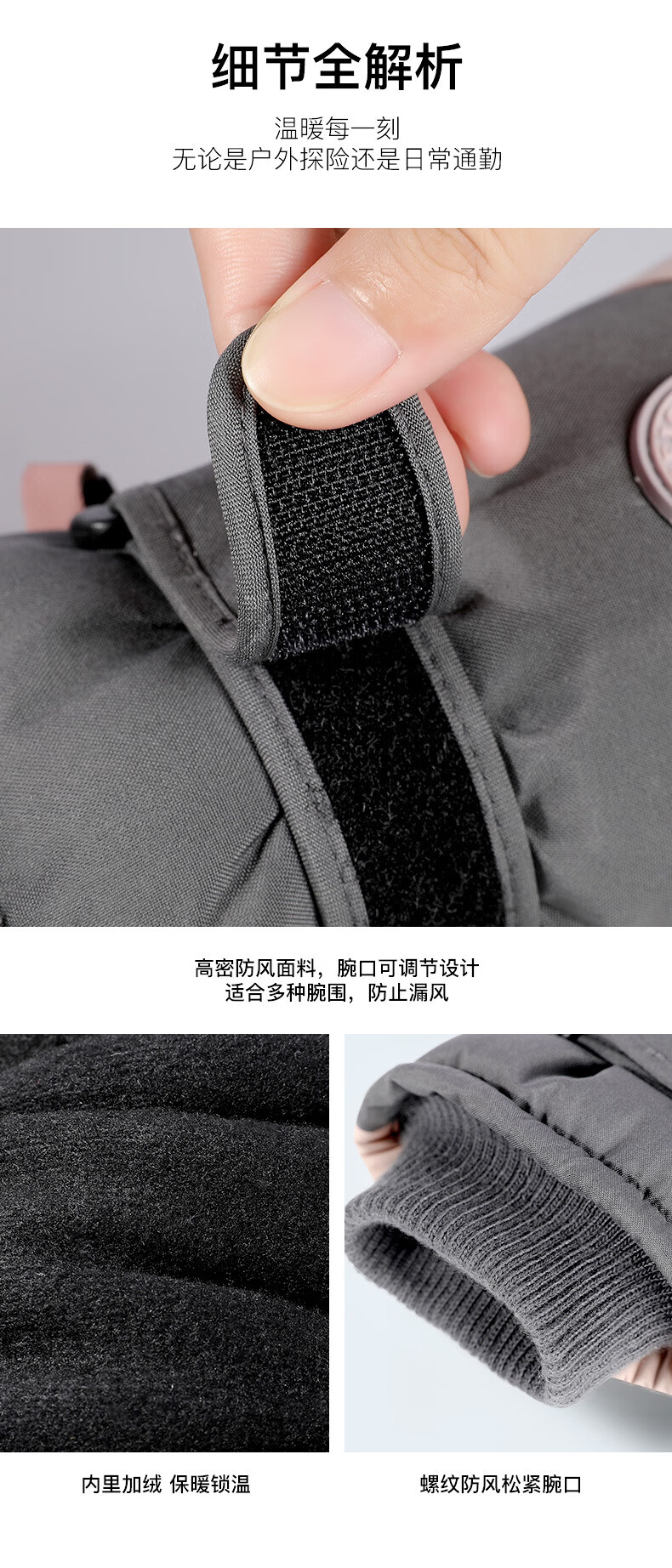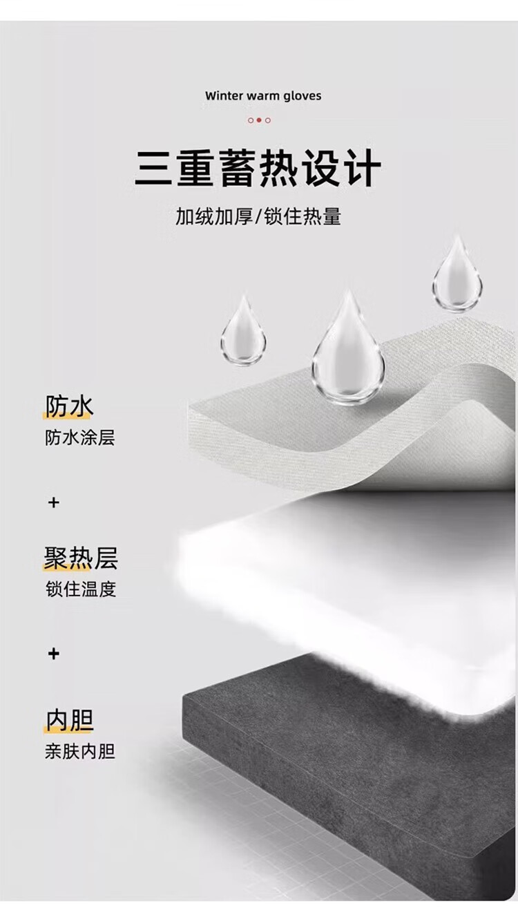 TEEIS德国骑行手套保暖冬季女男士电动车防冻防风防水滑雪防寒触屏防冻 暗夜黑丨均码 两只装丨防水款