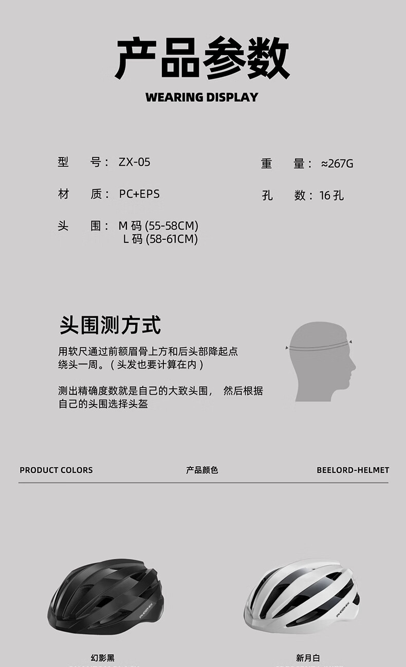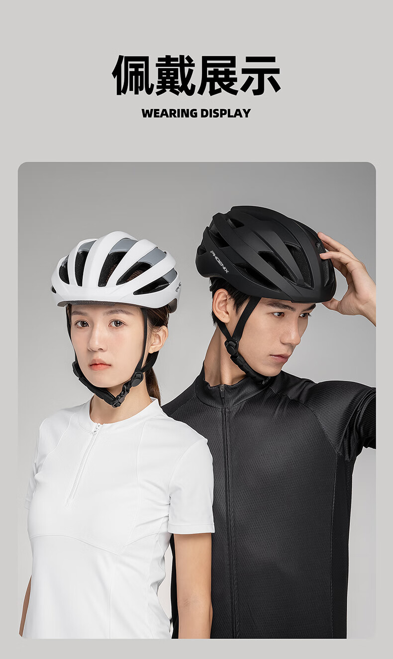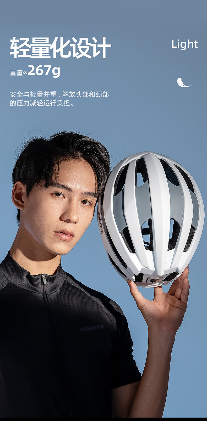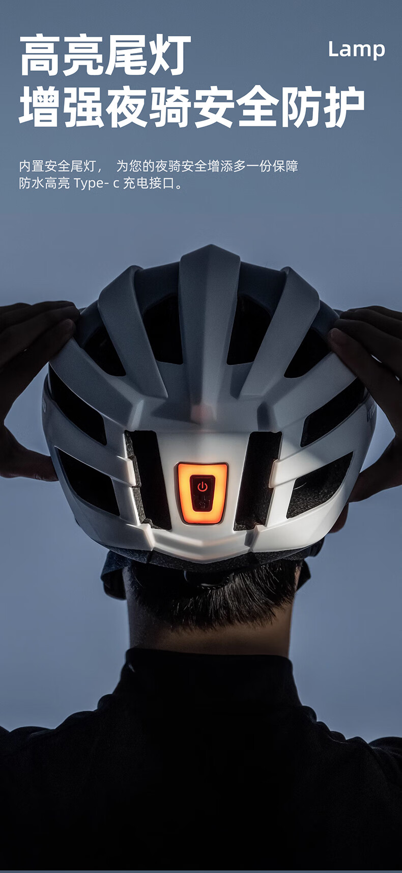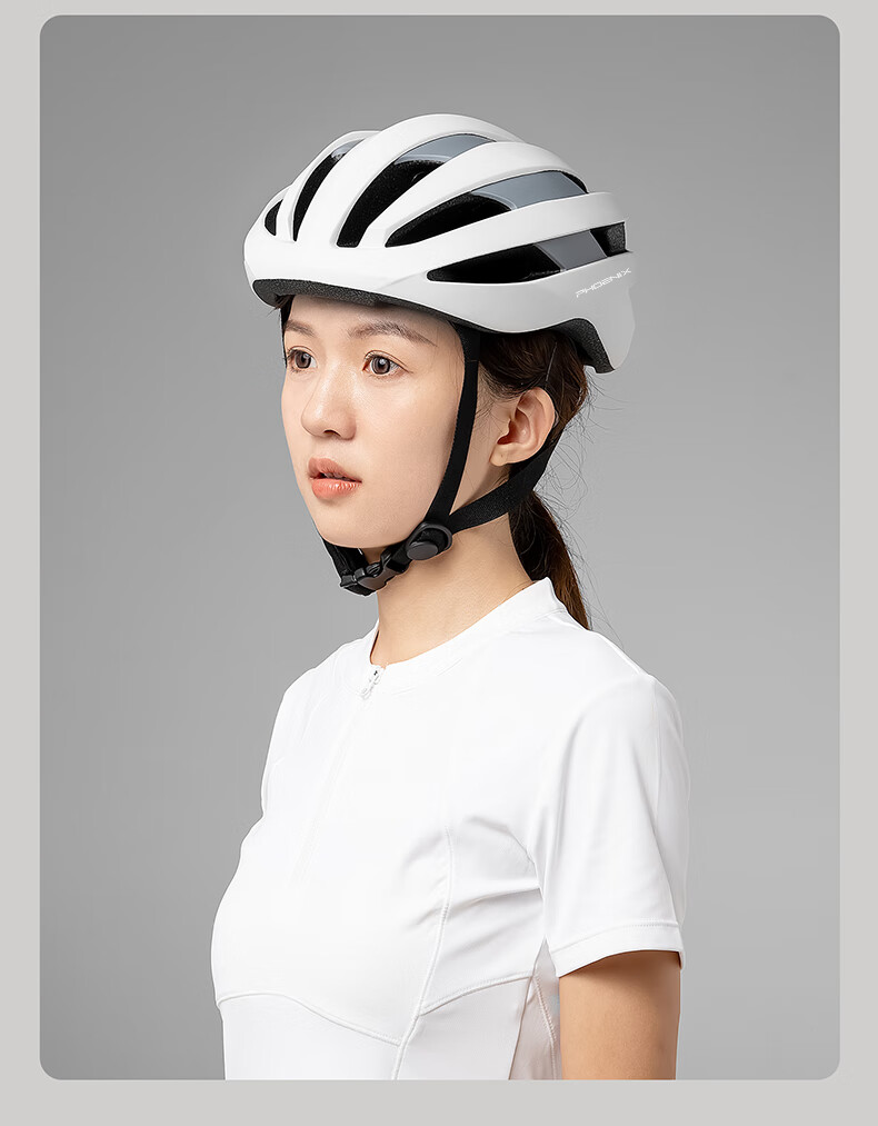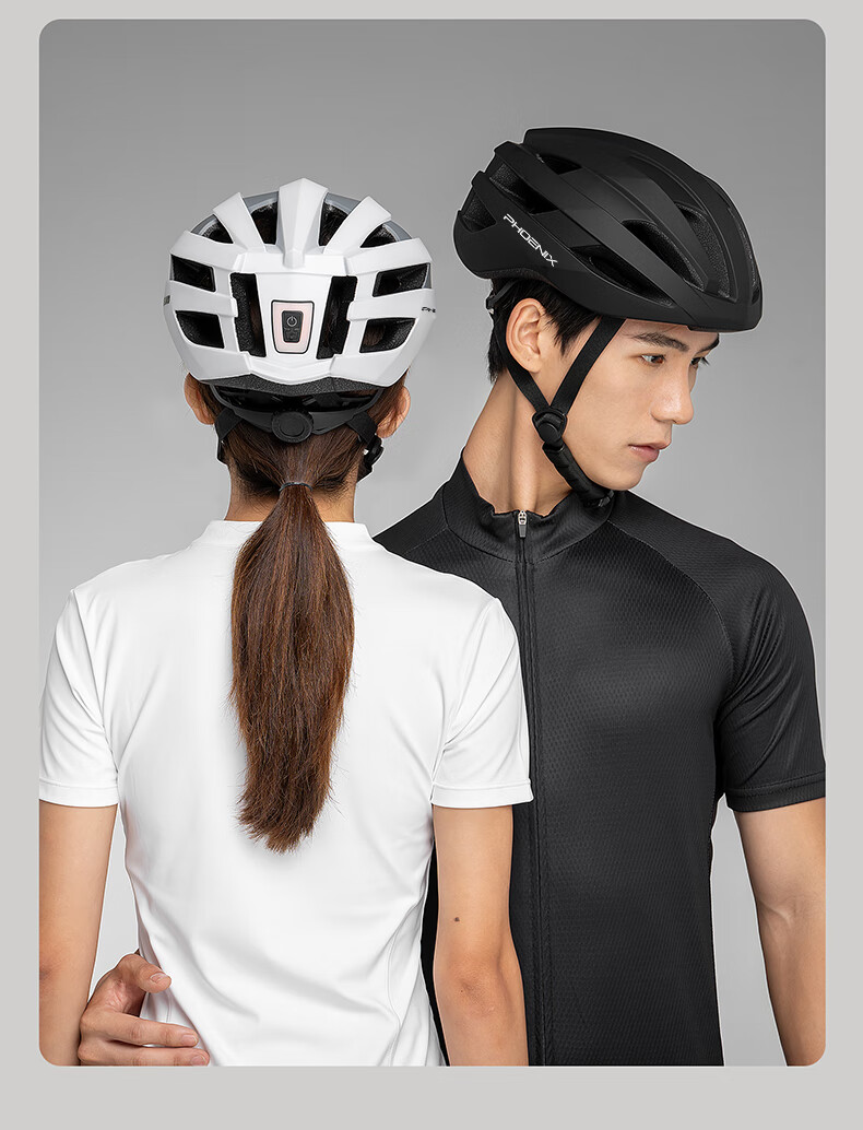 凤凰(Phoenix)自行车头盔山地公路车男女通用青少年一体成型安全帽单车骑行头盔 新月白【一体成型】带尾灯 L【头围58-62cm】