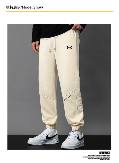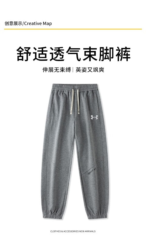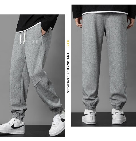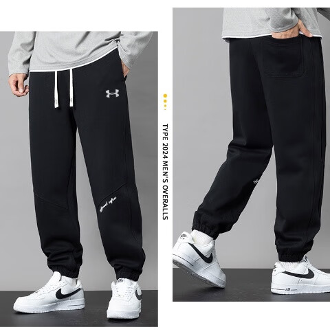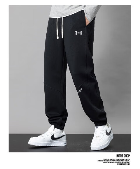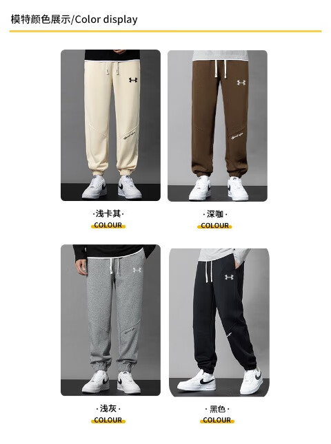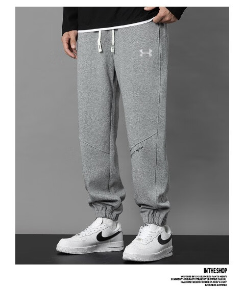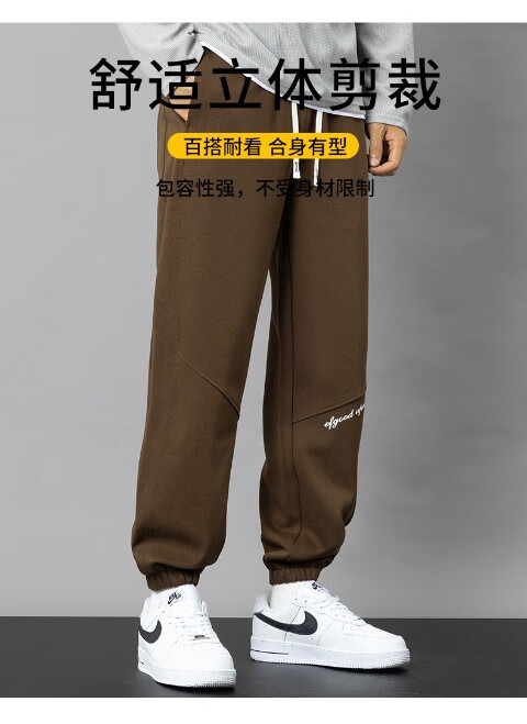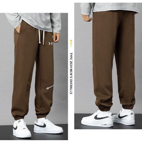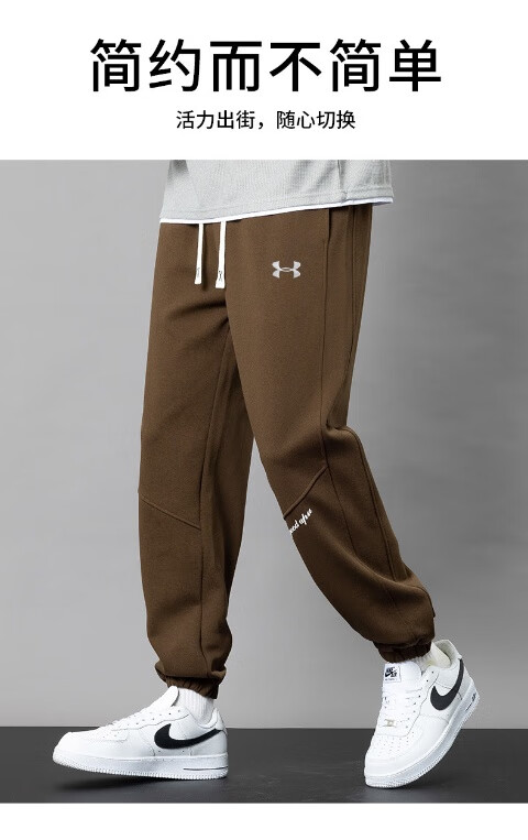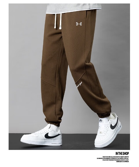 安德玛刺绣logo秋季新品运动裤男针织宽松大码青少年卫裤纯棉休闲长裤子 咖啡色秋冬加绒款 XL 建议体重120-140斤