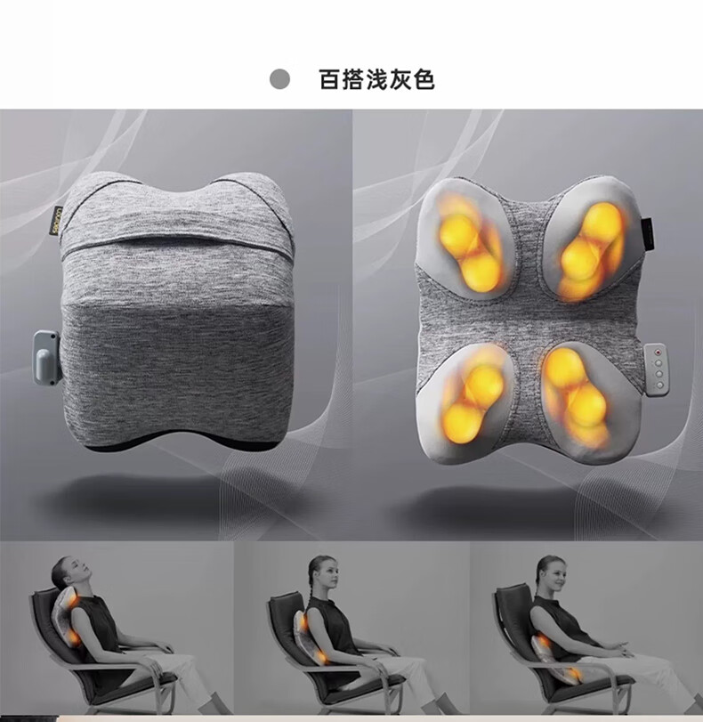 ATEX腰背按摩器送爸爸生日新年礼物 全身按摩加热冬季热敷强劲动力升级无线深层按摩 放松加高按摩垫 灰色【9种模式+深度V型按摩+升级8颗按摩球】