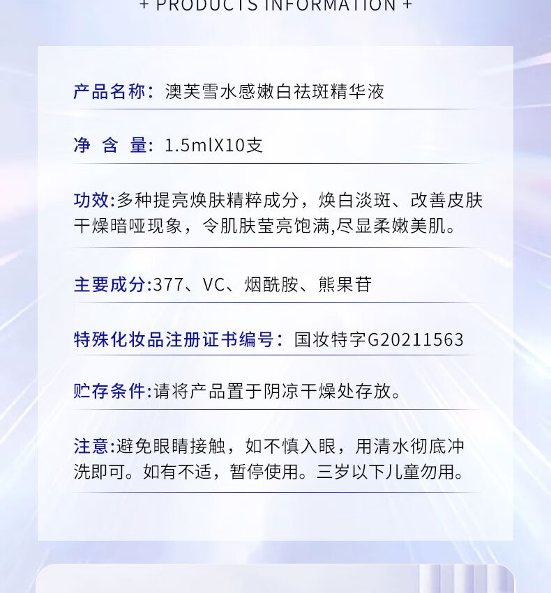 澳芙雪377水感嫩白祛斑次抛烟酰胺精华液祛斑美白保湿面部 1盒装