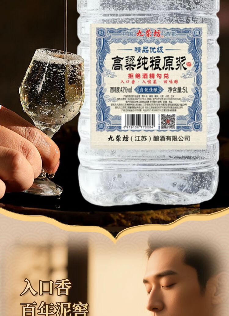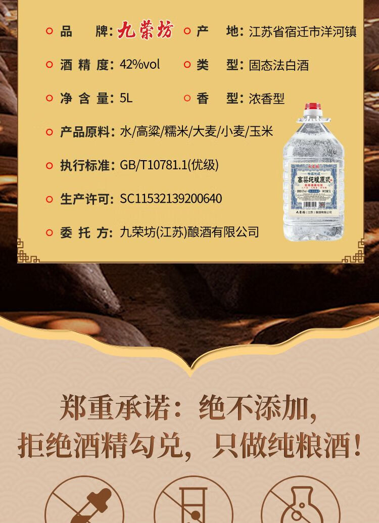 九荣坊纯粮桶装白酒固态法高粱酒纯粮酿造桶装白酒泡酒专用白酒口粮酒 42%vol 5L 1桶 【8年窖】精品浓香 同级别无对手