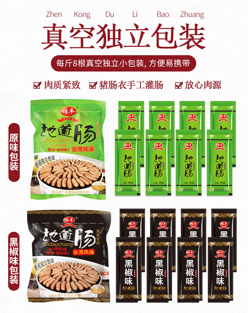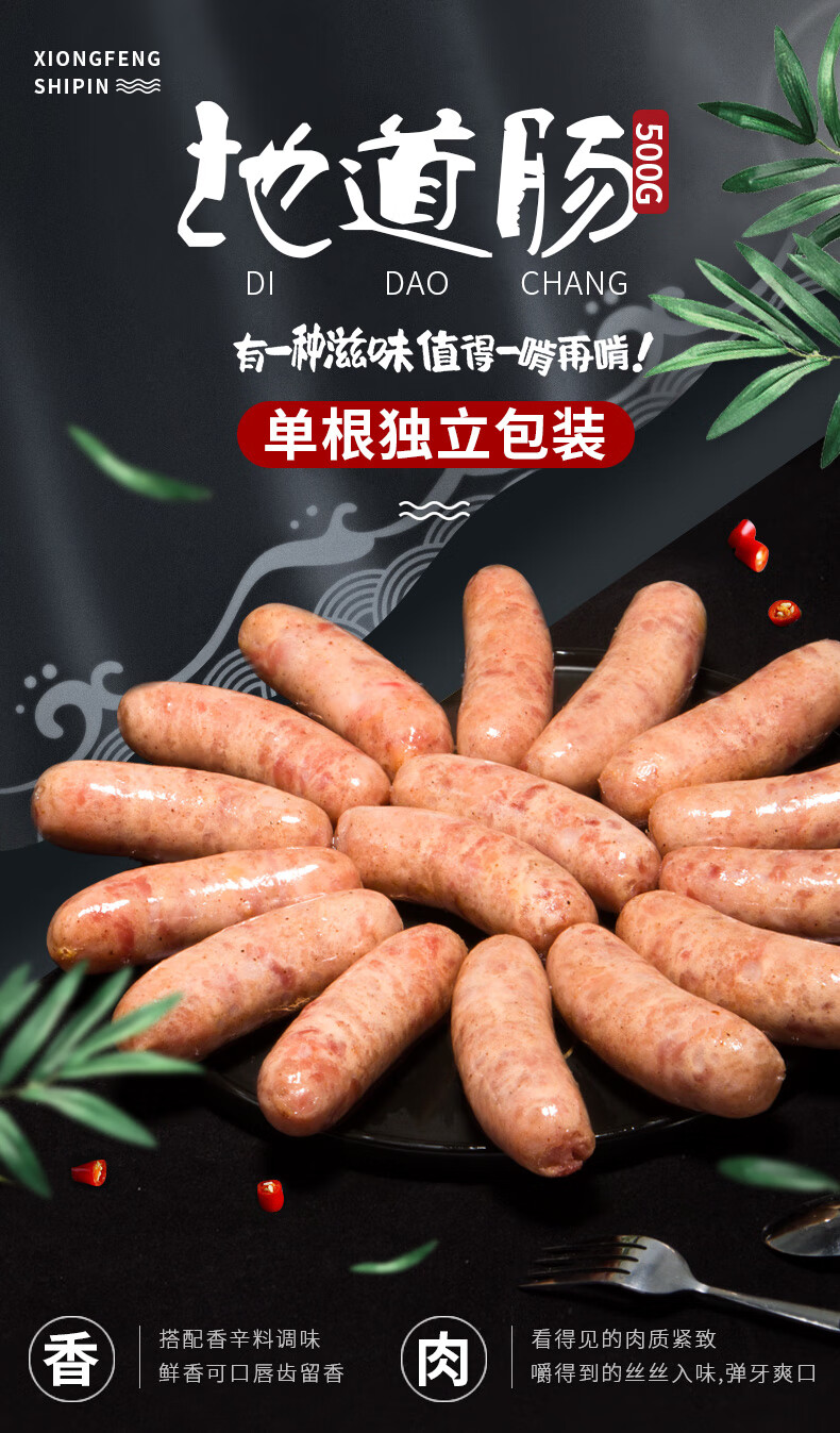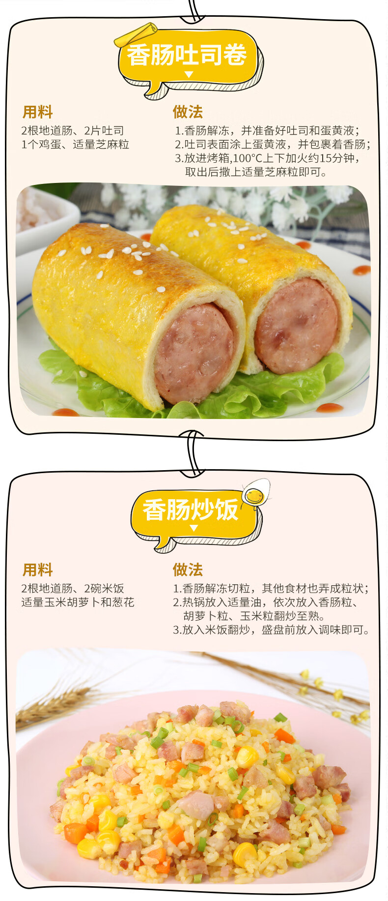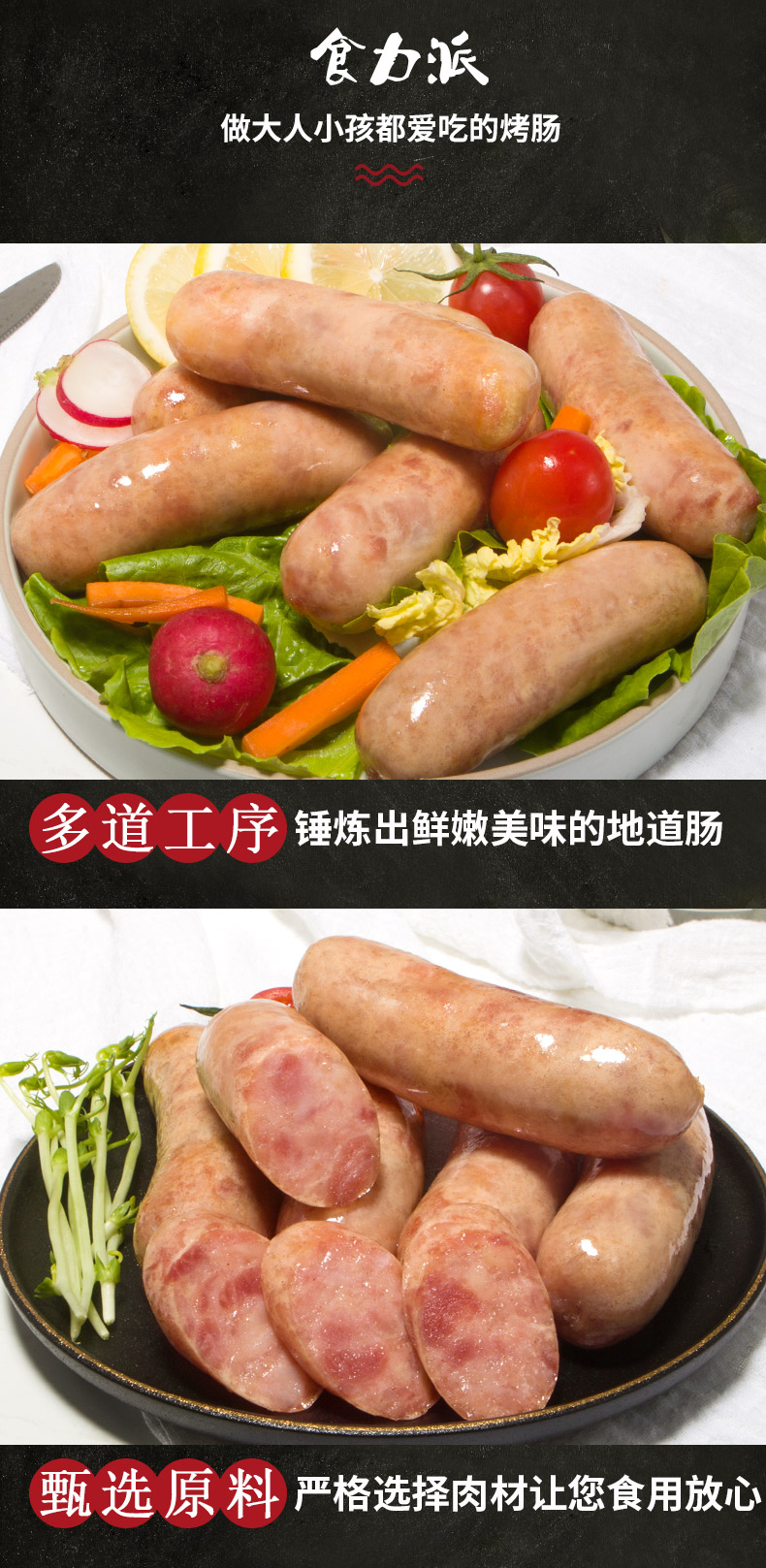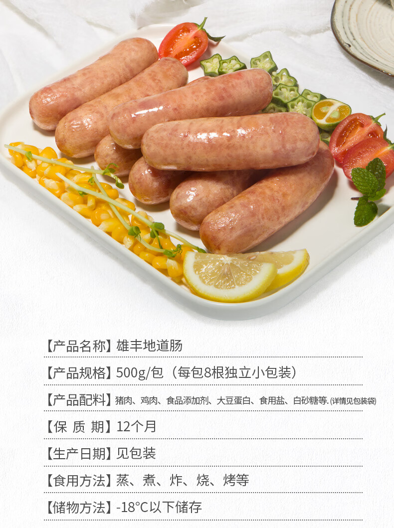 雄丰烤肠台式香肠热狗脆皮儿童早餐食品猪肉肠肠空气炸锅爆汁锁鲜 【 混合味】原味16根+黑椒16根